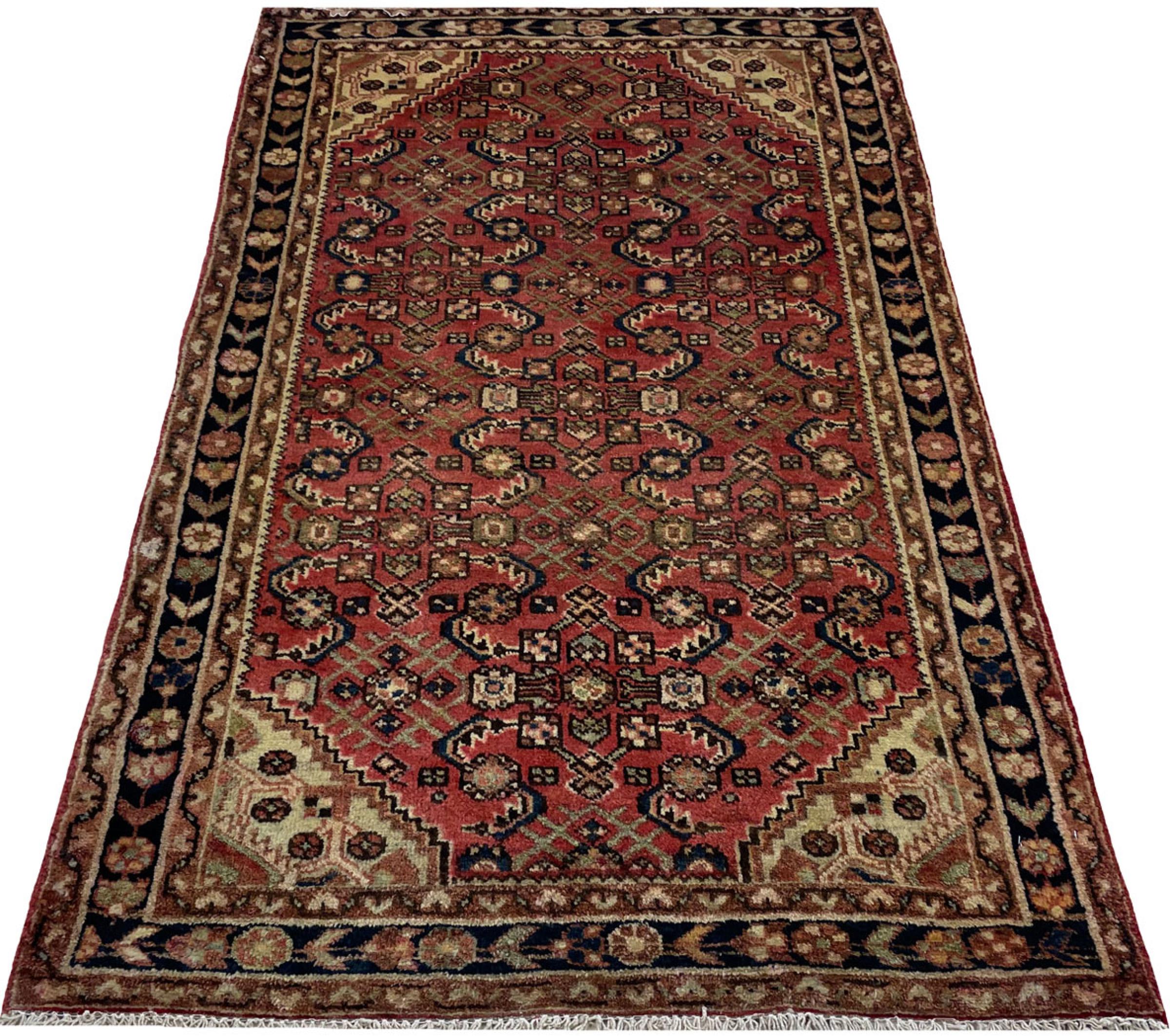 Dette tæppe hører til landsby- og nomadetæpper fra Iran, tidligere Persien. Denne type tæppe er håndknyttet i små byer og landsbyer i den gamle tradition. Nomader fremstiller også persiske tæpper under den åbne himmel. Tæpperne er knudt helt fra hovedet uden en skabelon. De er kendetegnet ved klassiske ornamenter, der er opstillet i lineære og geometriske mønstre. Takket være deres kulturelle og traditionelle oprindelse har disse tæpper en unik karakter, der udgør det gamle Persien.