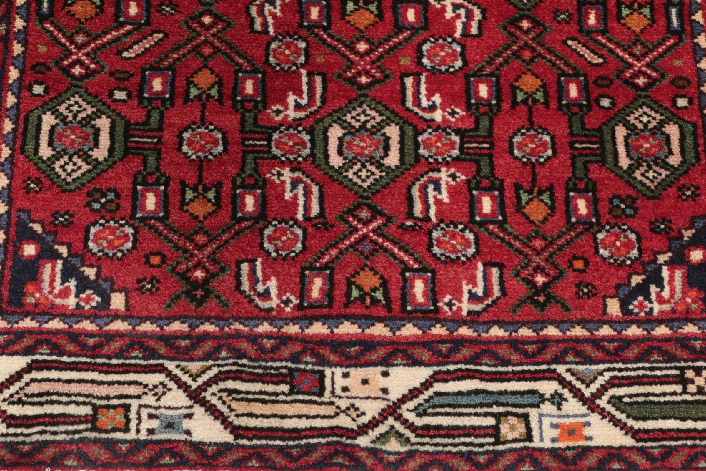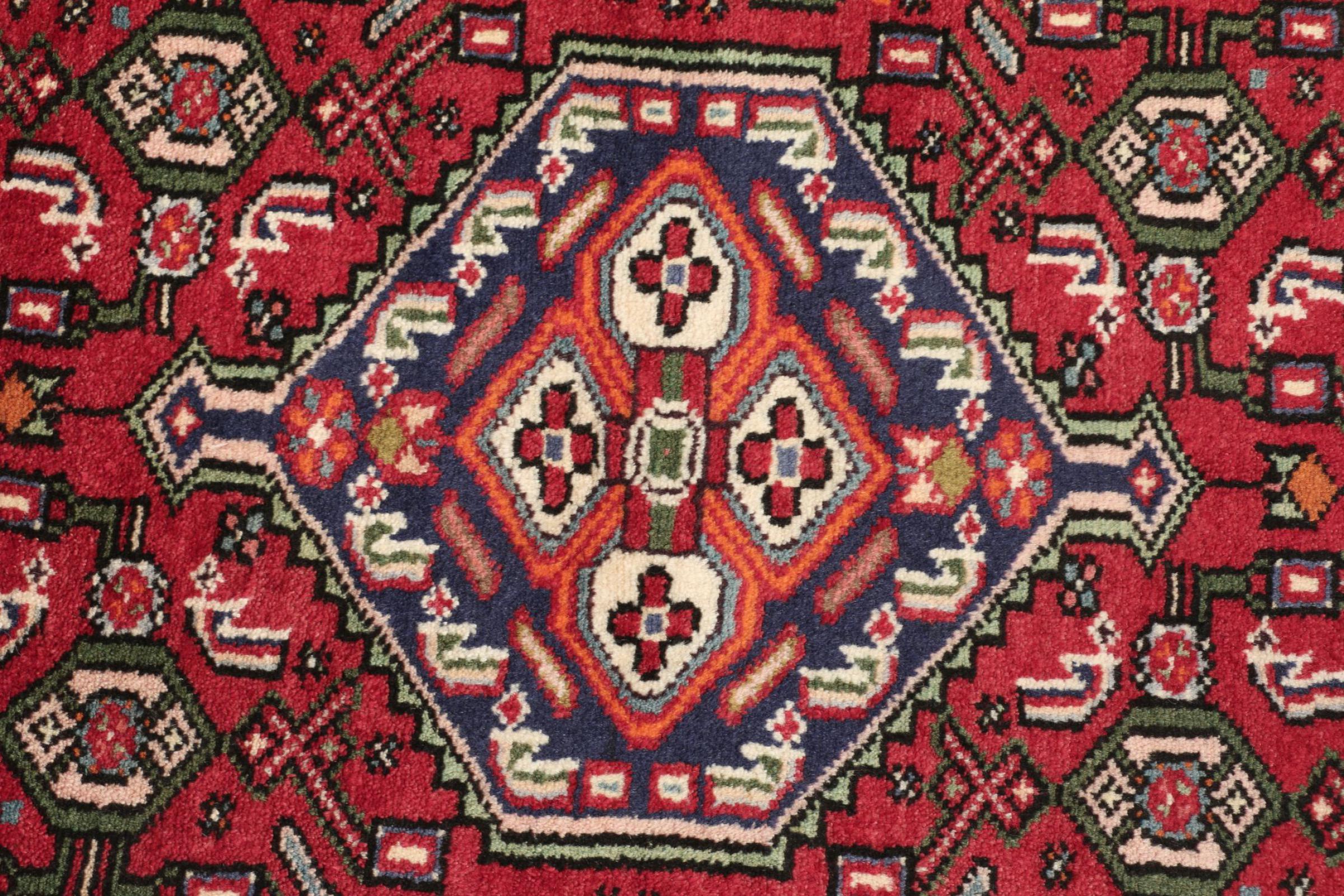Dette Hamadan-tæppe er ikke efterspurgt i nye indretningskoncepter for ingenting. Det kombinerer en uovertruffen pris med exceptionel kvalitet. På grund af de stærke garner, der bruges i produktionen af Hamadan-tæpper, er dette persiske tæppe særligt holdbart. Det er håndknyttet i byen Hamadan. De ofte geometriske mønstre og ornamenter er tidløse og derfor ekstremt populære i skandinavisk interiør. De dristige farver bringer hygge og varme til dit rum.