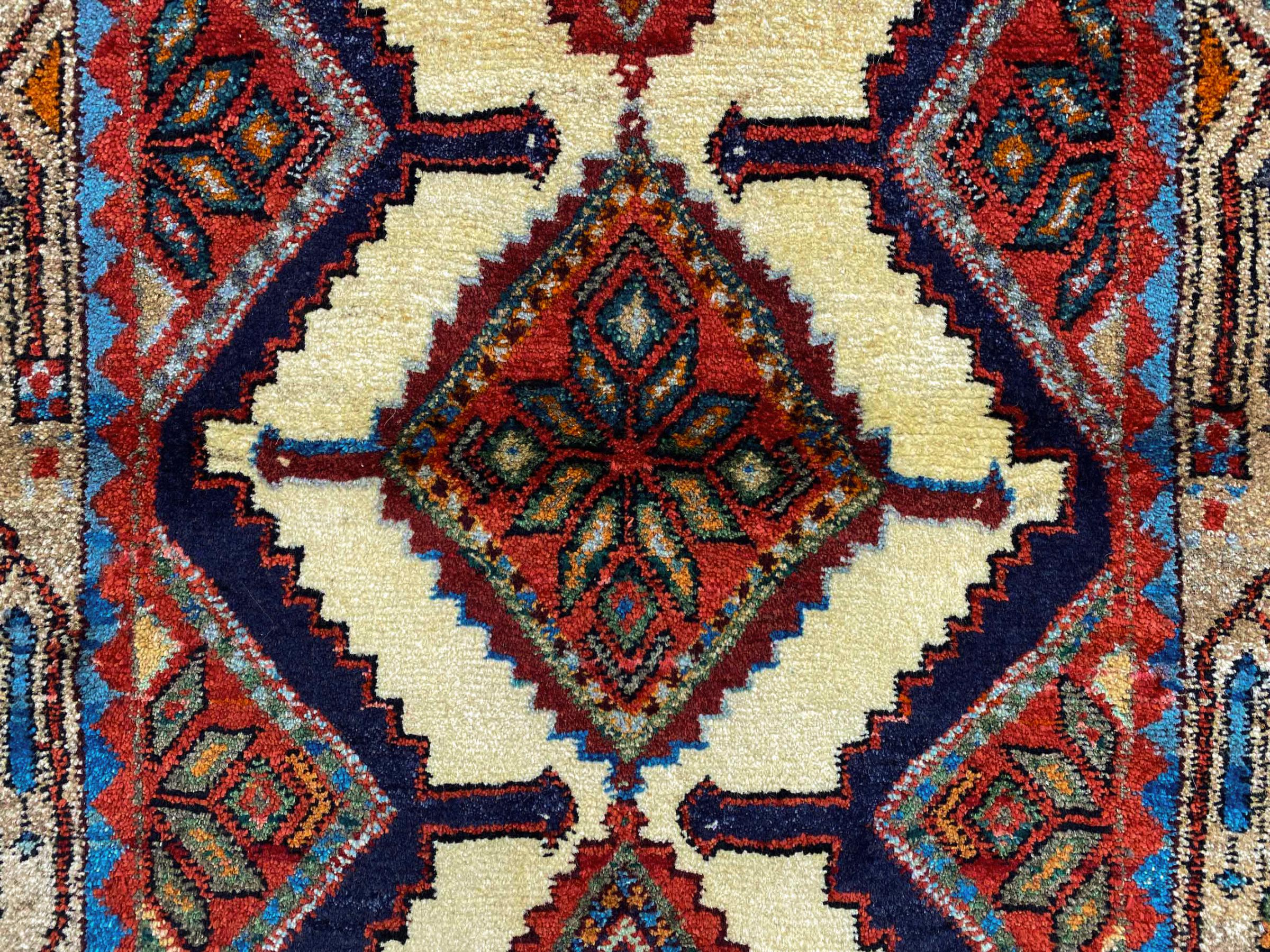 Dette Hamadan-tæppe er ikke efterspurgt i nye indretningskoncepter for ingenting. Det kombinerer en uovertruffen pris med exceptionel kvalitet. På grund af de stærke garner, der bruges i produktionen af Hamadan-tæpper, er dette persiske tæppe særligt holdbart. Det er håndknyttet i byen Hamadan. De ofte geometriske mønstre og ornamenter er tidløse og derfor ekstremt populære i skandinavisk interiør. De dristige farver bringer hygge og varme til dit rum.