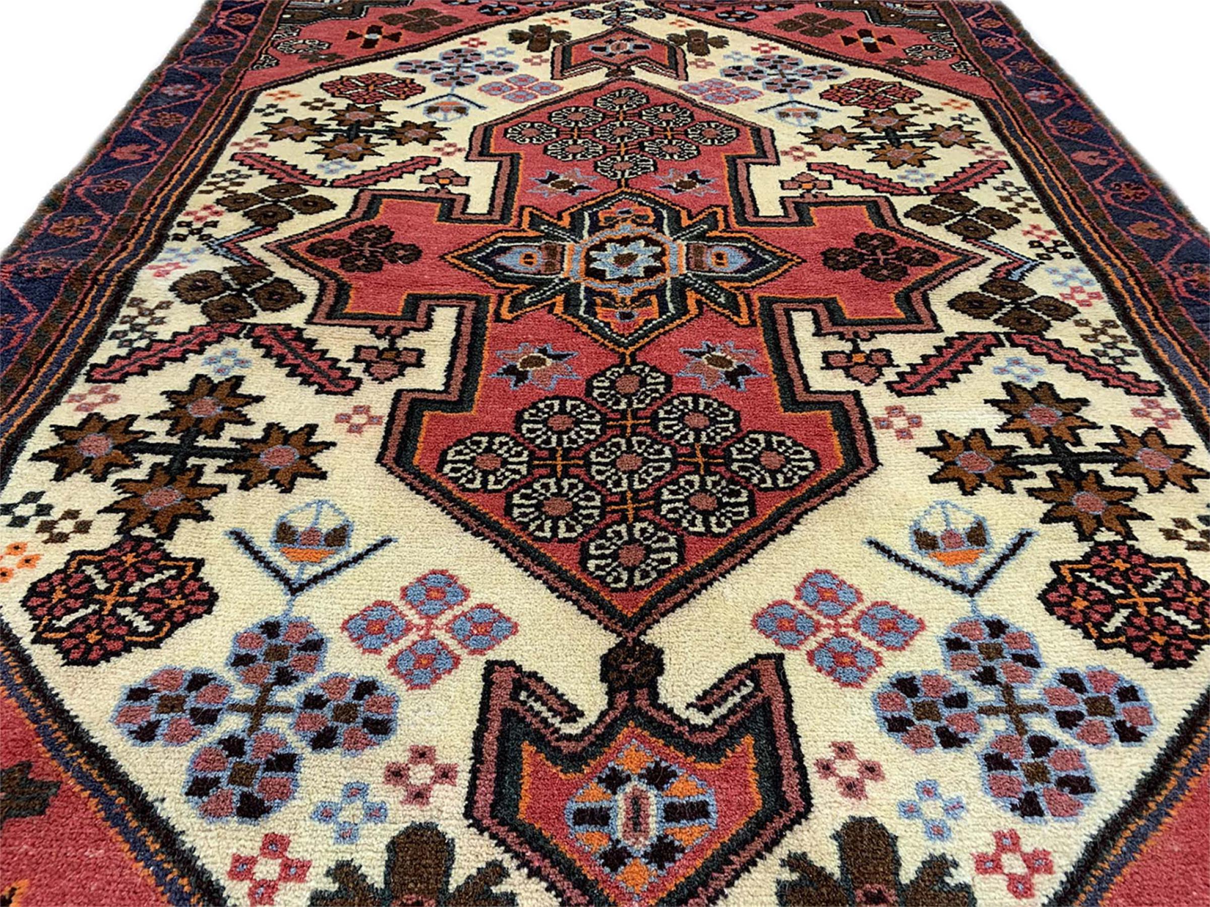 Dette tæppe hører til landsby- og nomadetæpper fra Iran, tidligere Persien. Denne type tæppe er håndknyttet i små byer og landsbyer i den gamle tradition. Nomader fremstiller også persiske tæpper under den åbne himmel. Tæpperne er knudt helt fra hovedet uden en skabelon. De er kendetegnet ved klassiske ornamenter, der er opstillet i lineære og geometriske mønstre. Takket være deres kulturelle og traditionelle oprindelse har disse tæpper en unik karakter, der udgør det gamle Persien.