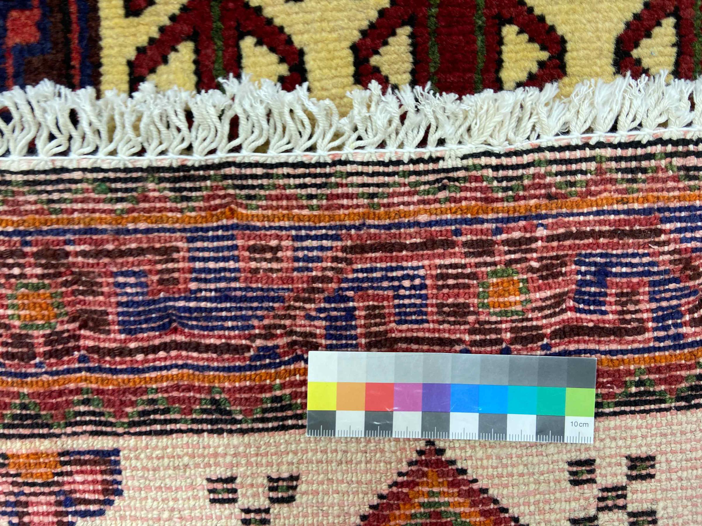 Dette tæppe hører til landsby- og nomadetæpper fra Iran, tidligere Persien. Denne type tæppe er håndknyttet i små byer og landsbyer i den gamle tradition. Nomader fremstiller også persiske tæpper under den åbne himmel. Tæpperne er knudt helt fra hovedet uden en skabelon. De er kendetegnet ved klassiske ornamenter, der er opstillet i lineære og geometriske mønstre. Takket være deres kulturelle og traditionelle oprindelse har disse tæpper en unik karakter, der udgør det gamle Persien.