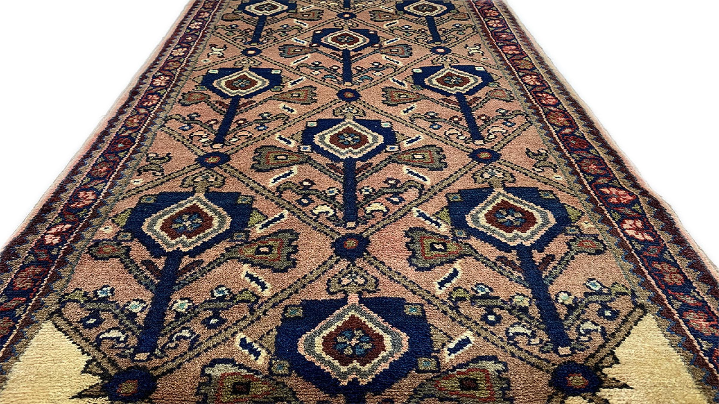 Dette tæppe hører til landsby- og nomadetæpper fra Iran, tidligere Persien. Denne type tæppe er håndknyttet i små byer og landsbyer i den gamle tradition. Nomader fremstiller også persiske tæpper under den åbne himmel. Tæpperne er knudt helt fra hovedet uden en skabelon. De er kendetegnet ved klassiske ornamenter, der er opstillet i lineære og geometriske mønstre. Takket være deres kulturelle og traditionelle oprindelse har disse tæpper en unik karakter, der udgør det gamle Persien.