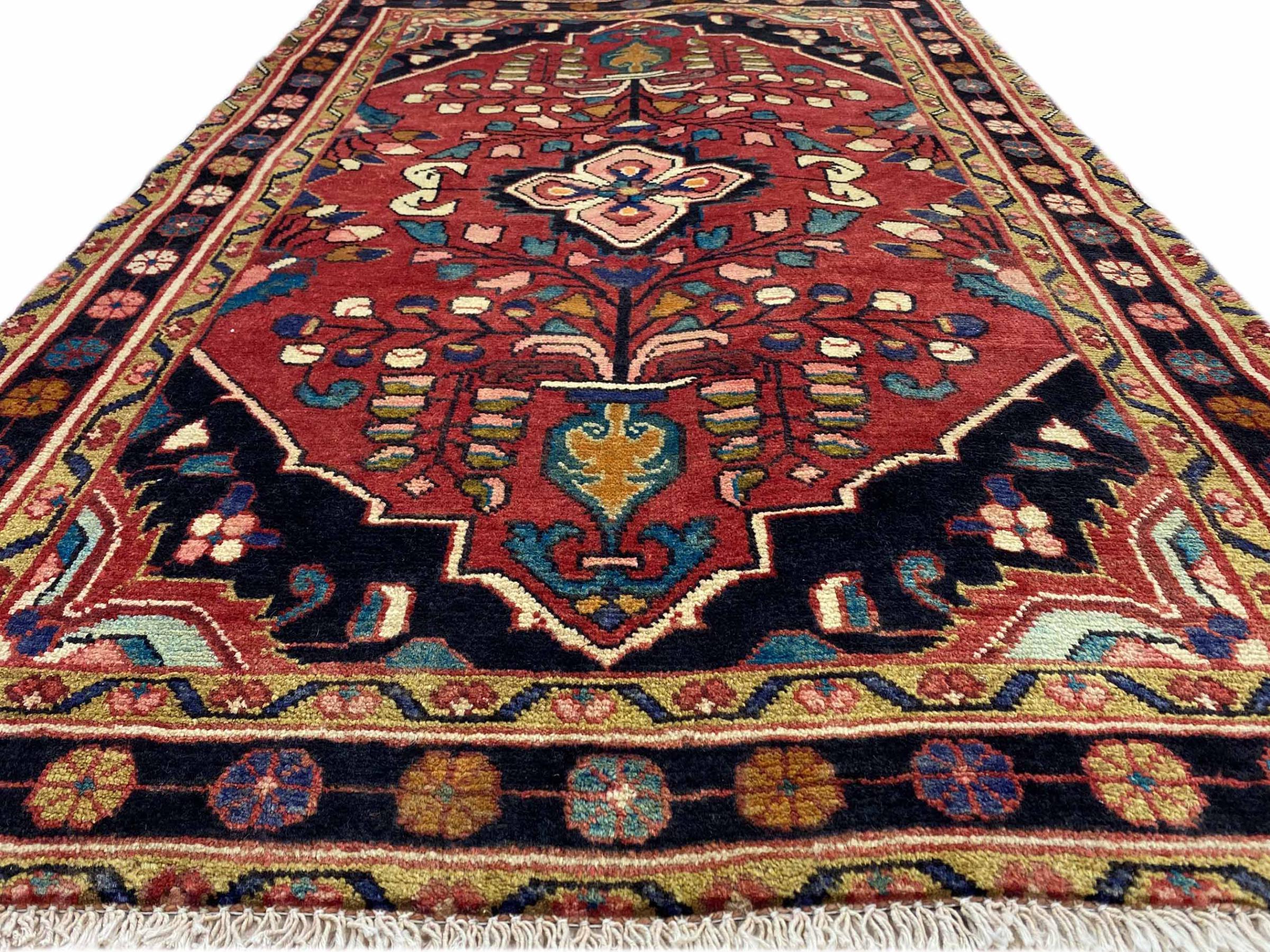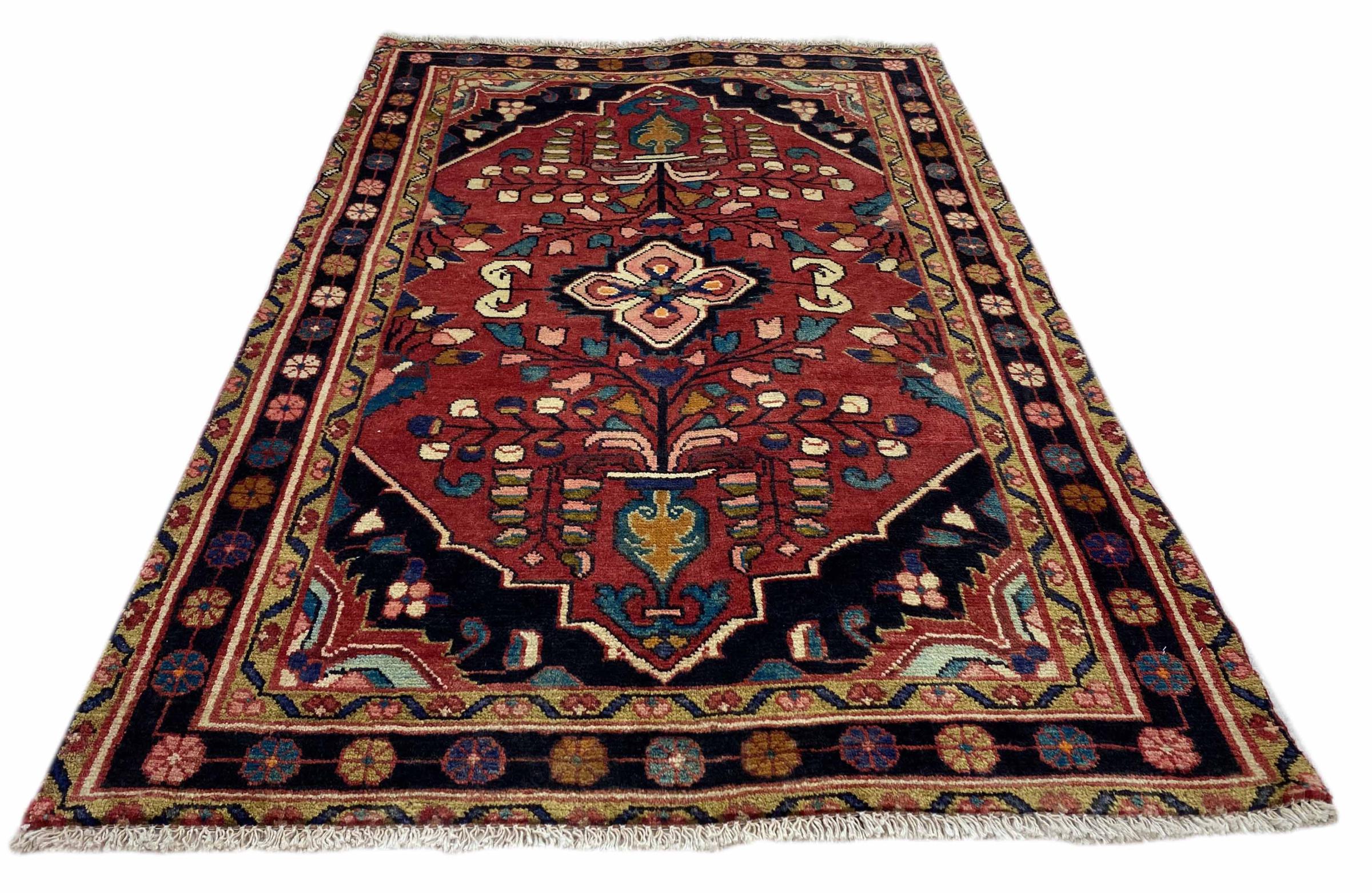 Dette tæppe hører til landsby- og nomadetæpper fra Iran, tidligere Persien. Denne type tæppe er håndknyttet i små byer og landsbyer i den gamle tradition. Nomader fremstiller også persiske tæpper under den åbne himmel. Tæpperne er knudt helt fra hovedet uden en skabelon. De er kendetegnet ved klassiske ornamenter, der er opstillet i lineære og geometriske mønstre. Takket være deres kulturelle og traditionelle oprindelse har disse tæpper en unik karakter, der udgør det gamle Persien.