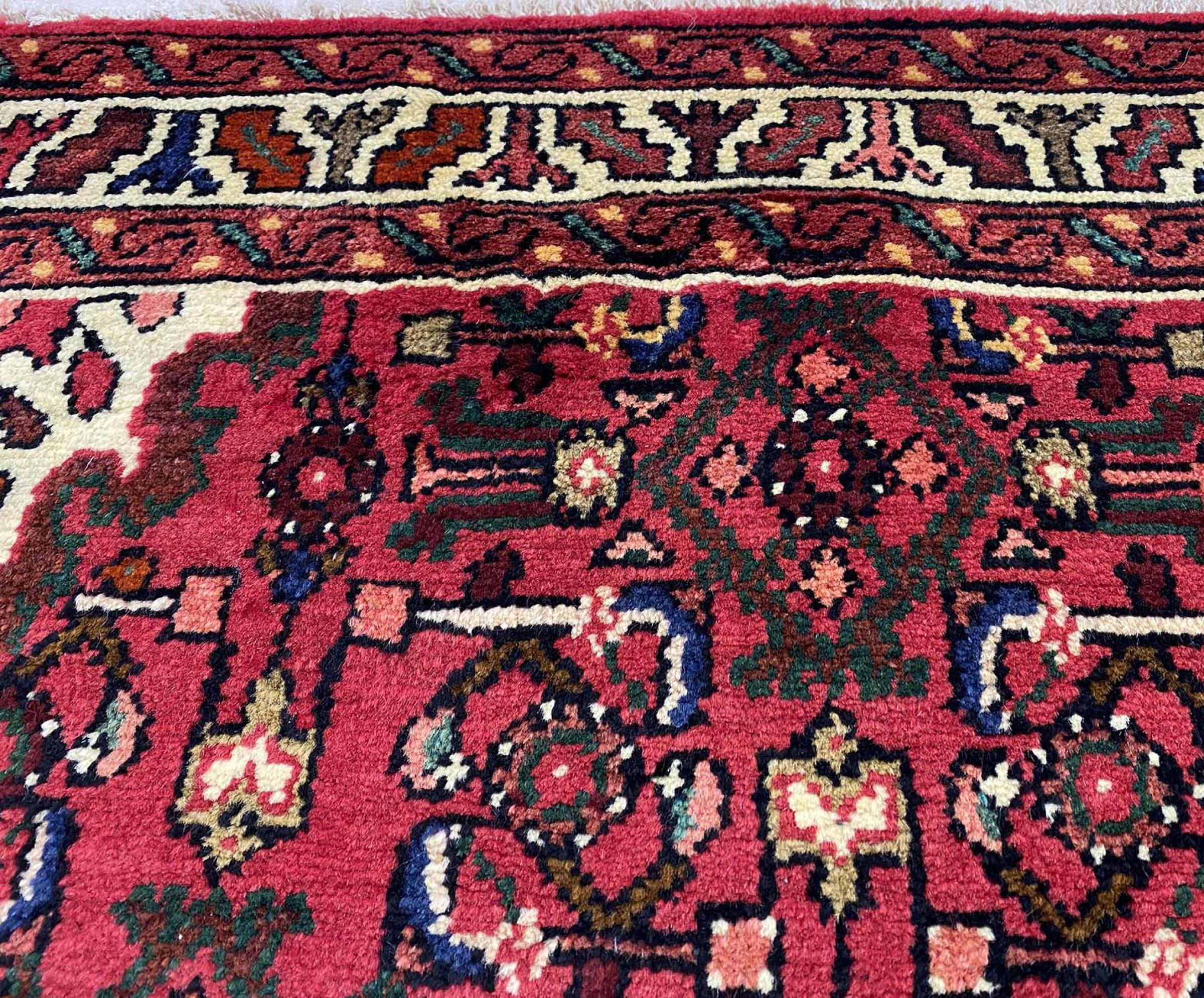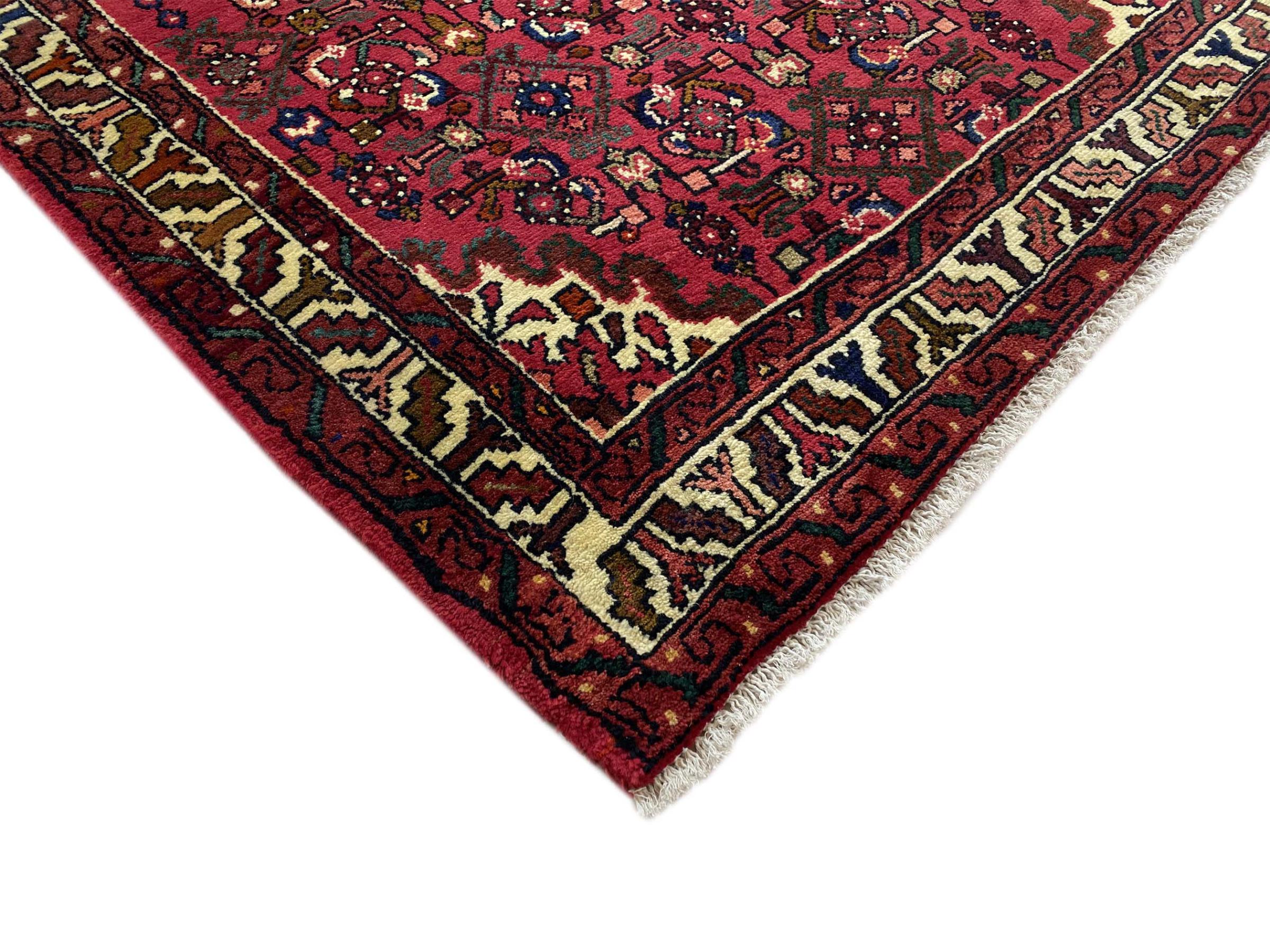 Dette Hamadan-tæppe er ikke efterspurgt i nye indretningskoncepter for ingenting. Det kombinerer en uovertruffen pris med exceptionel kvalitet. På grund af de stærke garner, der bruges i produktionen af Hamadan-tæpper, er dette persiske tæppe særligt holdbart. Det er håndknyttet i byen Hamadan. De ofte geometriske mønstre og ornamenter er tidløse og derfor ekstremt populære i skandinavisk interiør. De dristige farver bringer hygge og varme til dit rum.