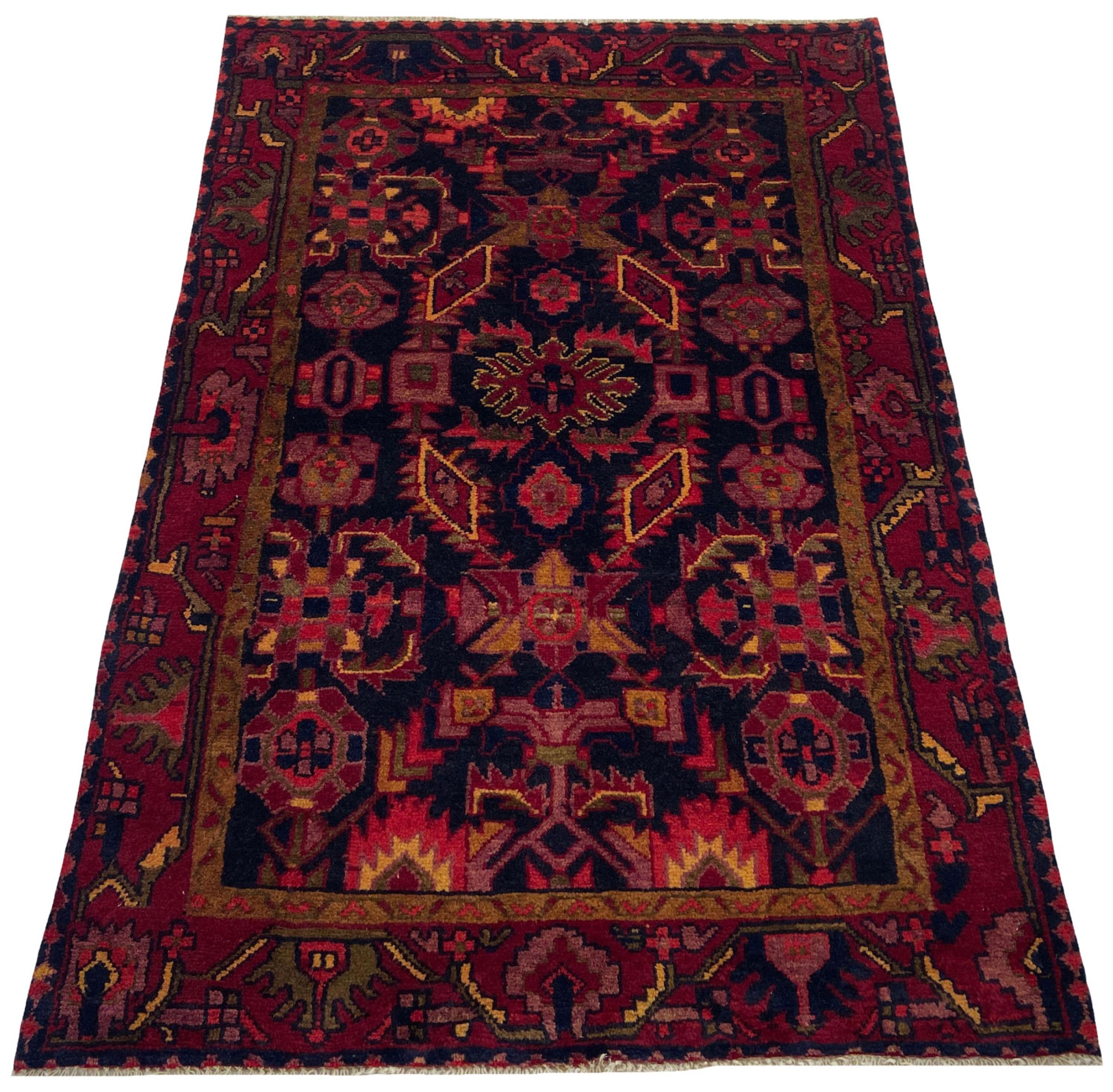 Dette tæppe hører til landsby- og nomadetæpper fra Iran, tidligere Persien. Denne type tæppe er håndknyttet i små byer og landsbyer i den gamle tradition. Nomader fremstiller også persiske tæpper under den åbne himmel. Tæpperne er knudt helt fra hovedet uden en skabelon. De er kendetegnet ved klassiske ornamenter, der er opstillet i lineære og geometriske mønstre. Takket være deres kulturelle og traditionelle oprindelse har disse tæpper en unik karakter, der udgør det gamle Persien.
