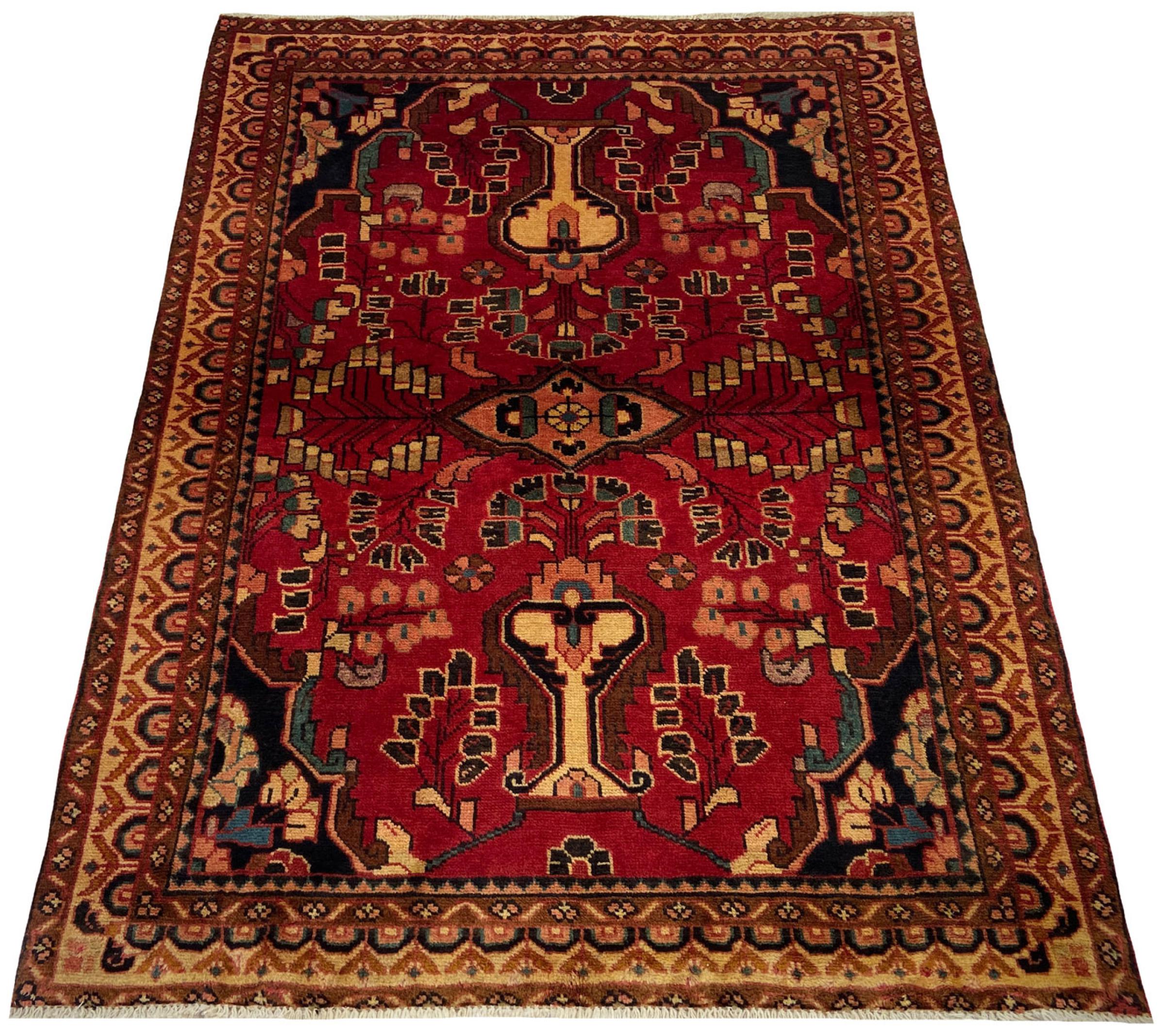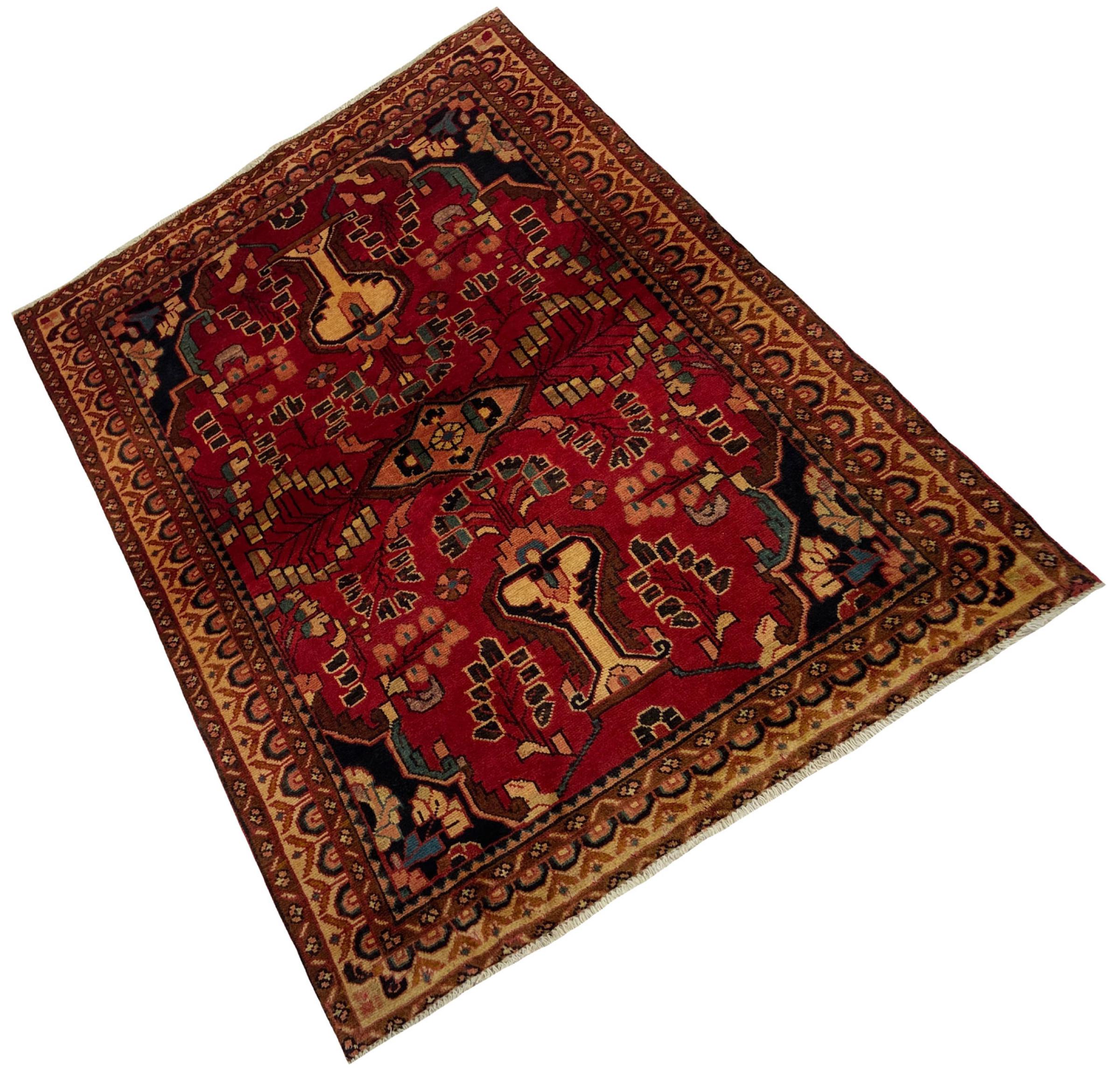 Dette tæppe hører til landsby- og nomadetæpper fra Iran, tidligere Persien. Denne type tæppe er håndknyttet i små byer og landsbyer i den gamle tradition. Nomader fremstiller også persiske tæpper under den åbne himmel. Tæpperne er knudt helt fra hovedet uden en skabelon. De er kendetegnet ved klassiske ornamenter, der er opstillet i lineære og geometriske mønstre. Takket være deres kulturelle og traditionelle oprindelse har disse tæpper en unik karakter, der udgør det gamle Persien.