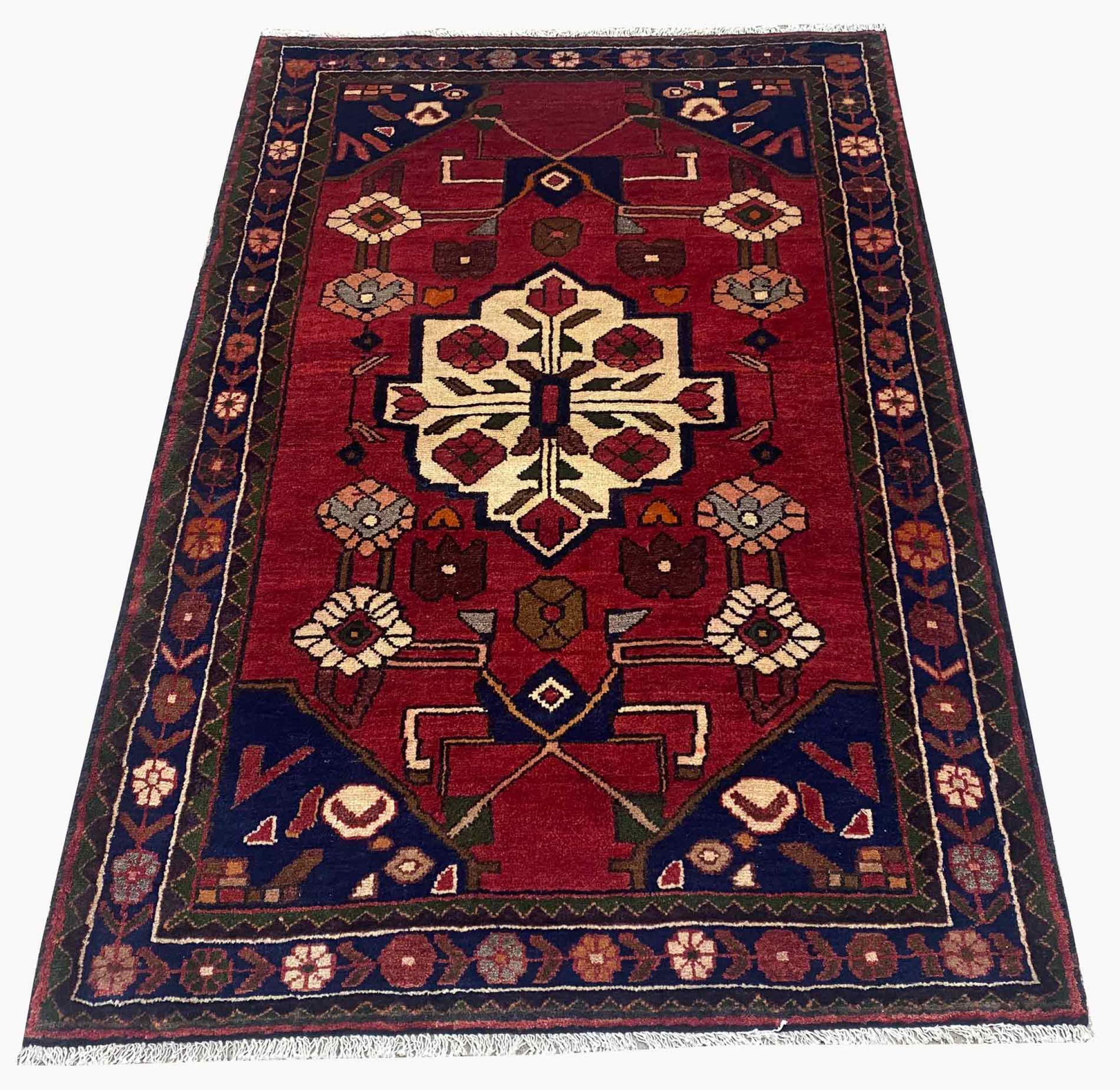 Dette tæppe hører til landsby- og nomadetæpper fra Iran, tidligere Persien. Denne type tæppe er håndknyttet i små byer og landsbyer i den gamle tradition. Nomader fremstiller også persiske tæpper under den åbne himmel. Tæpperne er knudt helt fra hovedet uden en skabelon. De er kendetegnet ved klassiske ornamenter, der er opstillet i lineære og geometriske mønstre. Takket være deres kulturelle og traditionelle oprindelse har disse tæpper en unik karakter, der udgør det gamle Persien.