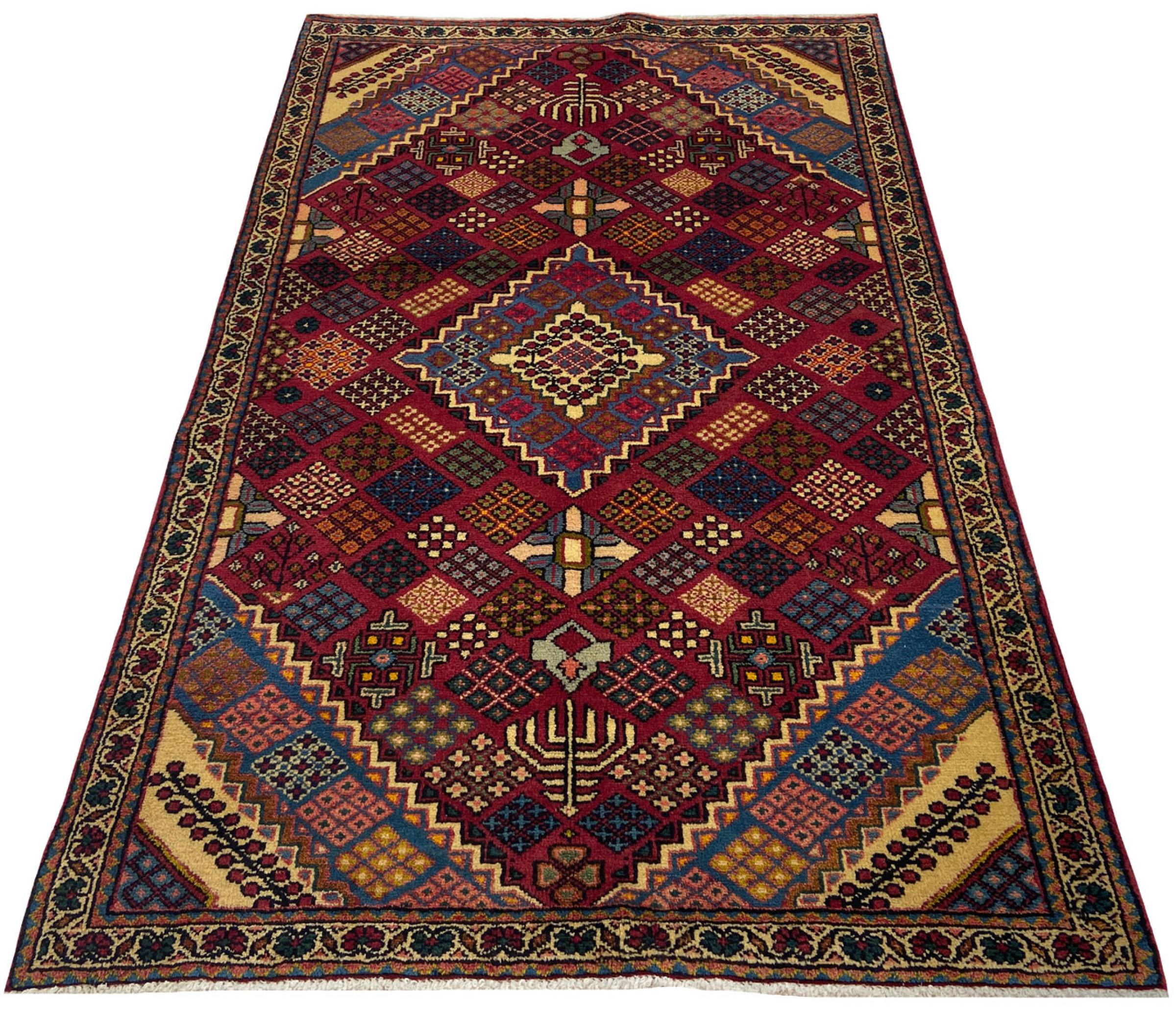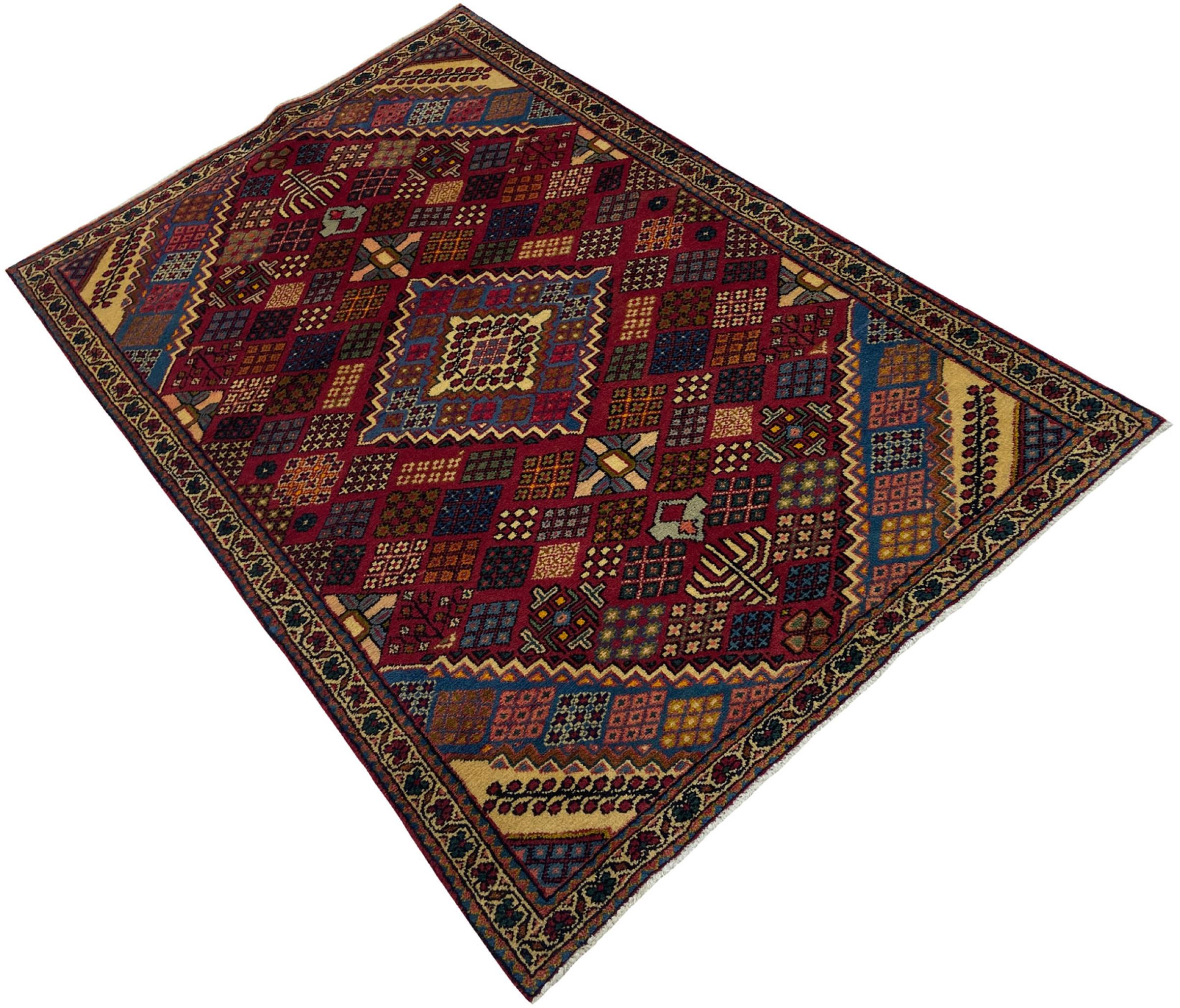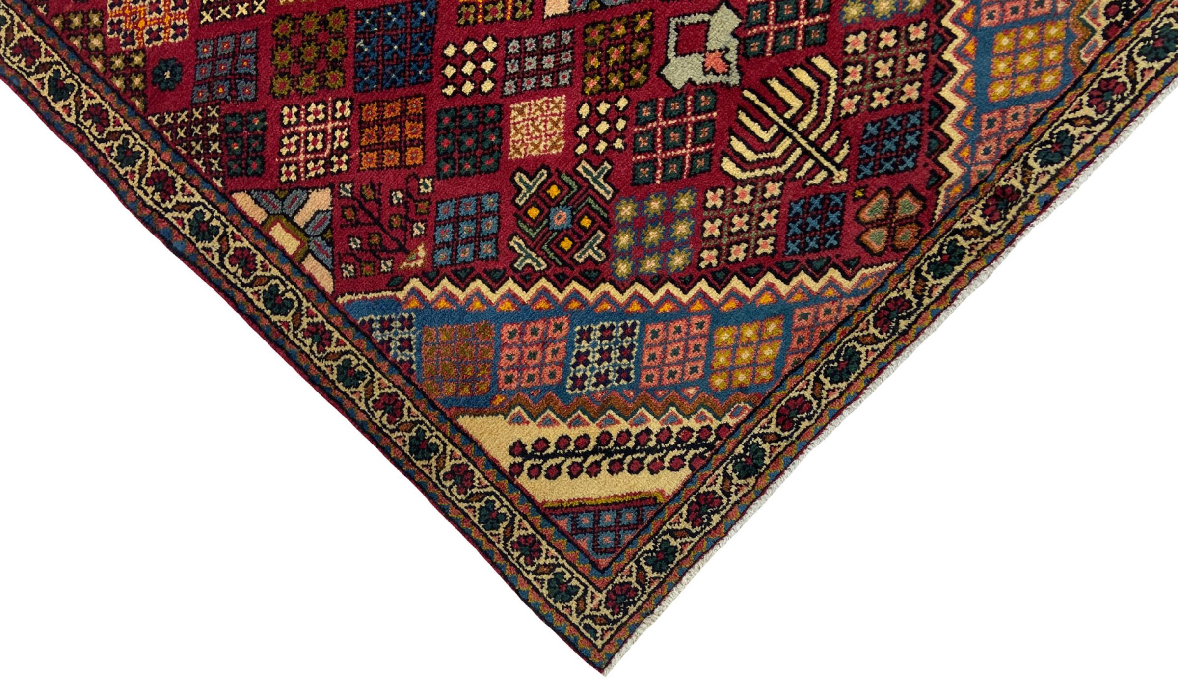 Dette tæppe hører til landsby- og nomadetæpper fra Iran, tidligere Persien. Denne type tæppe er håndknyttet i små byer og landsbyer i den gamle tradition. Nomader fremstiller også persiske tæpper under den åbne himmel. Tæpperne er knudt helt fra hovedet uden en skabelon. De er kendetegnet ved klassiske ornamenter, der er opstillet i lineære og geometriske mønstre. Takket være deres kulturelle og traditionelle oprindelse har disse tæpper en unik karakter, der udgør det gamle Persien.