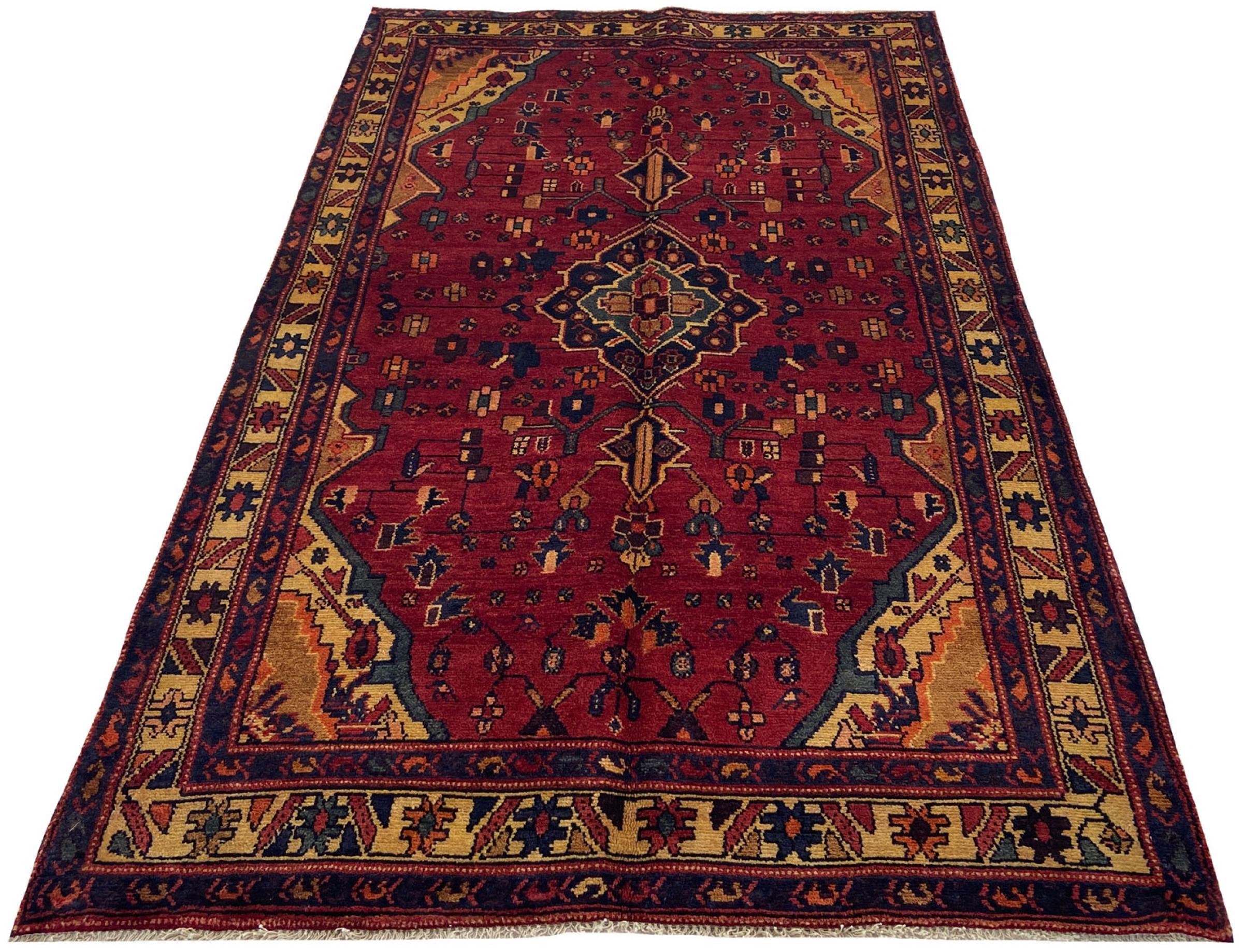Dette tæppe hører til landsby- og nomadetæpper fra Iran, tidligere Persien. Denne type tæppe er håndknyttet i små byer og landsbyer i den gamle tradition. Nomader fremstiller også persiske tæpper under den åbne himmel. Tæpperne er knudt helt fra hovedet uden en skabelon. De er kendetegnet ved klassiske ornamenter, der er opstillet i lineære og geometriske mønstre. Takket være deres kulturelle og traditionelle oprindelse har disse tæpper en unik karakter, der udgør det gamle Persien.