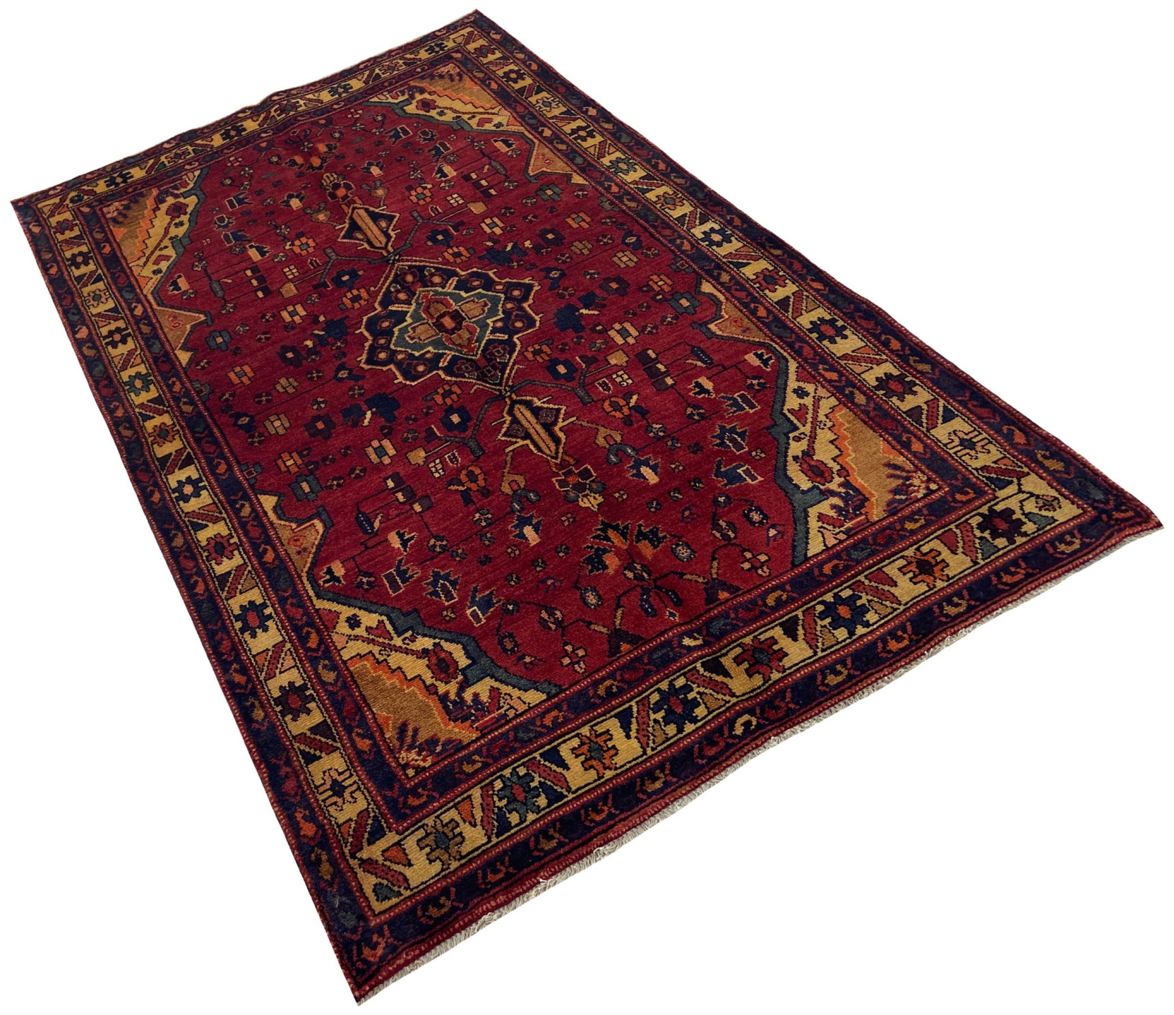 Dette Hamadan-tæppe er ikke efterspurgt i nye indretningskoncepter for ingenting. Det kombinerer en uovertruffen pris med exceptionel kvalitet. På grund af de stærke garner, der bruges i produktionen af Hamadan-tæpper, er dette persiske tæppe særligt holdbart. Det er håndknyttet i byen Hamadan. De ofte geometriske mønstre og ornamenter er tidløse og derfor ekstremt populære i skandinavisk interiør. De dristige farver bringer hygge og varme til dit rum.