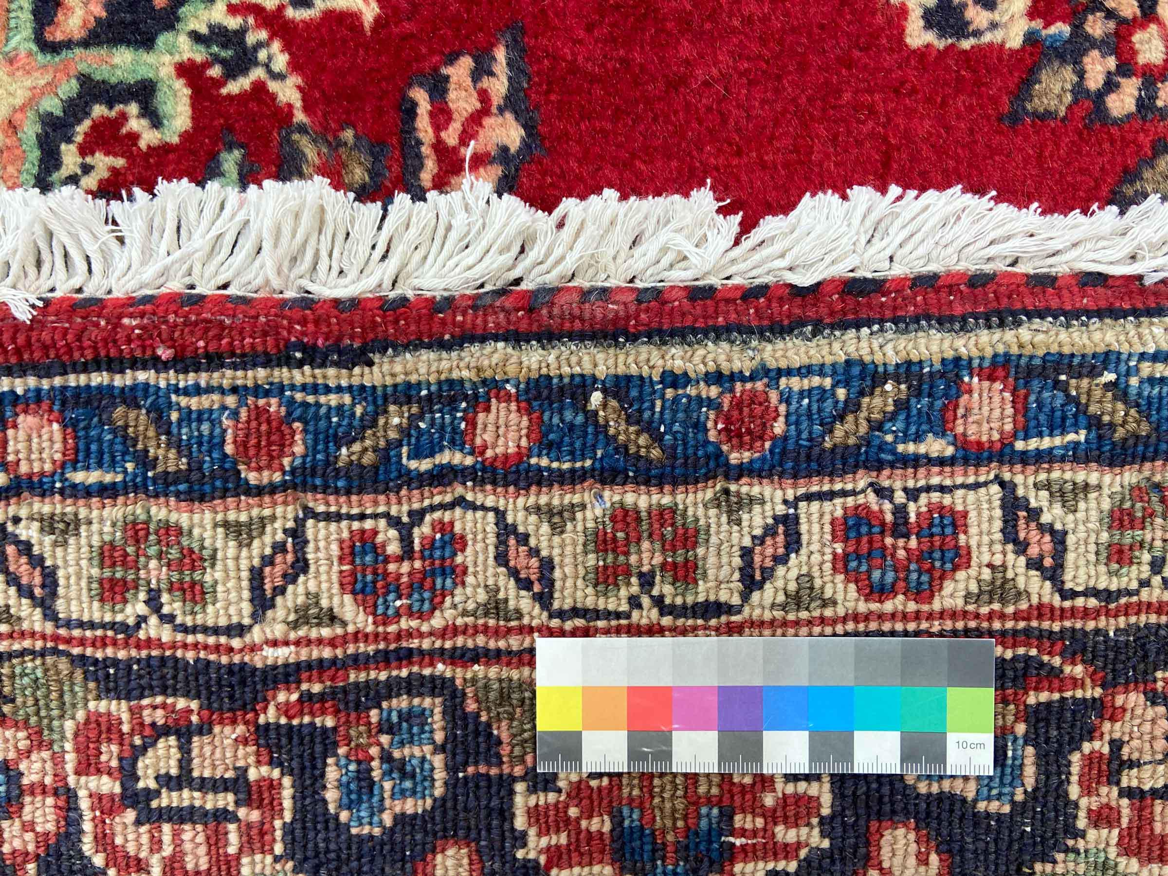 Dette tæppe består af håndspundet fåruld af højeste kvalitet. Især i Iran (tidligere Persien), Afghanistan og Pakistan spindes uld med hånden, før tæppet faktisk knuses. Uld har bevist sig som et naturligt og ekstremt slidstærkt materiale gennem århundreder. Det har blandt andet snavsafvisende og varmeisolerende egenskaber. Samtidig er uld uforlignelig blød og bringer en naturlig glans.
