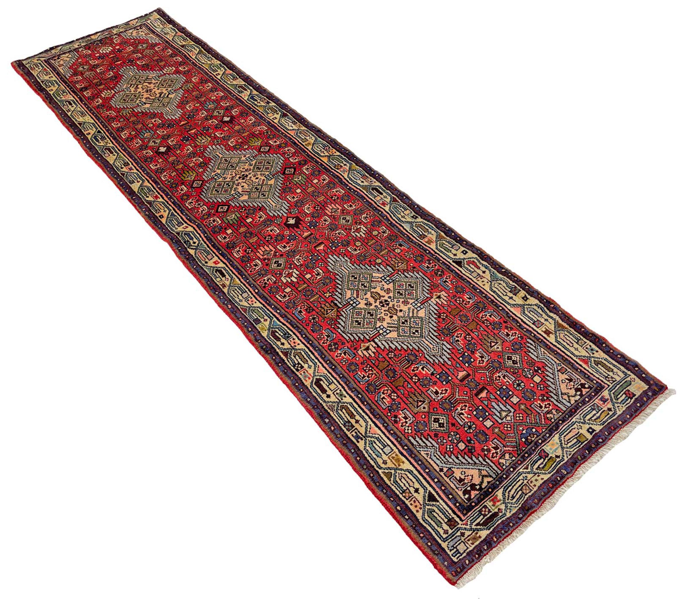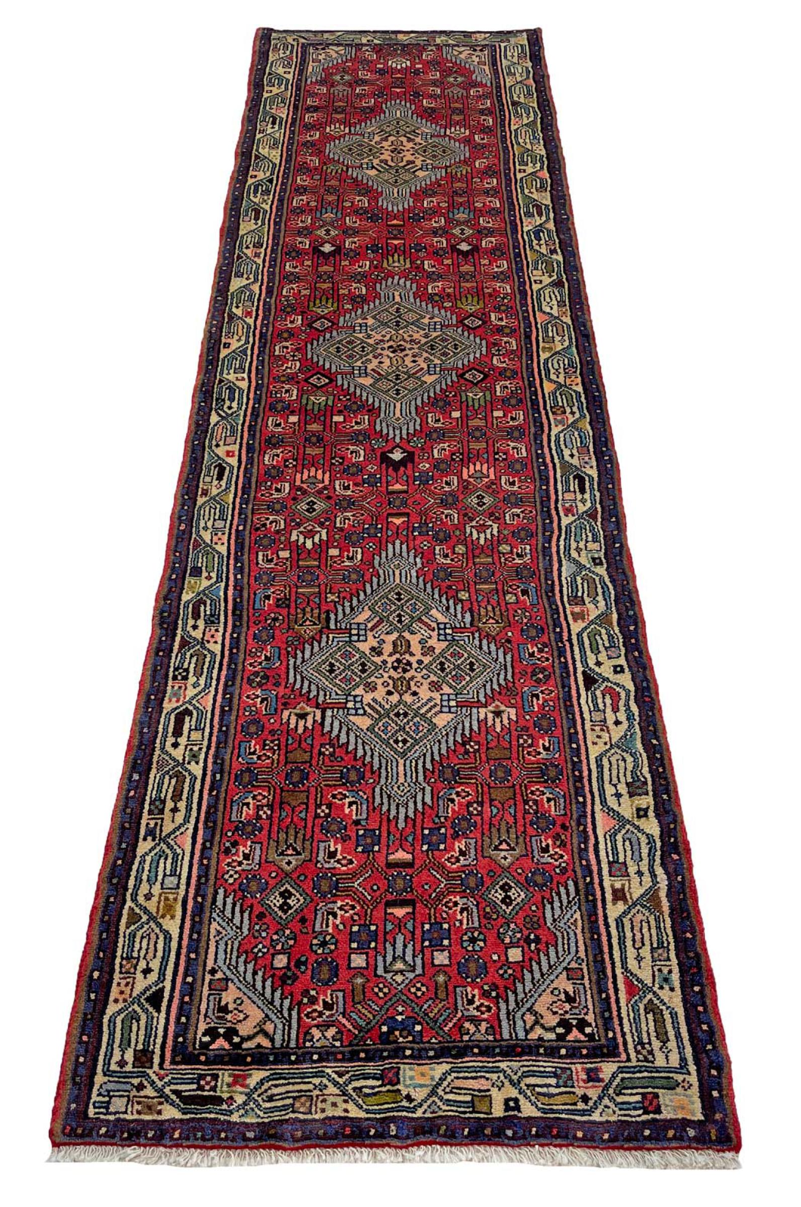 Tæppe-nr.: 318715007912343 Størrelse: 294x78 cm Tykkelse: ca. 12 mm Knuder: 128 000 - 160 000 / m² Forarbejdelse: Knyttet i hånden Luv: Håndspunden uld Kæde: Bomuld Oprindelse: Persien / Iran Alder: Ny Vægt: ca. 9 kg Også kendt som Huseinabad Antal på lager: Unik - Kun 1 tilbage på lager