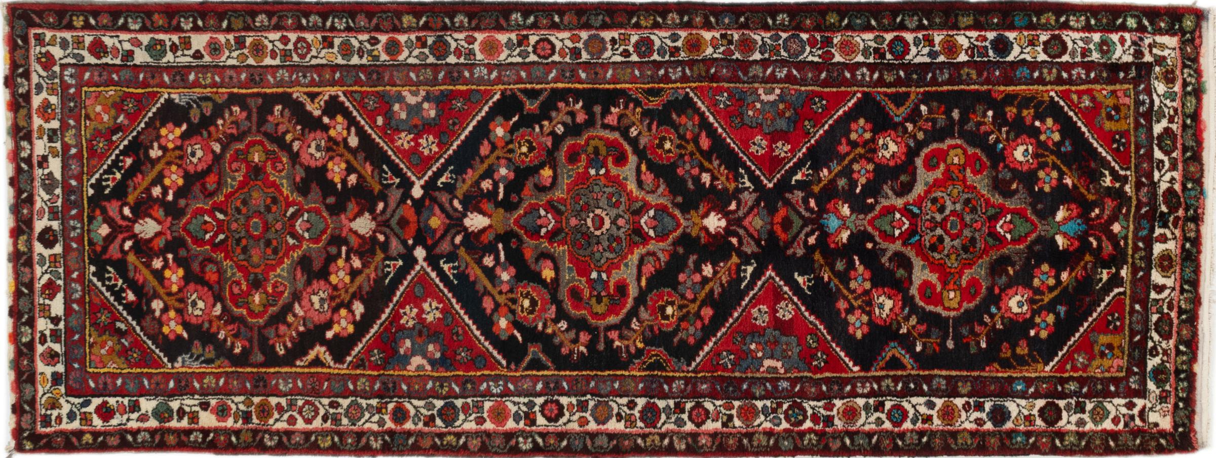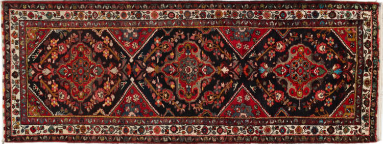 Tæppe-nr.: 297089006709344 Størrelse: 304x119 cm Tykkelse: ca. 8 mm Knuder: 200 000 - 250 000 / m² Forarbejdelse: Knyttet i hånden Luv: Uld Kæde: Bomuld Oprindelse: Persien / Iran Alder: ca. 30-50 år (ny) Vægt: ca. 13 kg Også kendt som Huseinabad Antal på lager: Unik - Kun 1 tilbage på lager