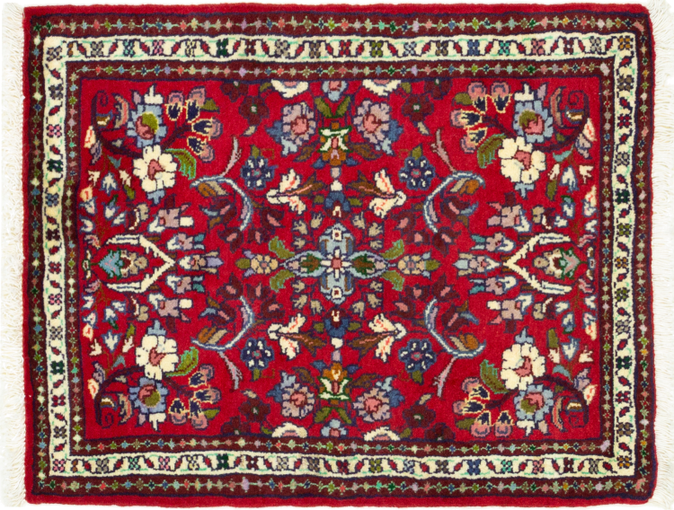 Tæppe-nr.: 303351003830446 Størrelse: 82x63 cm Tykkelse: ca. 5 mm Knuder: 200 000 - 250 000 / m² Forarbejdelse: Knyttet i hånden Luv: Håndspunden uld Kæde: Bomuld Oprindelse: Persien / Iran Alder: Ny Vægt: ca. 2 kg Også kendt som Huseinabad Antal på lager: Unik - Kun 1 tilbage på lager