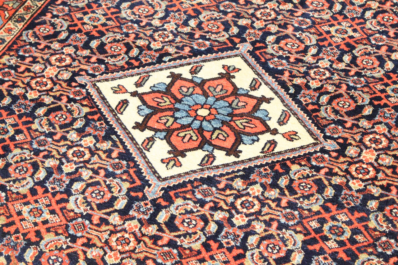 Dette Hamadan-tæppe er ikke efterspurgt i nye indretningskoncepter for ingenting. Det kombinerer en uovertruffen pris med exceptionel kvalitet. På grund af de stærke garner, der bruges i produktionen af Hamadan-tæpper, er dette persiske tæppe særligt holdbart. Det er håndknyttet i byen Hamadan. De ofte geometriske mønstre og ornamenter er tidløse og derfor ekstremt populære i skandinavisk interiør. De dristige farver bringer hygge og varme til dit rum.
