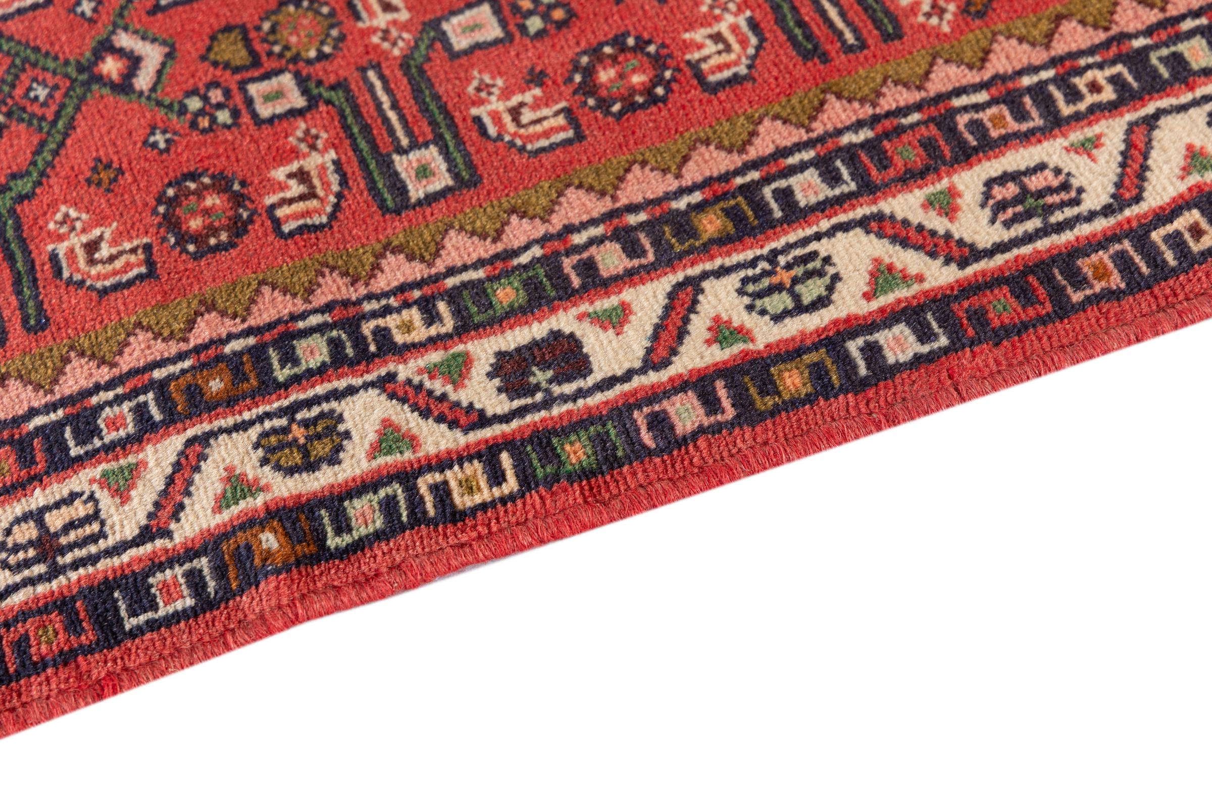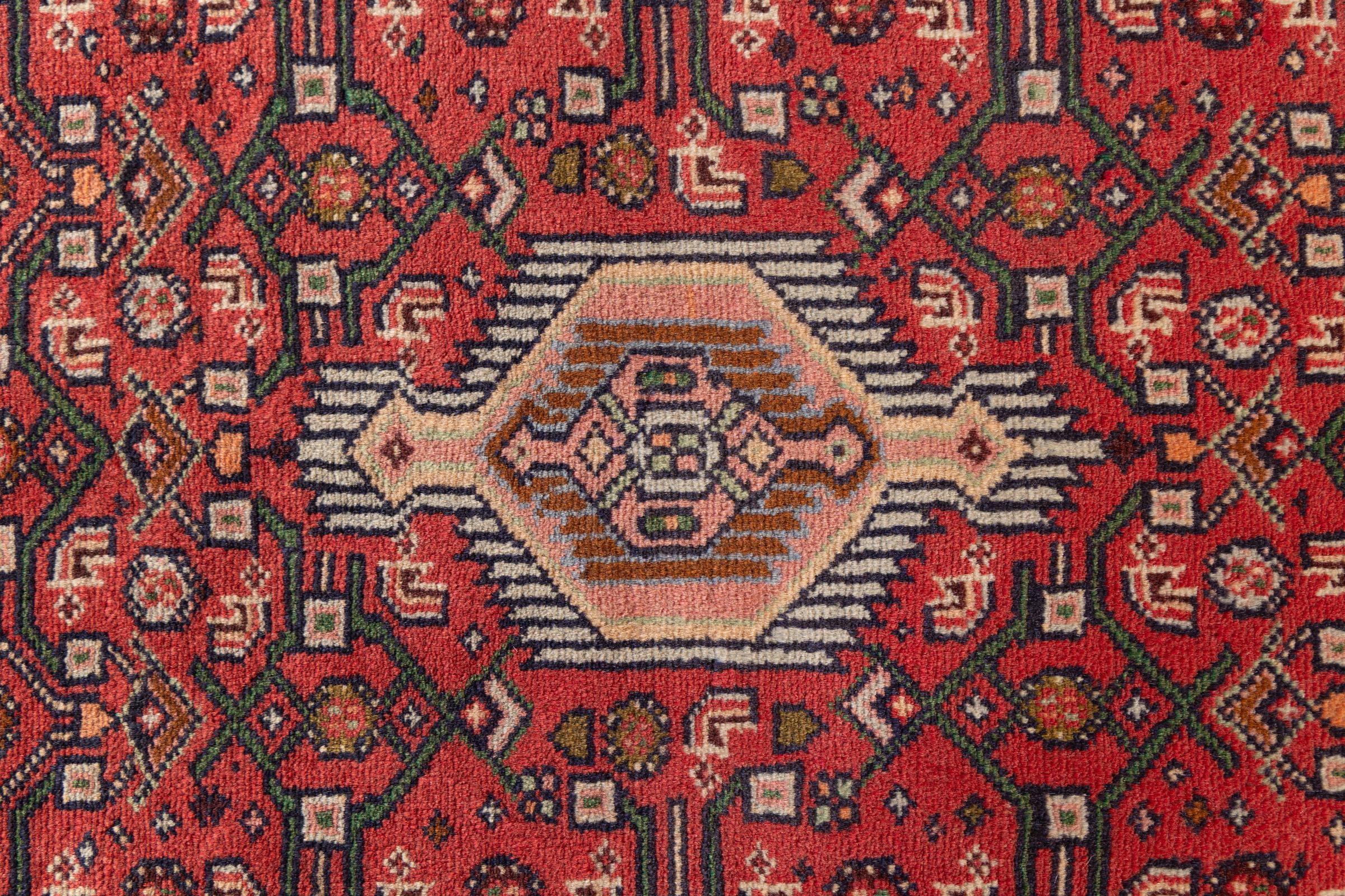Dette Hamadan-tæppe er ikke efterspurgt i nye indretningskoncepter for ingenting. Det kombinerer en uovertruffen pris med exceptionel kvalitet. På grund af de stærke garner, der bruges i produktionen af Hamadan-tæpper, er dette persiske tæppe særligt holdbart. Det er håndknyttet i byen Hamadan. De ofte geometriske mønstre og ornamenter er tidløse og derfor ekstremt populære i skandinavisk interiør. De dristige farver bringer hygge og varme til dit rum.