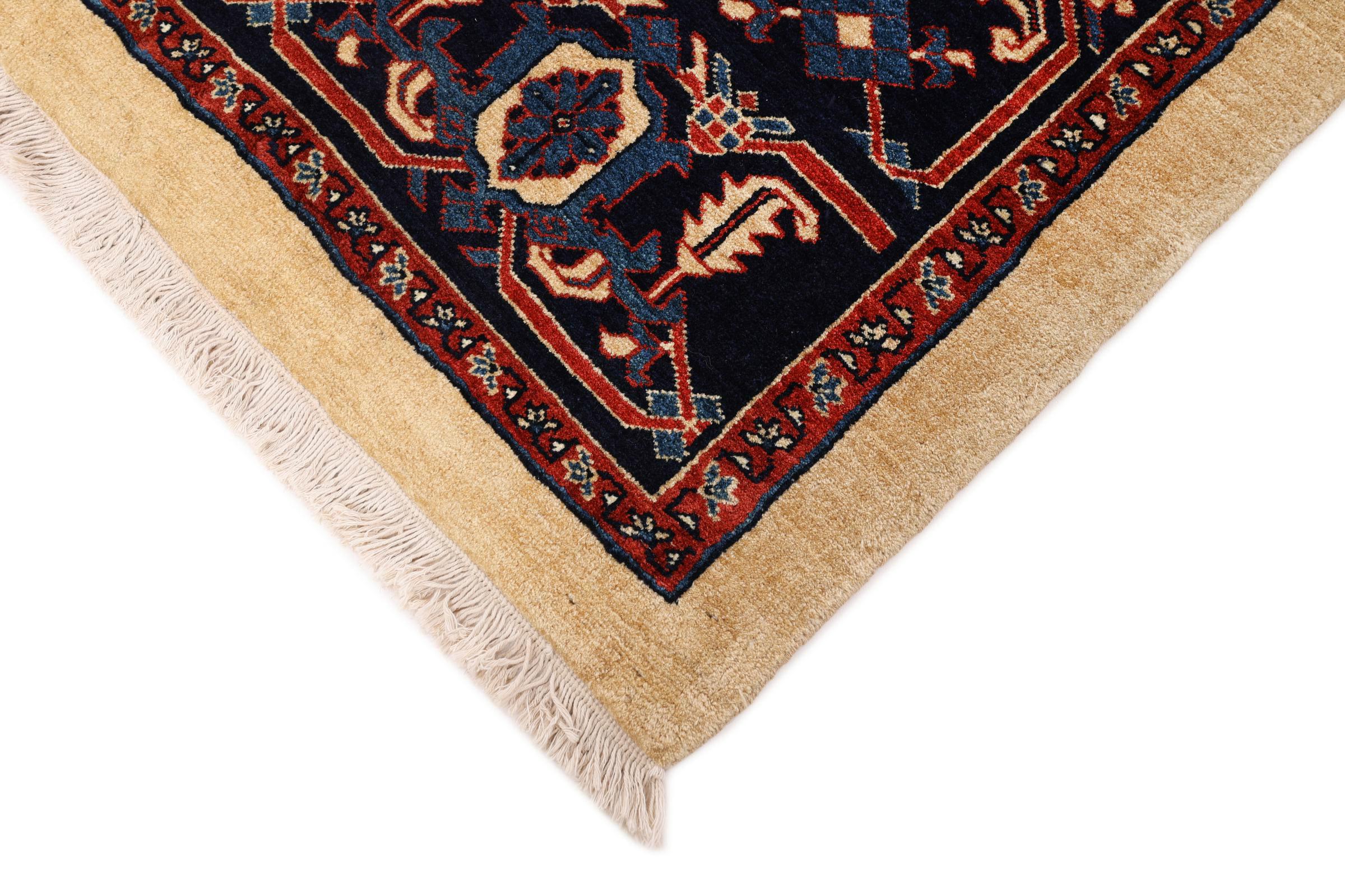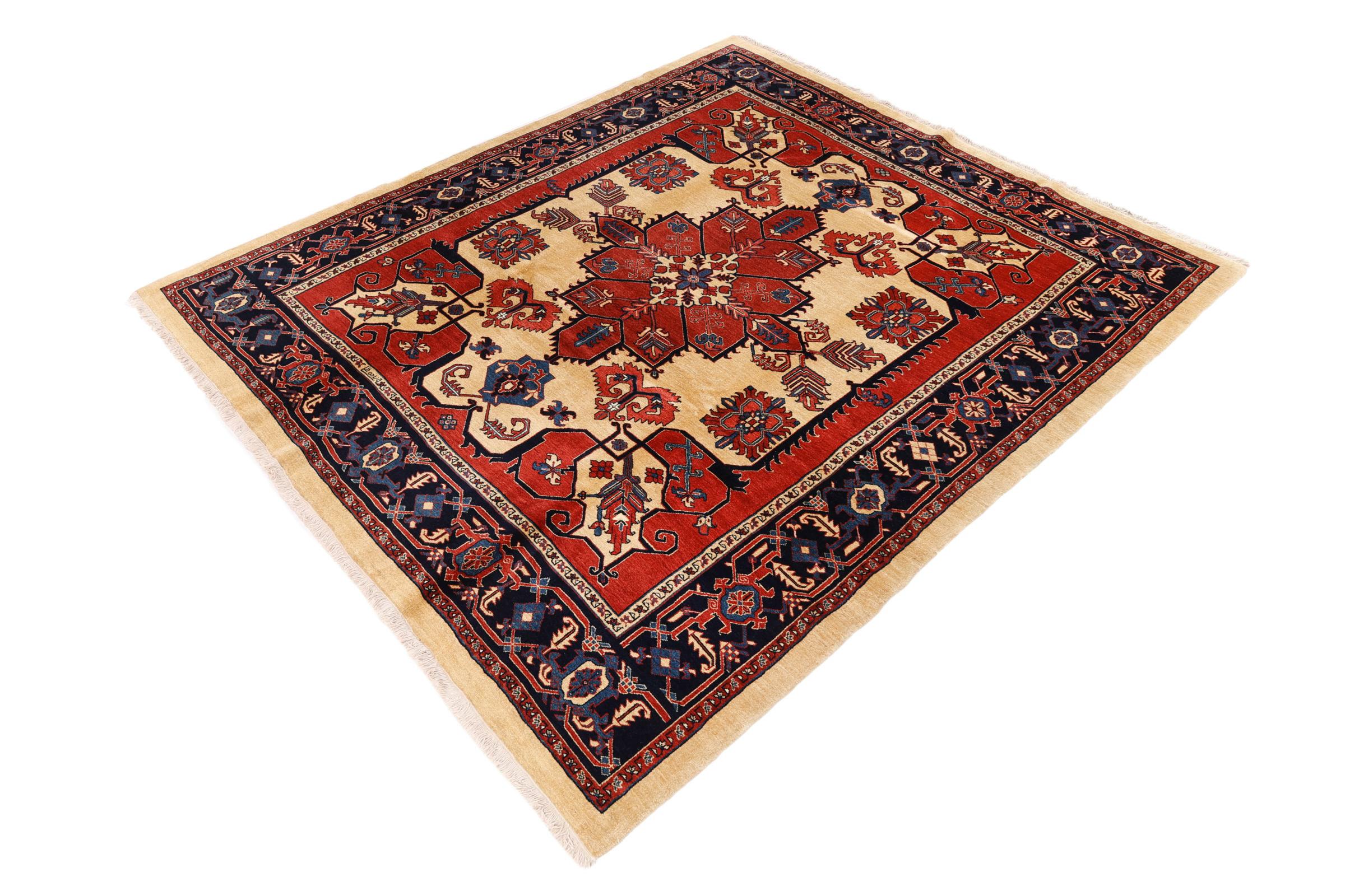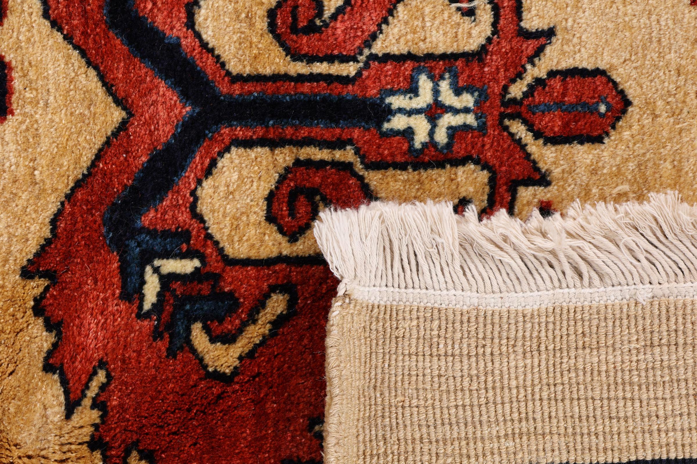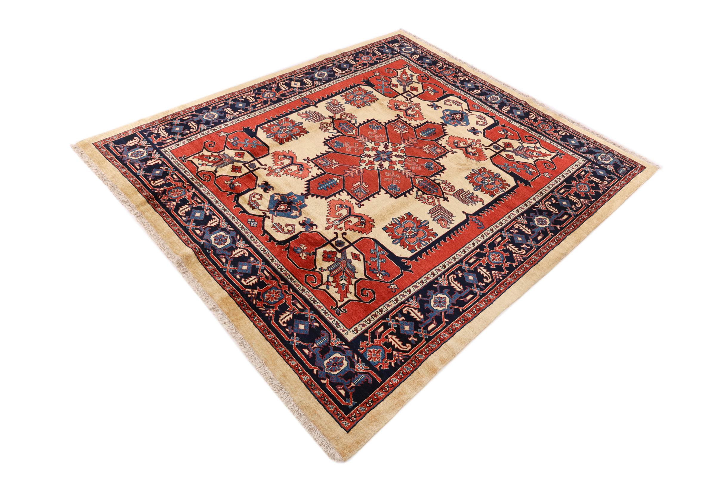 Dette Heriz-tæppe er et smukt eksempel på persisk tæppehåndværk. Dets rustikke design er et bevis på dets holdbarhed. Det er håndknyttet i byen Heriz, som ligger i nærheden af Tabriz i det nordvestlige Iran. Enhver, der er på udkig efter et persisk tæppe, der vil give glæde i lang tid og er meget moderne, vil elske dette Heriz. Heriz-tæppernes ornamenter er ekstremt populære i dag og ses som meget moderne. Du vil aldrig opgive et tæppe som dette igen.