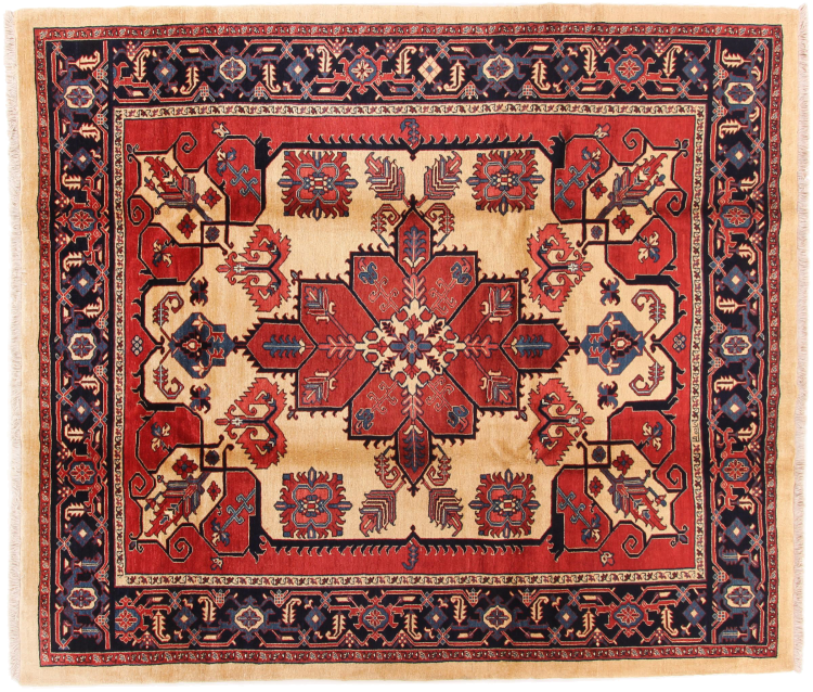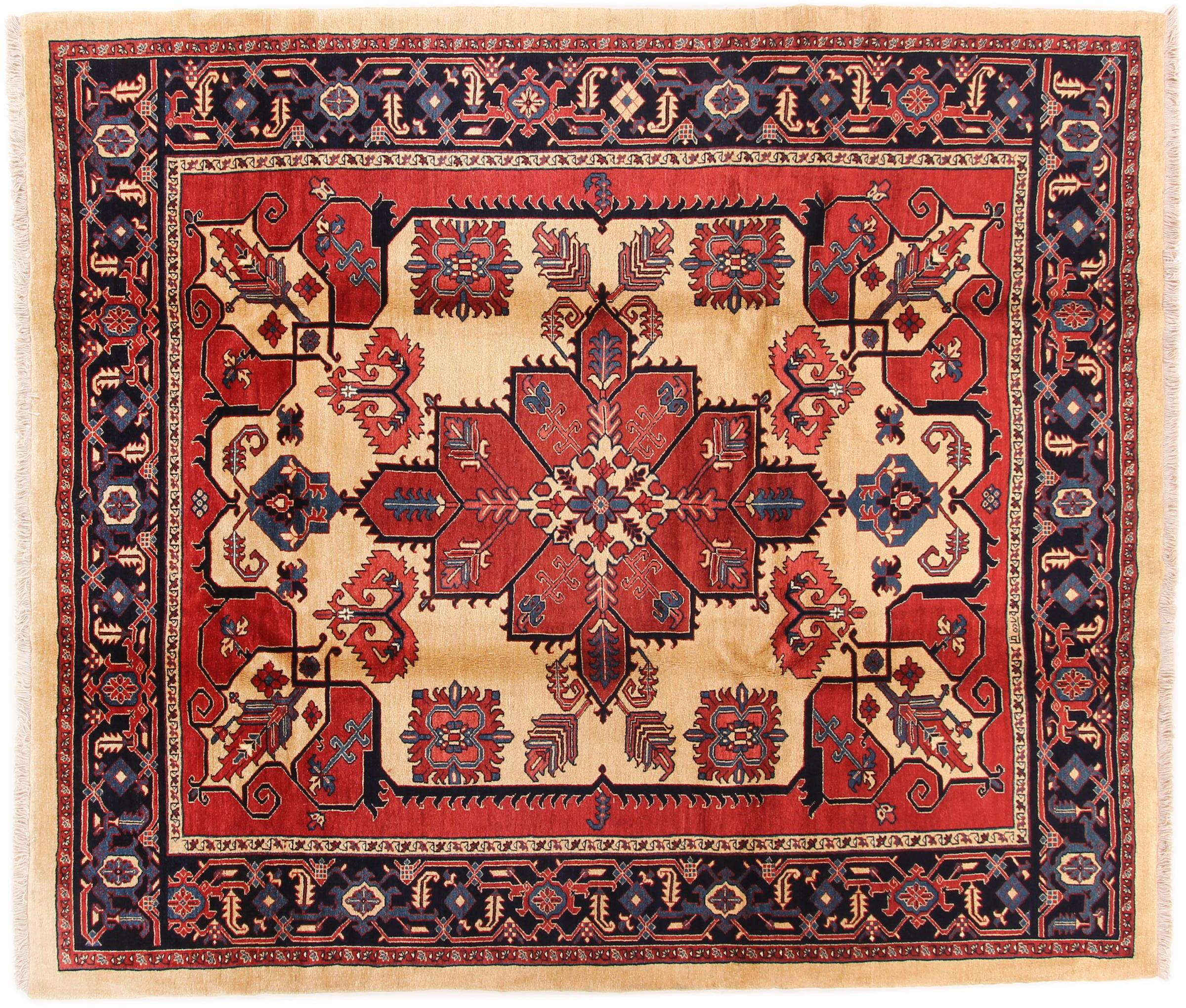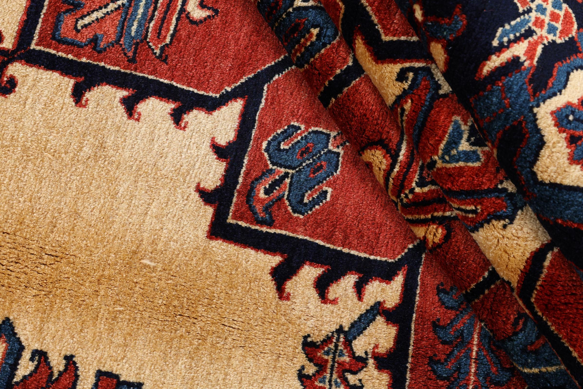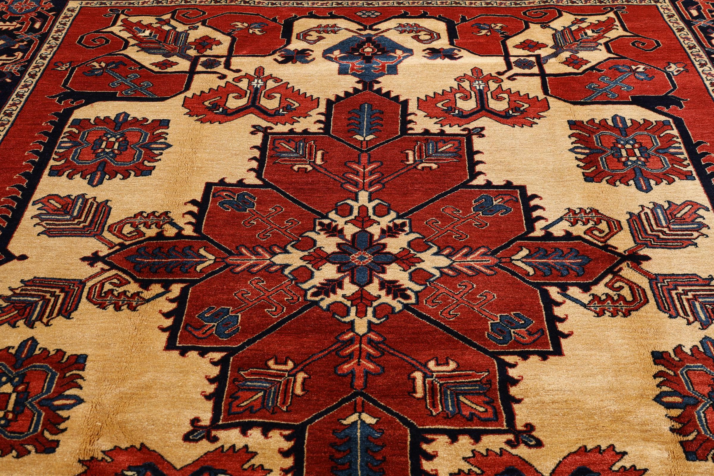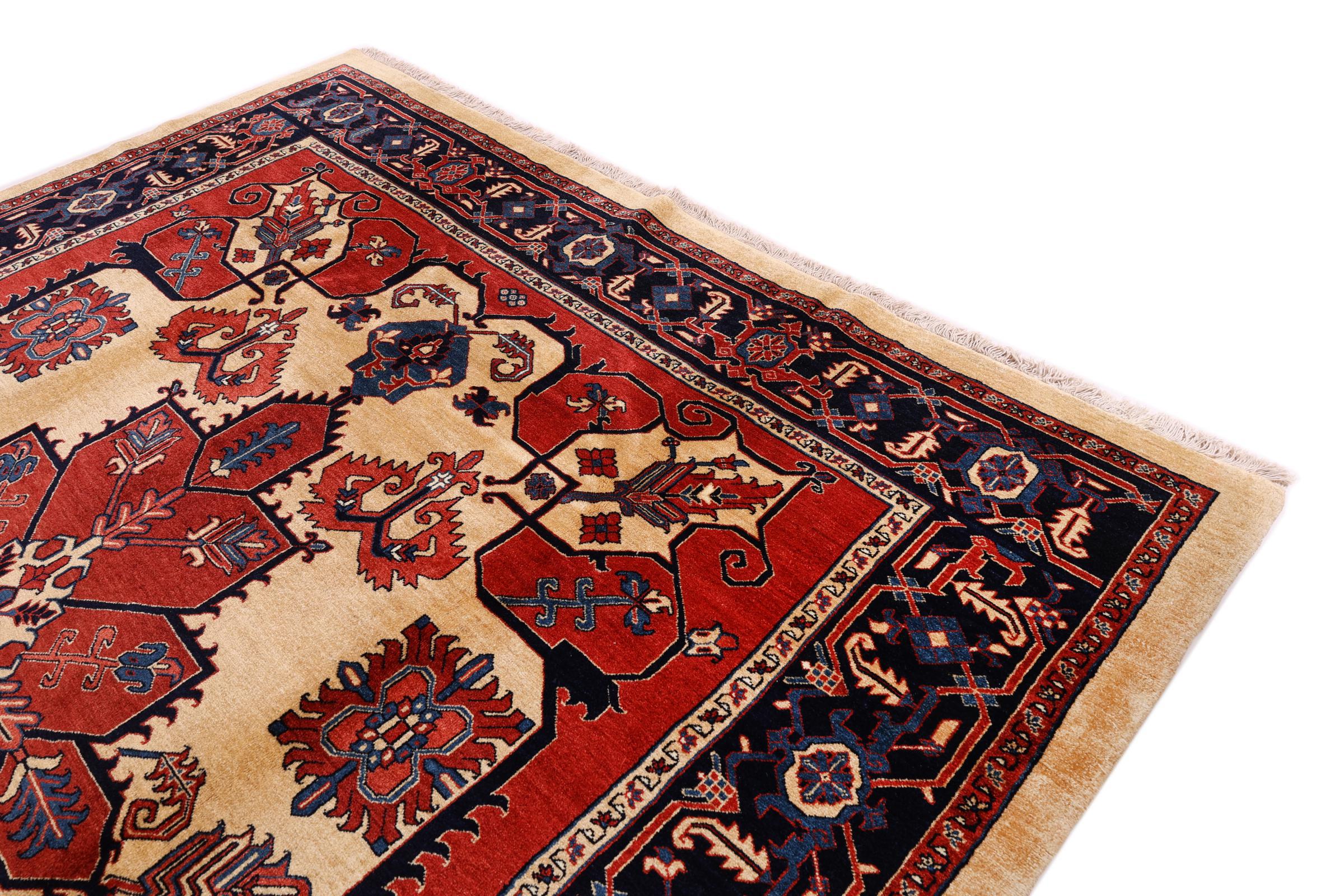 Dette Heriz-tæppe er et smukt eksempel på persisk tæppehåndværk. Dets rustikke design er et bevis på dets holdbarhed. Det er håndknyttet i byen Heriz, som ligger i nærheden af Tabriz i det nordvestlige Iran. Enhver, der er på udkig efter et persisk tæppe, der vil give glæde i lang tid og er meget moderne, vil elske dette Heriz. Heriz-tæppernes ornamenter er ekstremt populære i dag og ses som meget moderne. Du vil aldrig opgive et tæppe som dette igen.