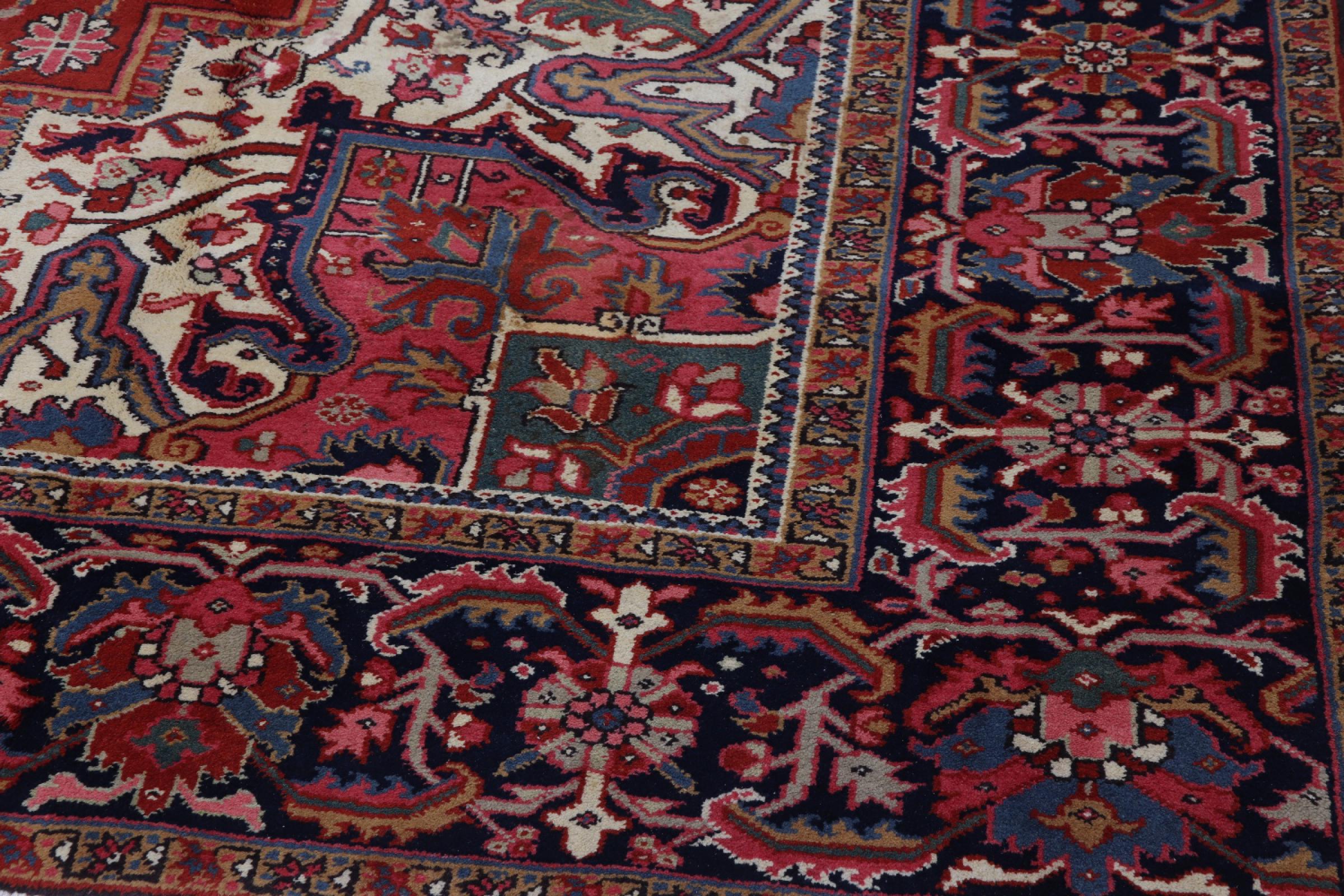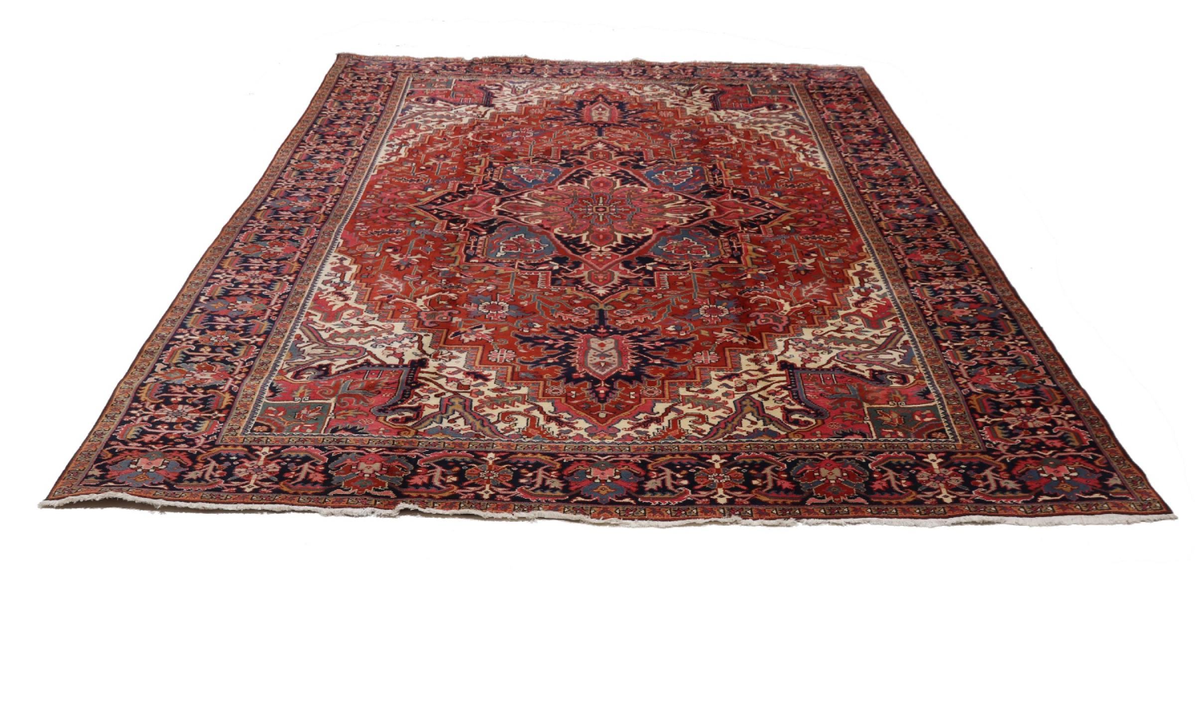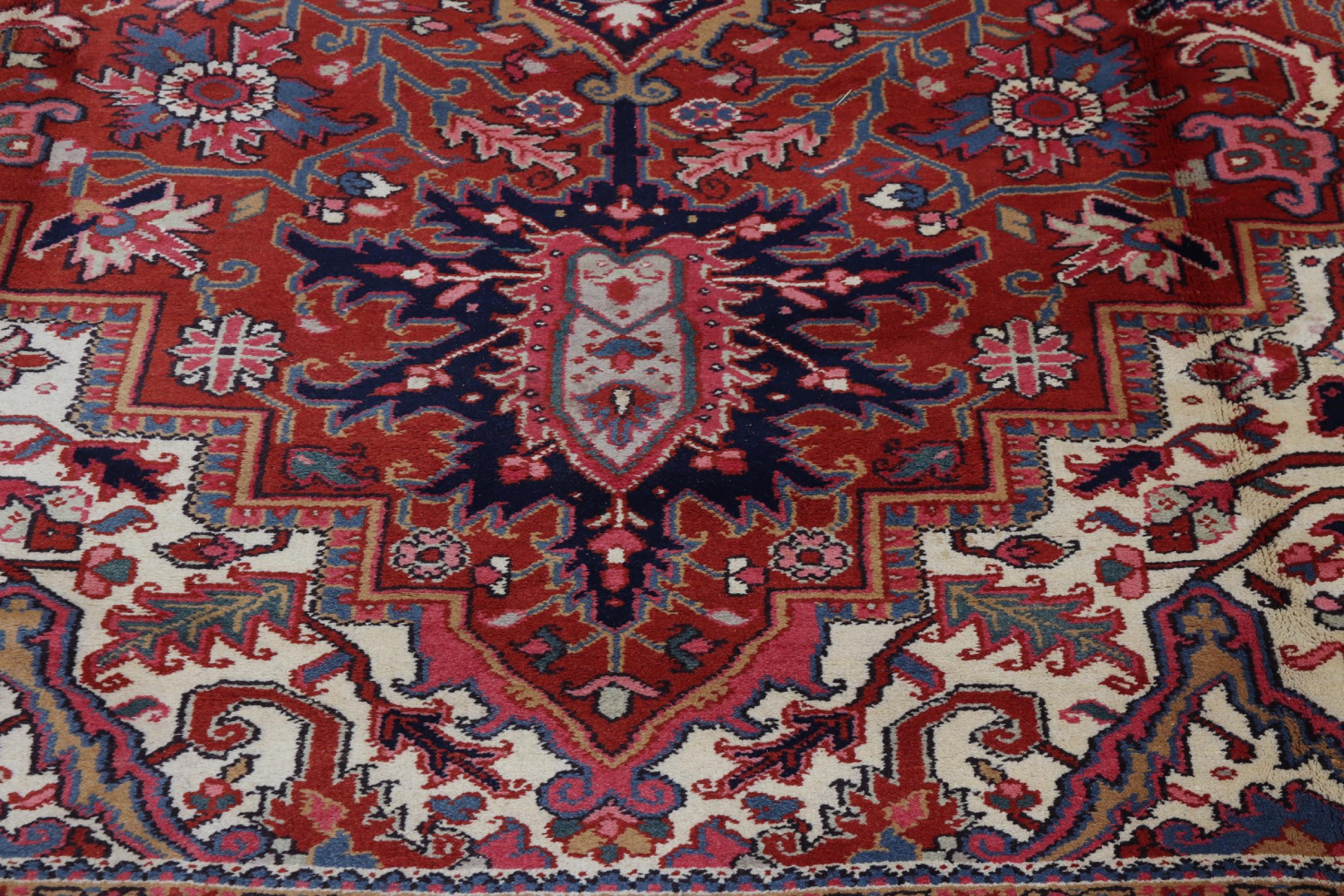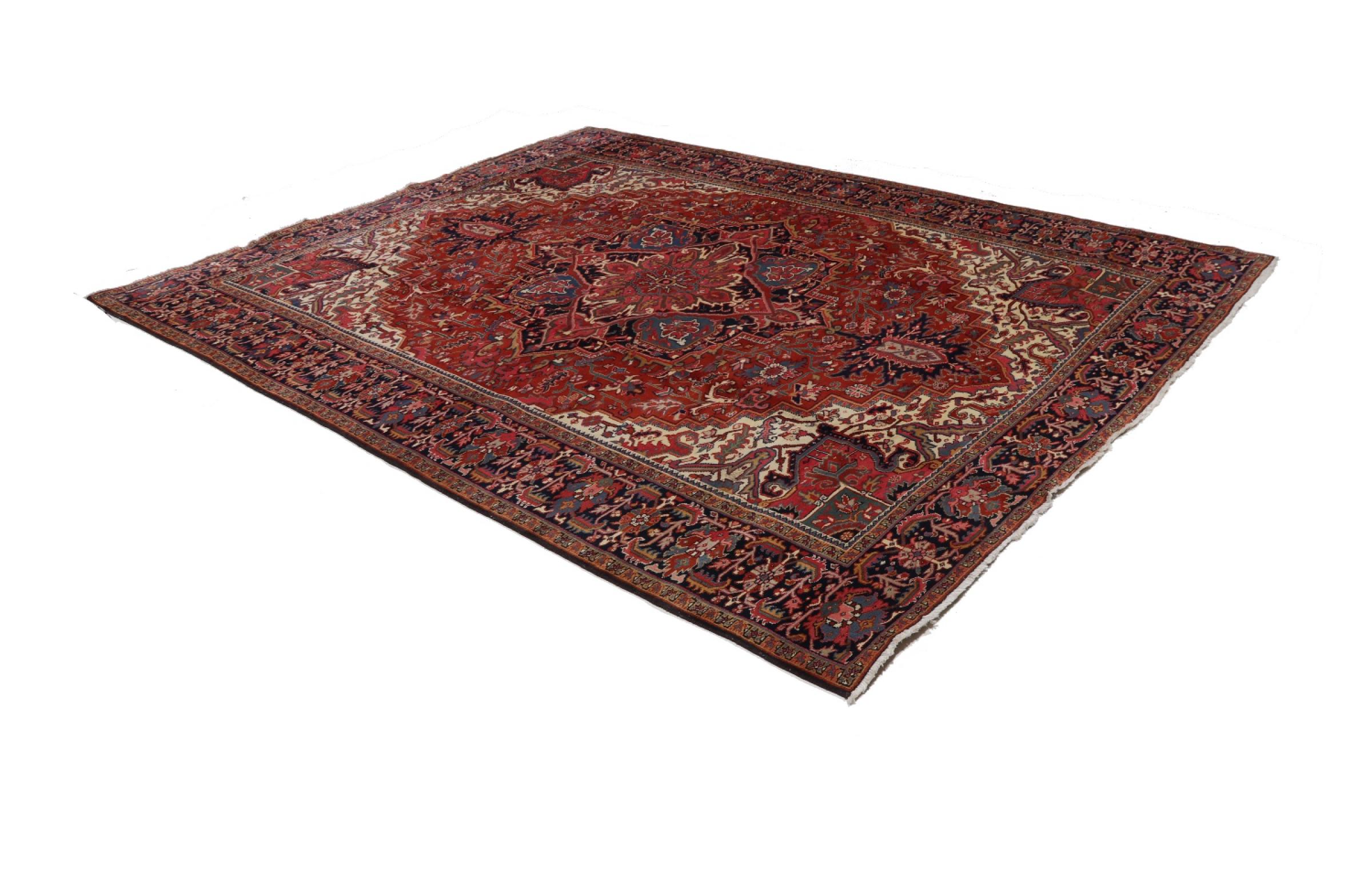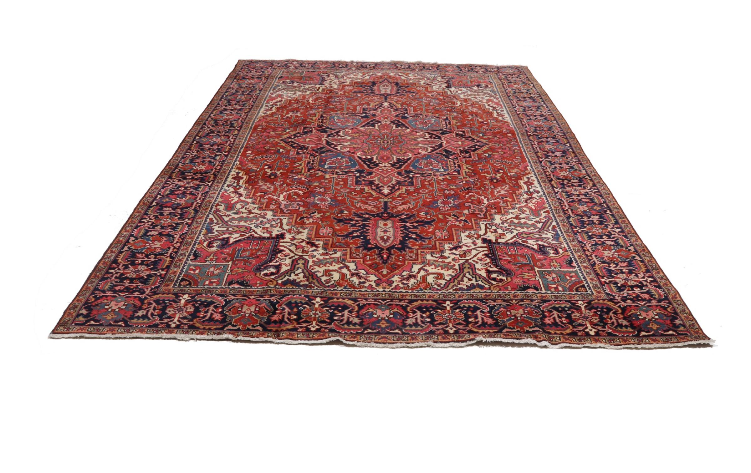 Dette Heriz-tæppe er et smukt eksempel på persisk tæppehåndværk. Dets rustikke design er et bevis på dets holdbarhed. Det er håndknyttet i byen Heriz, som ligger i nærheden af Tabriz i det nordvestlige Iran. Enhver, der er på udkig efter et persisk tæppe, der vil give glæde i lang tid og er meget moderne, vil elske dette Heriz. Heriz-tæppernes ornamenter er ekstremt populære i dag og ses som meget moderne. Du vil aldrig opgive et tæppe som dette igen.