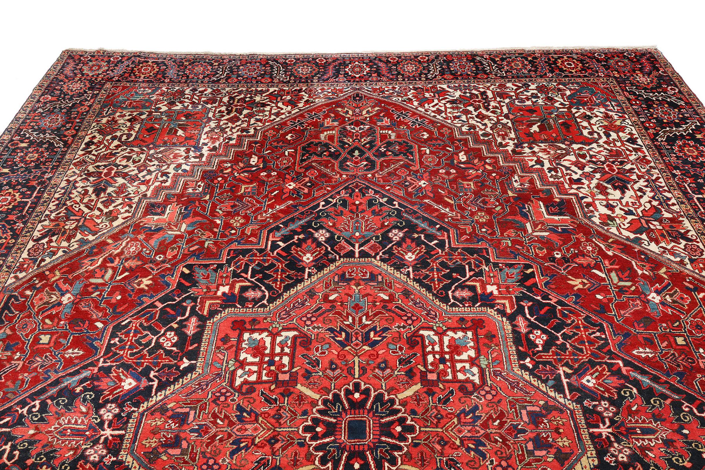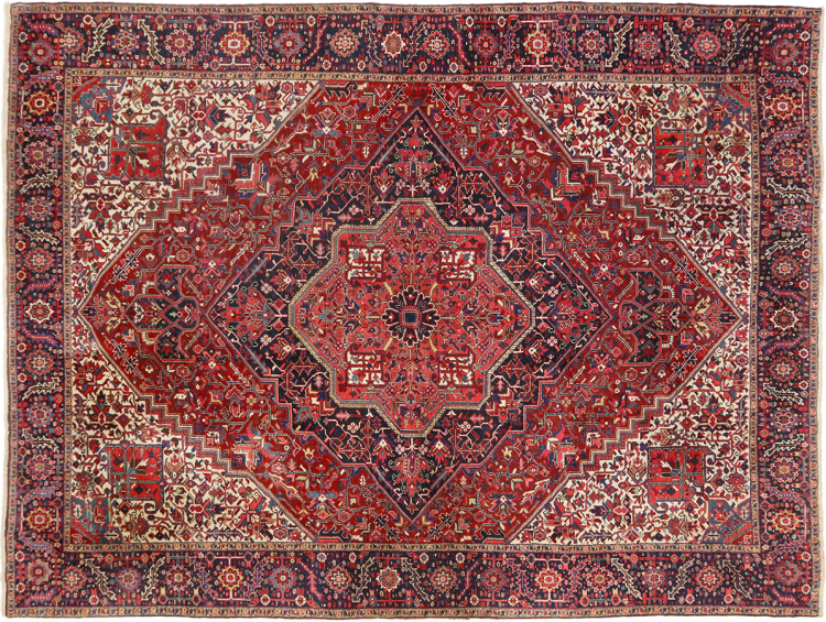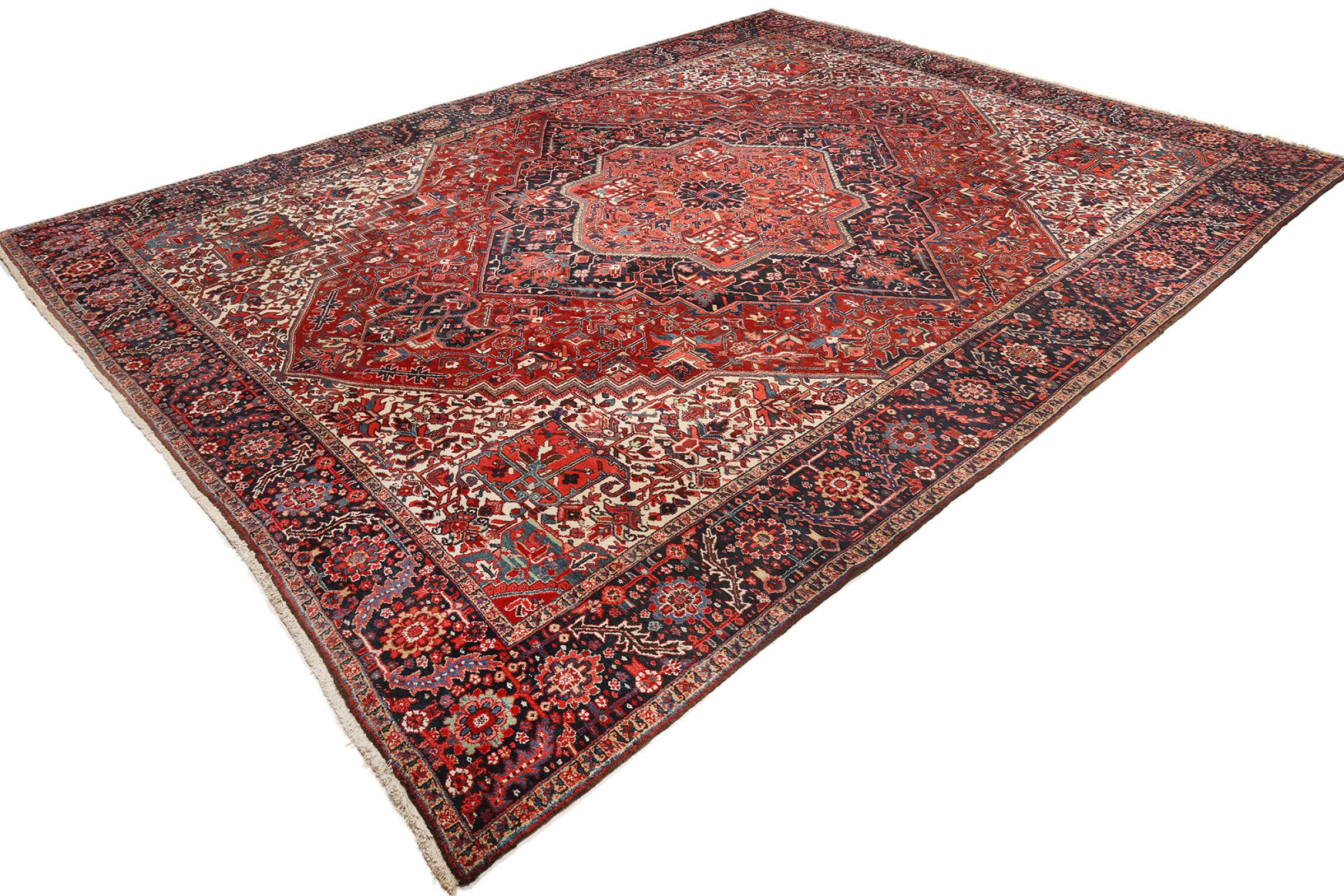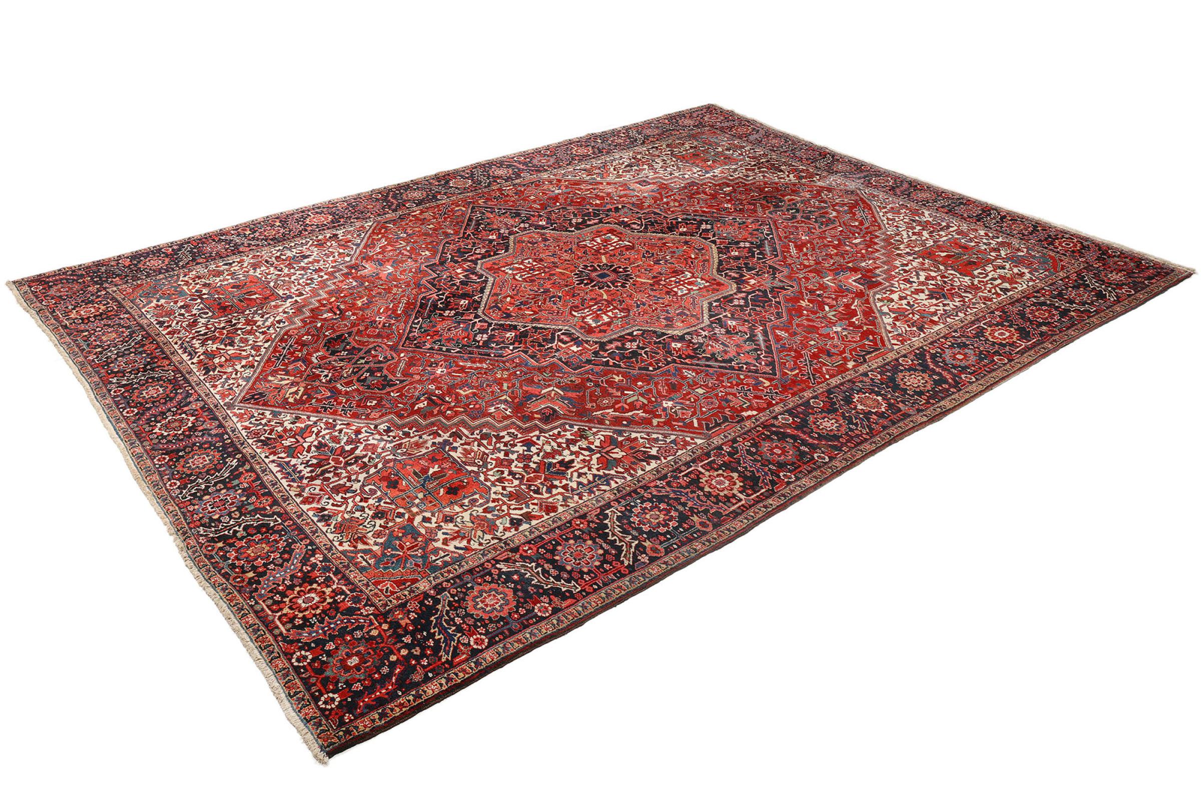Dette Heriz-tæppe er et smukt eksempel på persisk tæppehåndværk. Dets rustikke design er et bevis på dets holdbarhed. Det er håndknyttet i byen Heriz, som ligger i nærheden af Tabriz i det nordvestlige Iran. Enhver, der er på udkig efter et persisk tæppe, der vil give glæde i lang tid og er meget moderne, vil elske dette Heriz. Heriz-tæppernes ornamenter er ekstremt populære i dag og ses som meget moderne. Du vil aldrig opgive et tæppe som dette igen.
