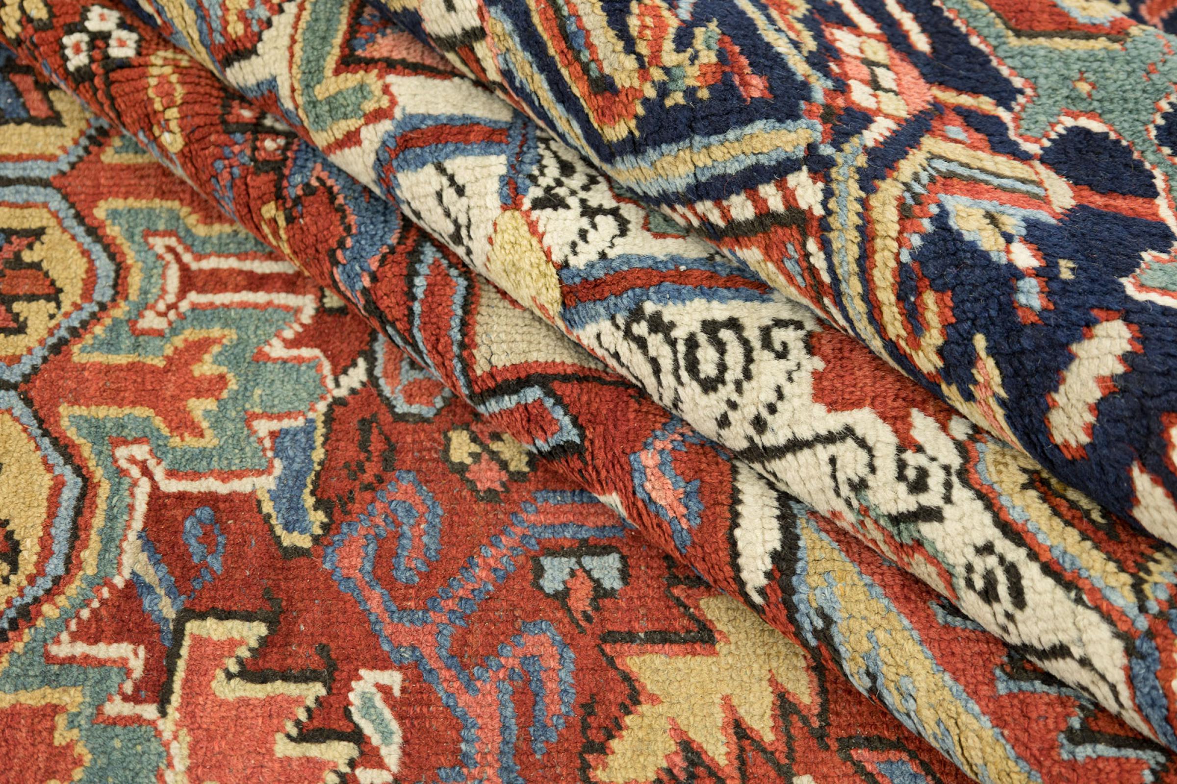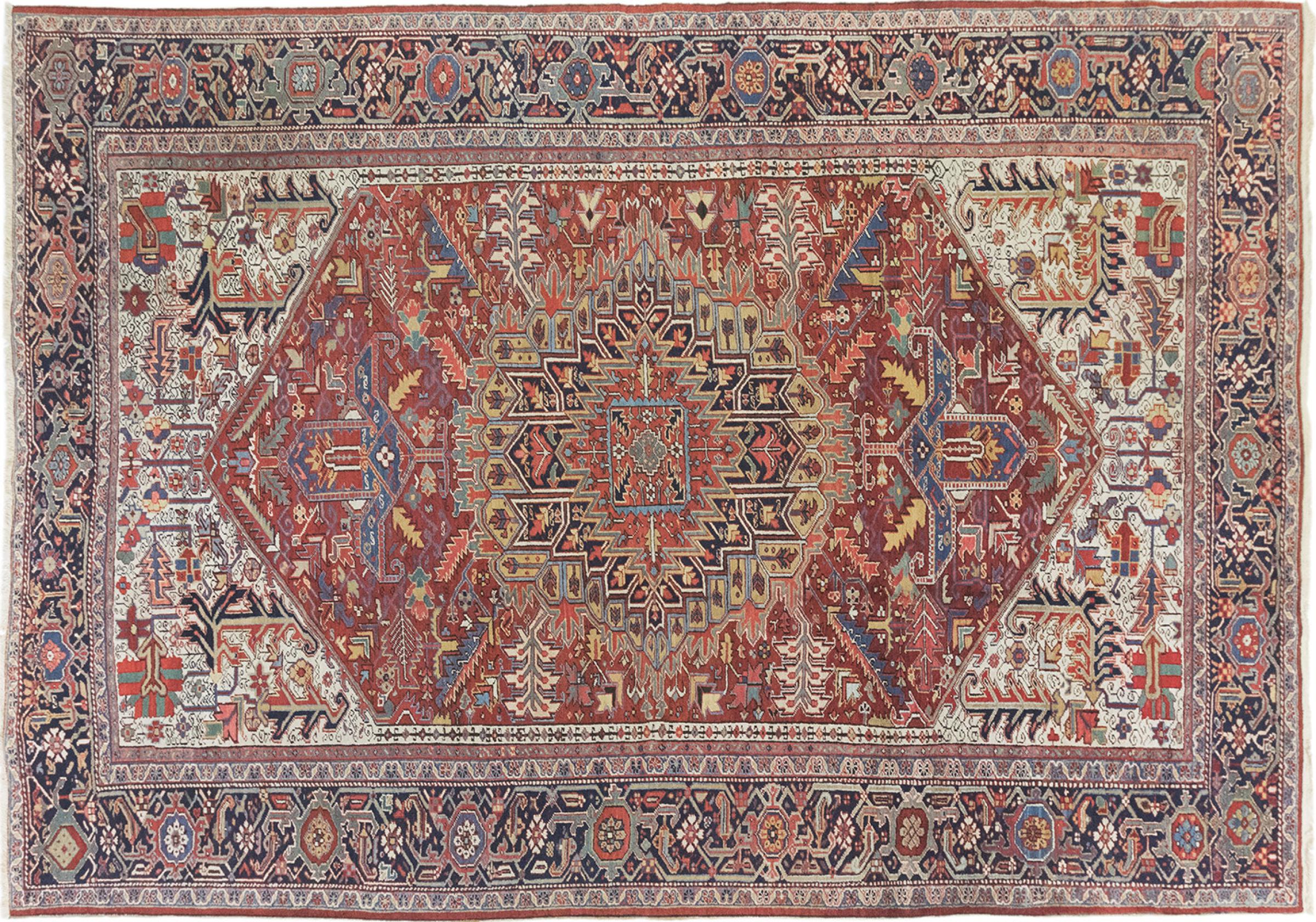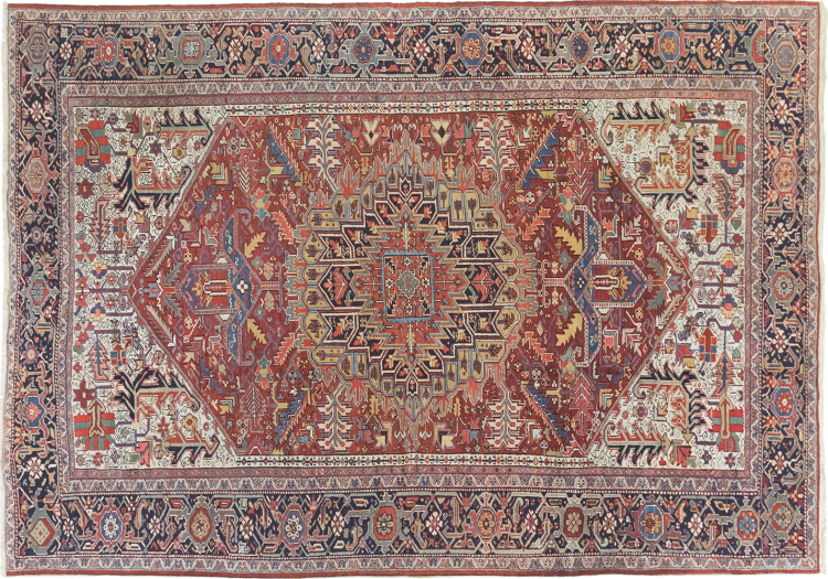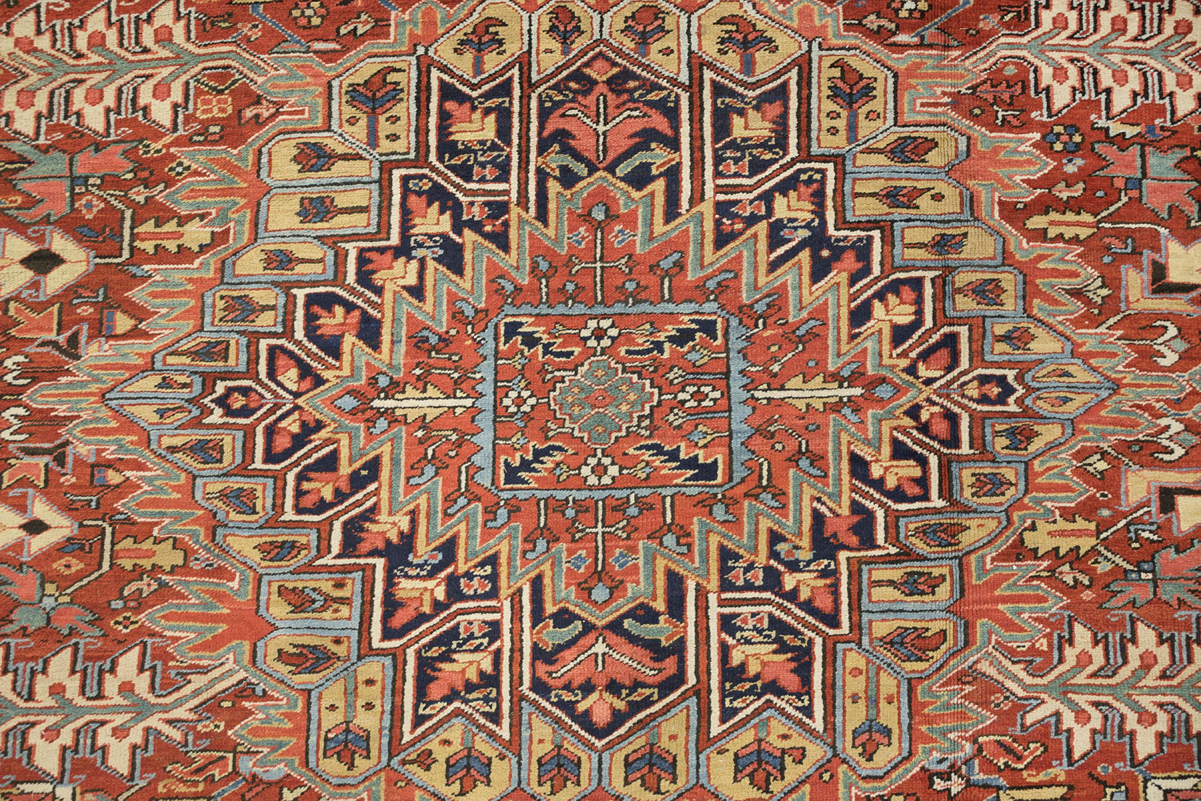 Dette Heriz-tæppe er et smukt eksempel på persisk tæppehåndværk. Dets rustikke design er et bevis på dets holdbarhed. Det er håndknyttet i byen Heriz, som ligger i nærheden af Tabriz i det nordvestlige Iran. Enhver, der er på udkig efter et persisk tæppe, der vil give glæde i lang tid og er meget moderne, vil elske dette Heriz. Heriz-tæppernes ornamenter er ekstremt populære i dag og ses som meget moderne. Du vil aldrig opgive et tæppe som dette igen.