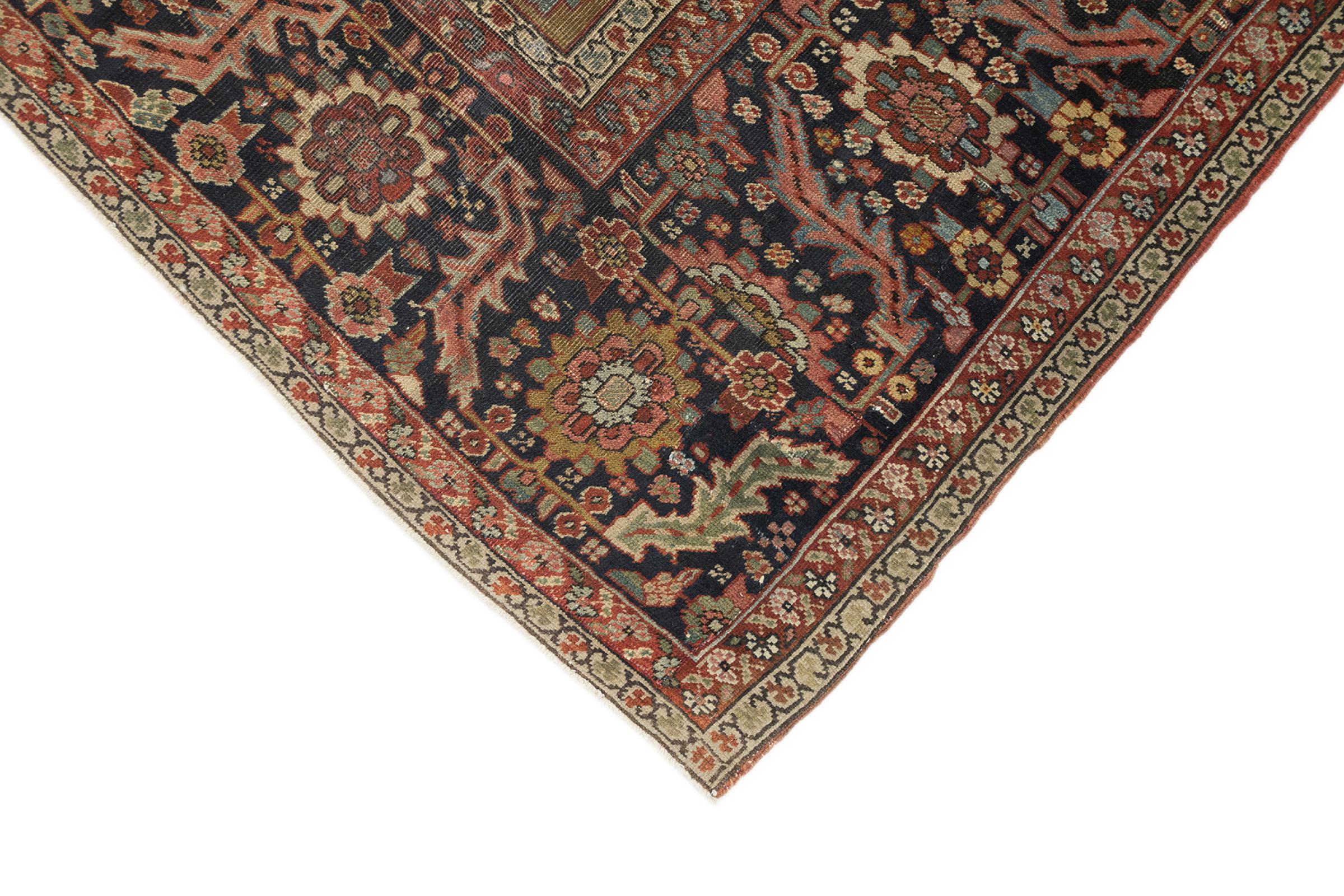 Dette Heriz-tæppe er et smukt eksempel på persisk tæppehåndværk. Dets rustikke design er et bevis på dets holdbarhed. Det er håndknyttet i byen Heriz, som ligger i nærheden af Tabriz i det nordvestlige Iran. Enhver, der er på udkig efter et persisk tæppe, der vil give glæde i lang tid og er meget moderne, vil elske dette Heriz. Heriz-tæppernes ornamenter er ekstremt populære i dag og ses som meget moderne. Du vil aldrig opgive et tæppe som dette igen.