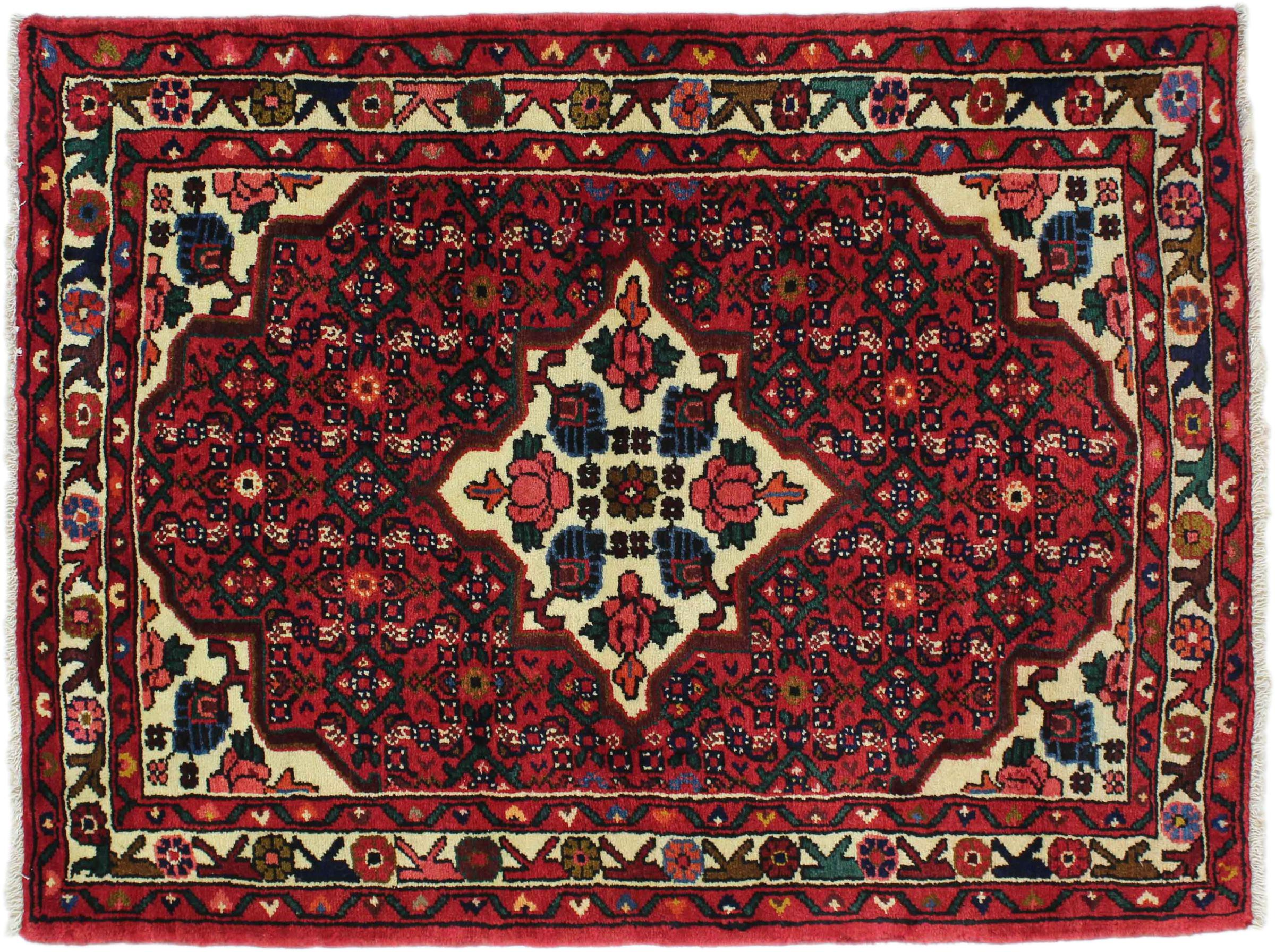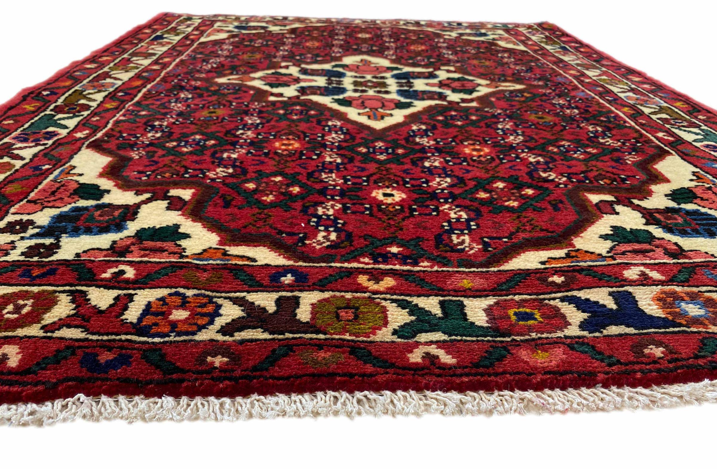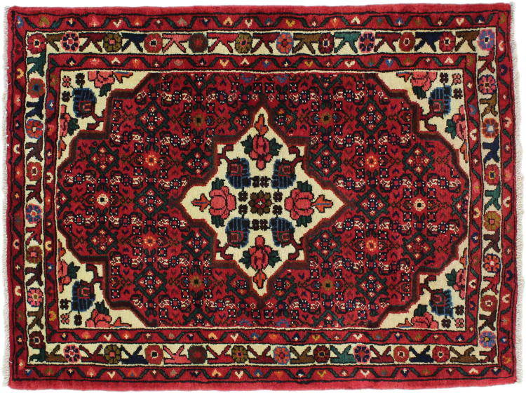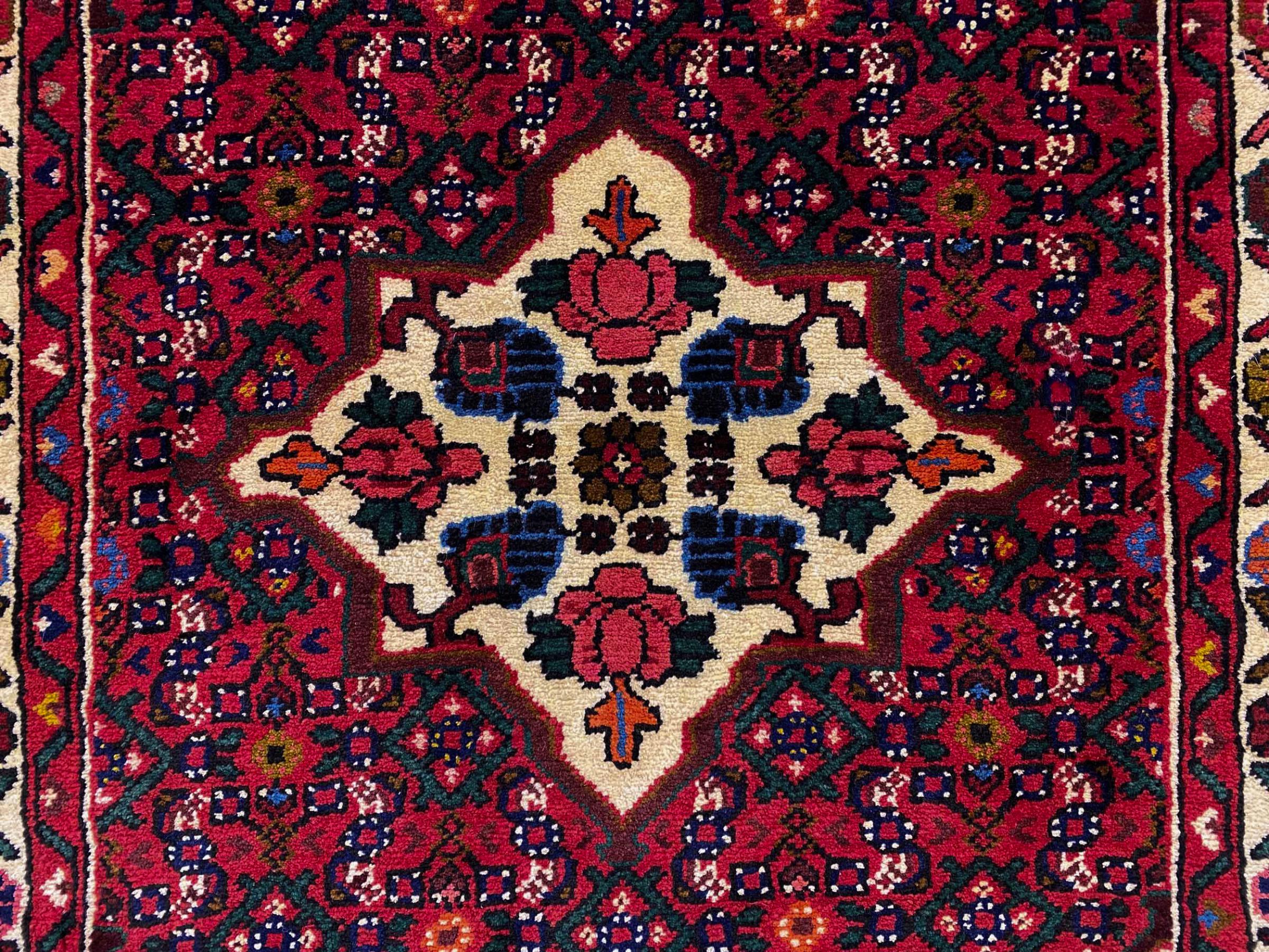 Denne håndknyttede Hoseinabad tilbyder traditionel persisk tæppekunst. Det blev håndlavet i den lille by Hoseinabad nær Hamadan. Den høje kvalitet af tæpperne fra denne region forbløffer. Føl et stykke af Østen under dine fødder med denne smukke Hoseinabad tæppe.