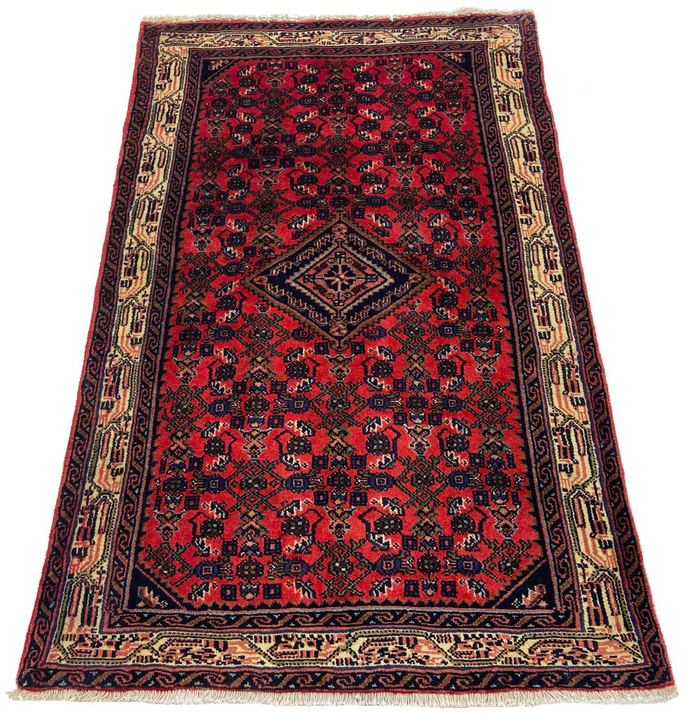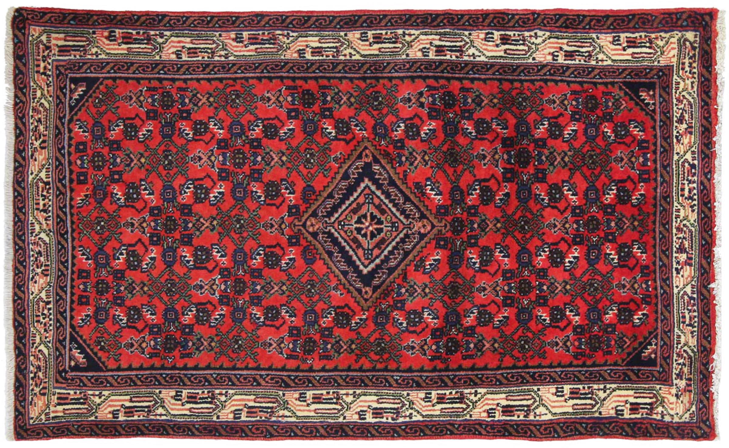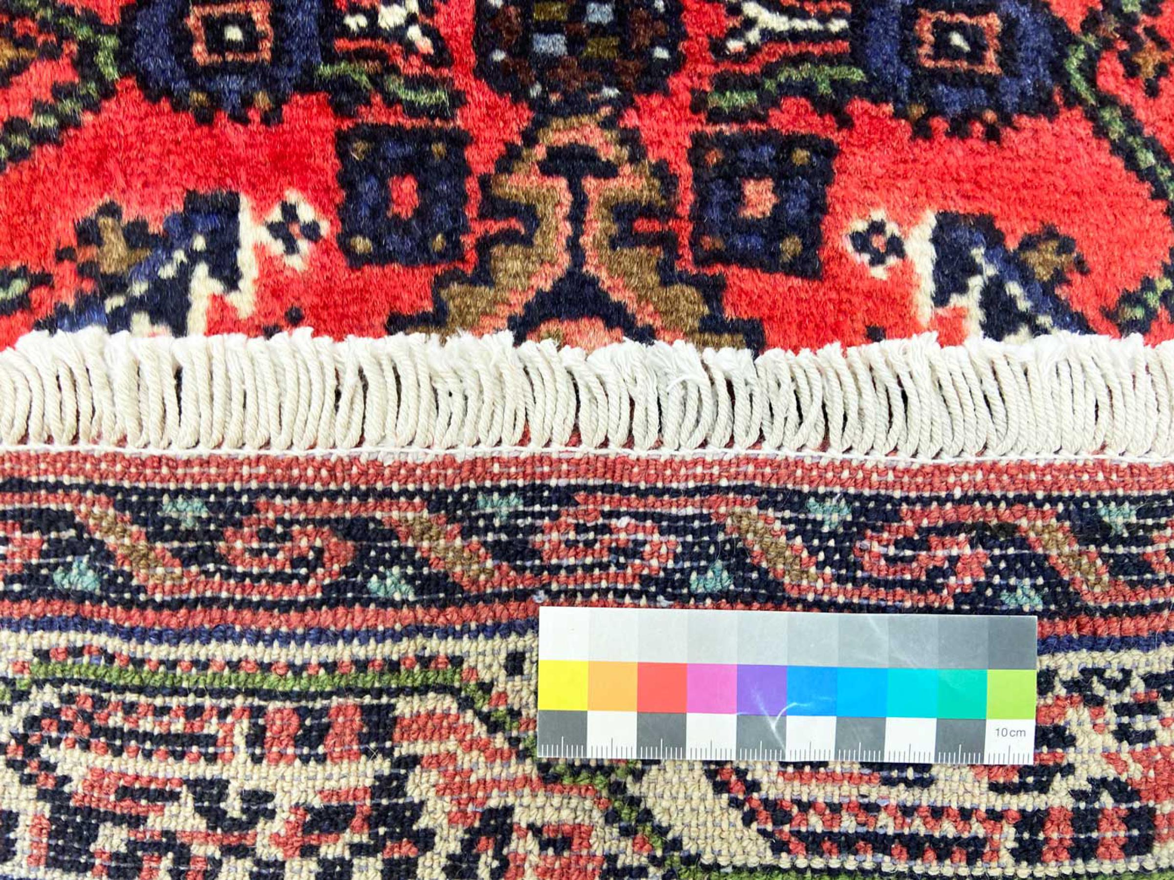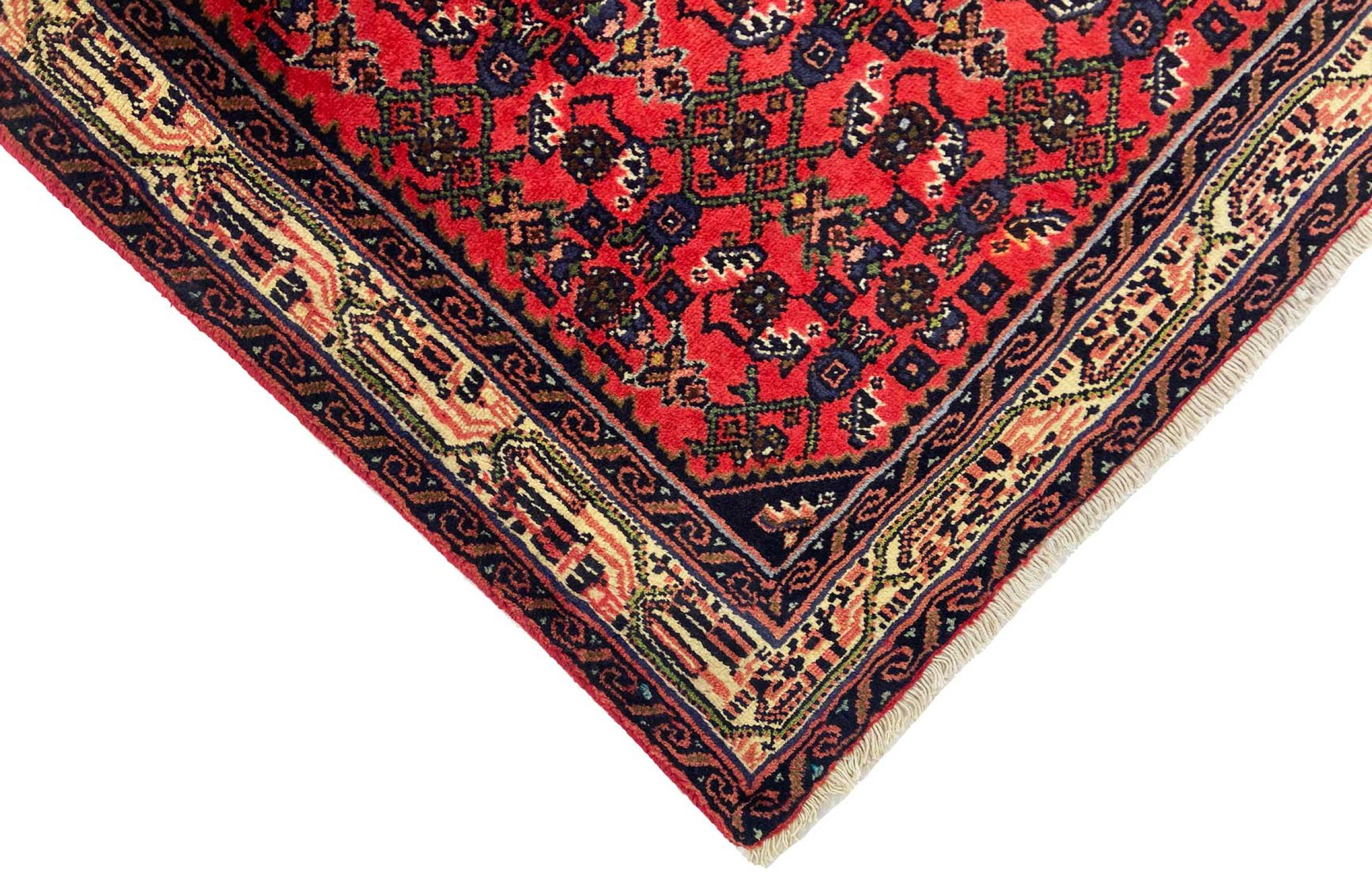 Denne håndknyttede Hoseinabad tilbyder traditionel persisk tæppekunst. Det blev håndlavet i den lille by Hoseinabad nær Hamadan. Den høje kvalitet af tæpperne fra denne region forbløffer. Føl et stykke af Østen under dine fødder med denne smukke Hoseinabad tæppe.