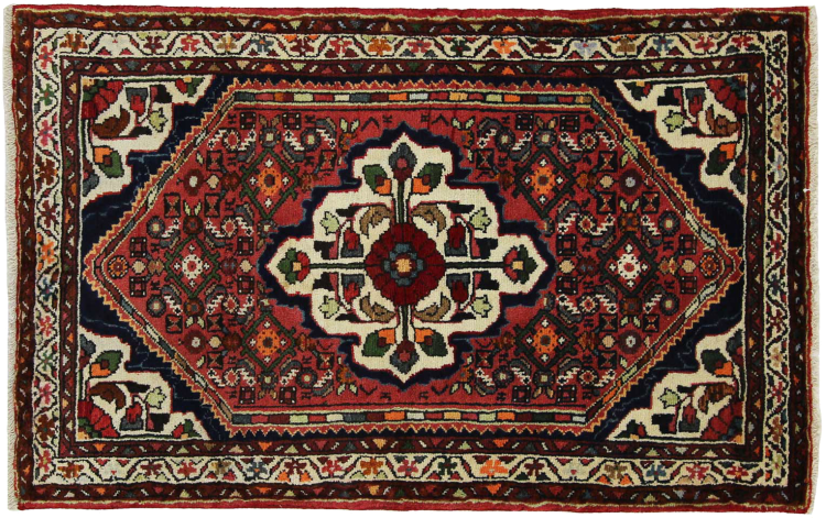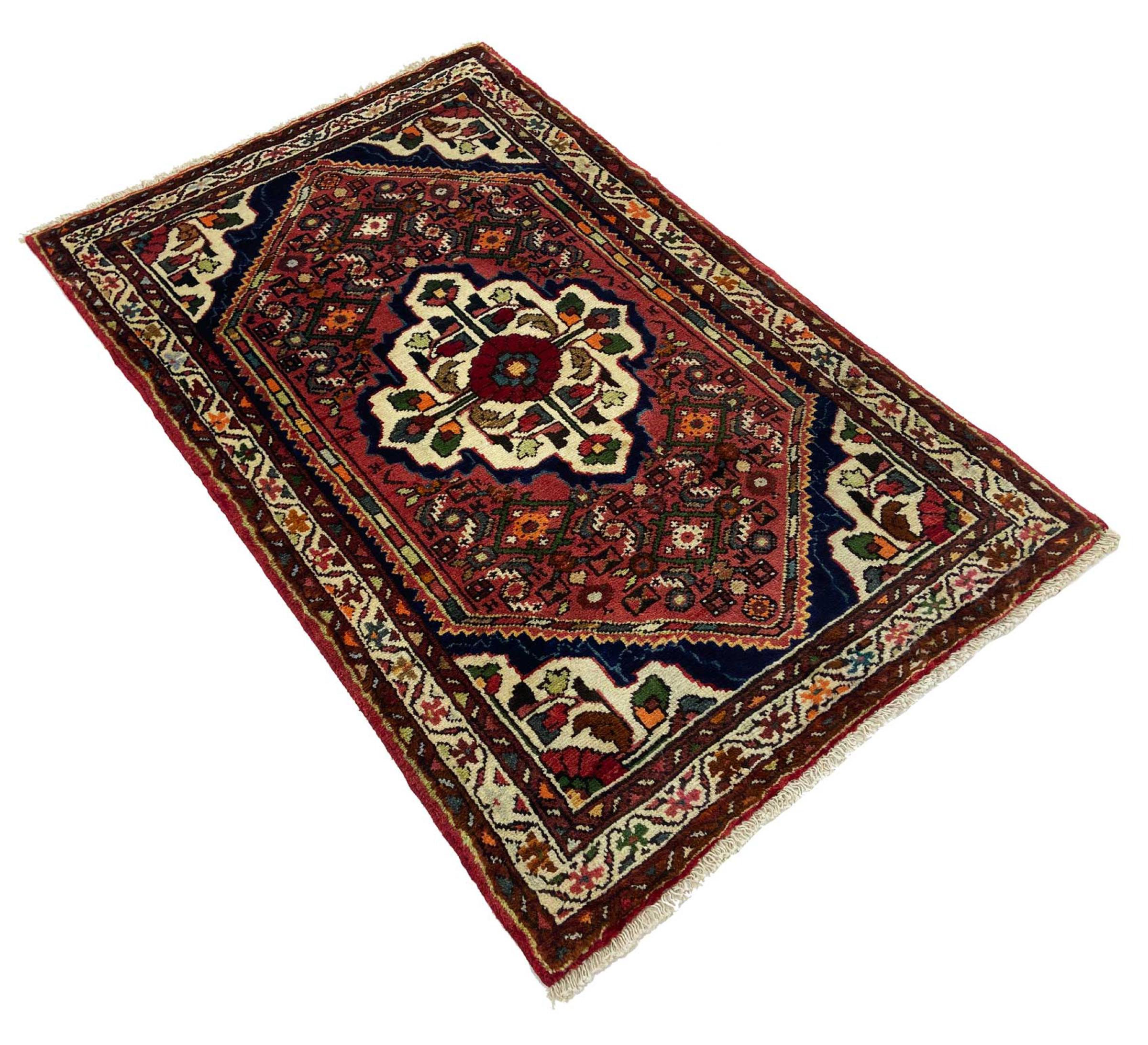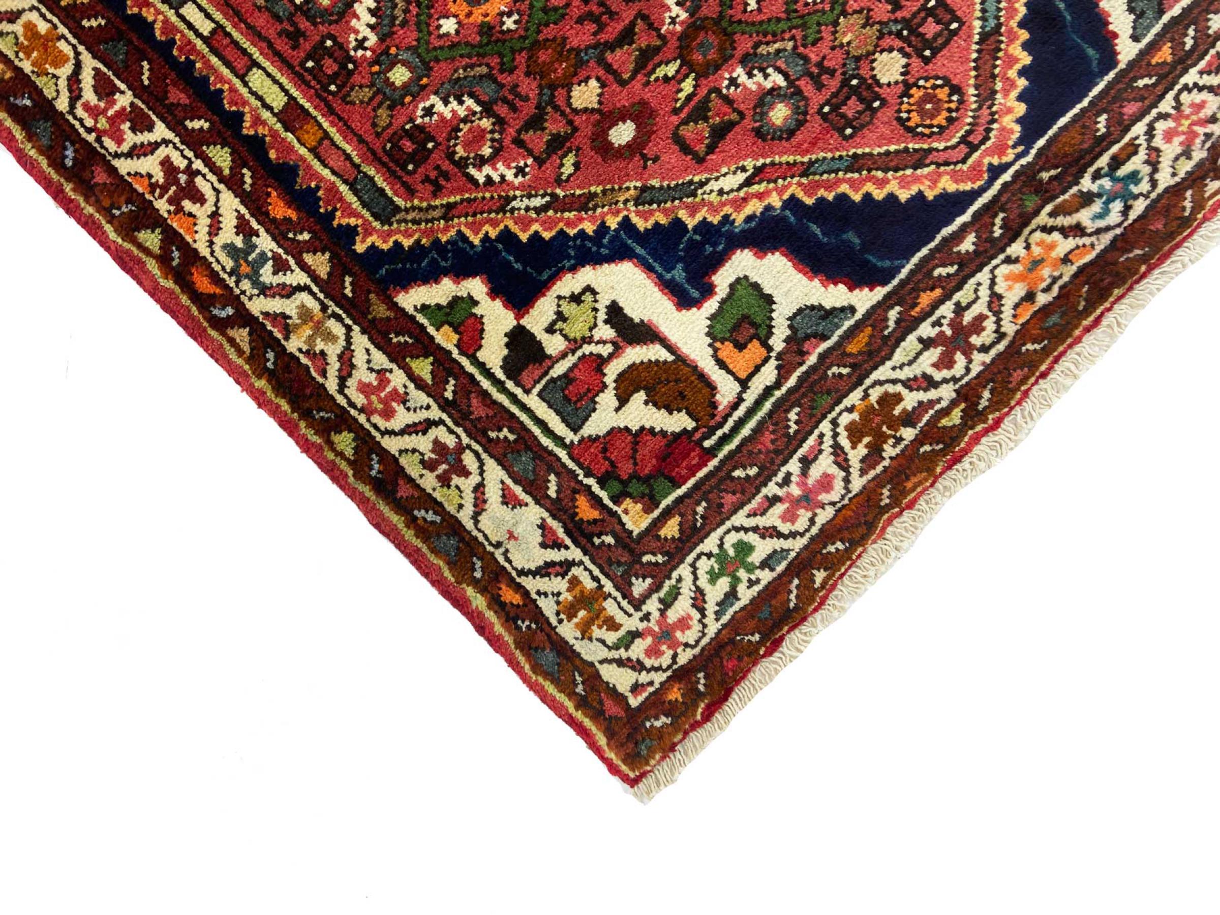 Denne håndknyttede Hoseinabad tilbyder traditionel persisk tæppekunst. Det blev håndlavet i den lille by Hoseinabad nær Hamadan. Den høje kvalitet af tæpperne fra denne region forbløffer. Føl et stykke af Østen under dine fødder med denne smukke Hoseinabad tæppe.