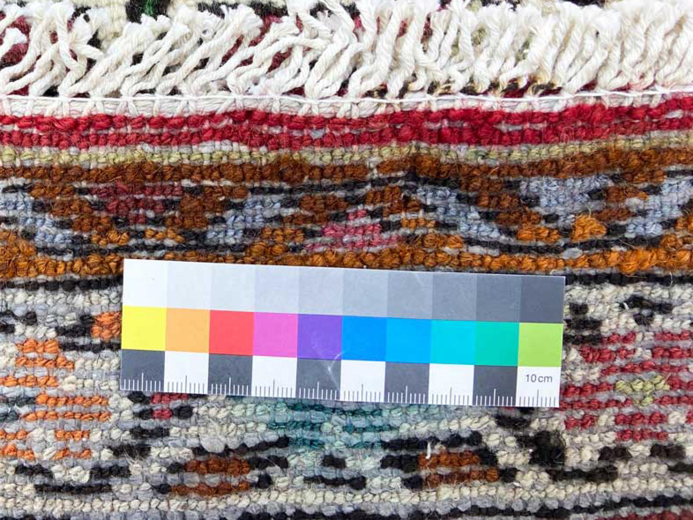 Dette tæppe består af håndspundet fåruld af højeste kvalitet. Især i Iran (tidligere Persien), Afghanistan og Pakistan spindes uld med hånden, før tæppet faktisk knuses. Uld har bevist sig som et naturligt og ekstremt slidstærkt materiale gennem århundreder. Det har blandt andet snavsafvisende og varmeisolerende egenskaber. Samtidig er uld uforlignelig blød og bringer en naturlig glans.