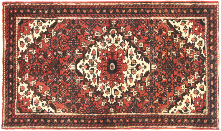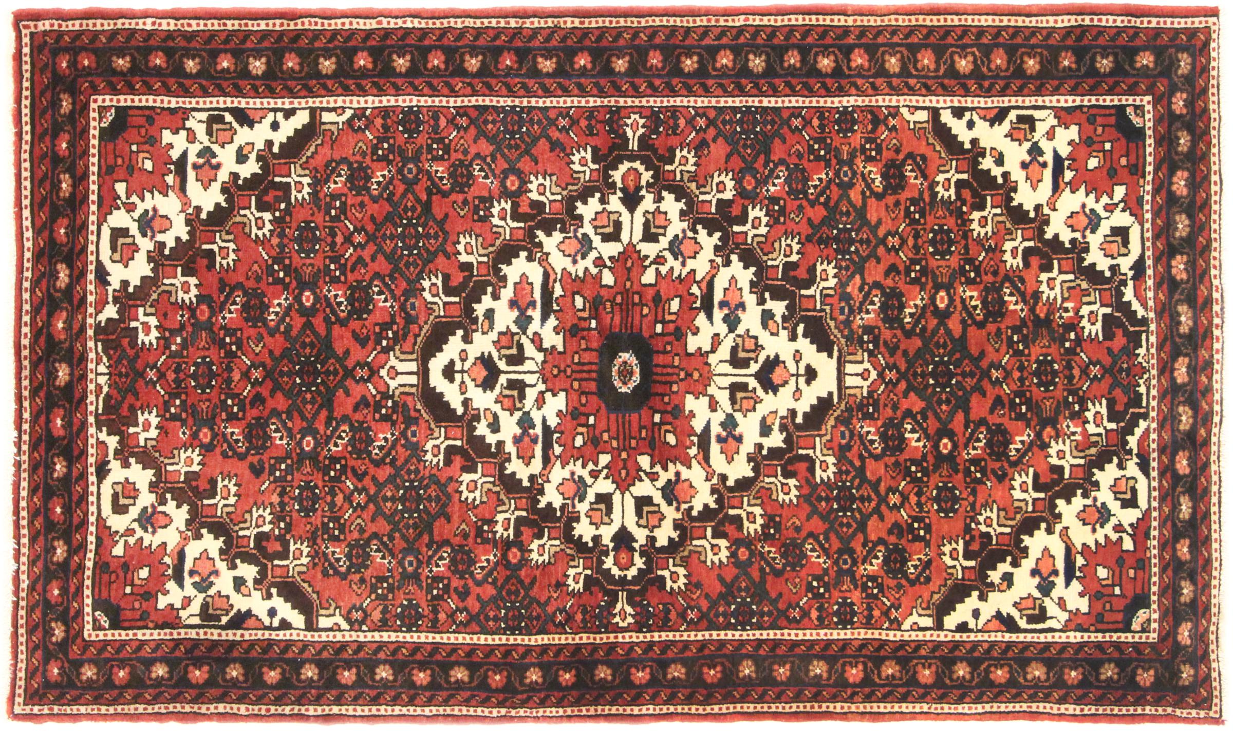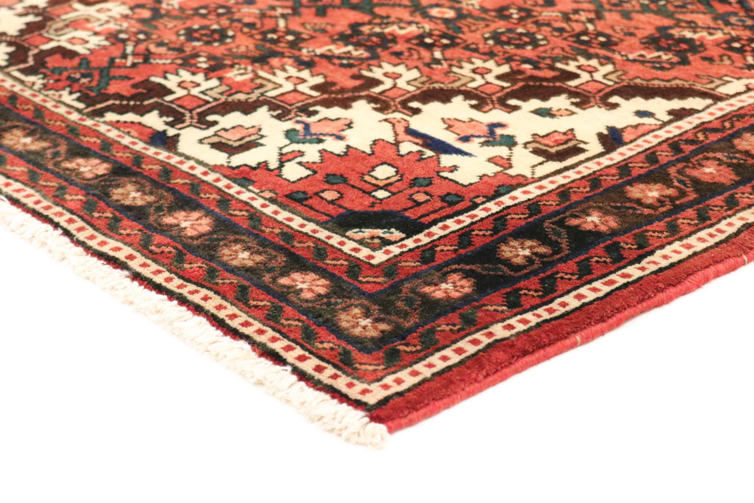 Denne håndknyttede Hoseinabad tilbyder traditionel persisk tæppekunst. Det blev håndlavet i den lille by Hoseinabad nær Hamadan. Den høje kvalitet af tæpperne fra denne region forbløffer. Føl et stykke af Østen under dine fødder med denne smukke Hoseinabad tæppe.