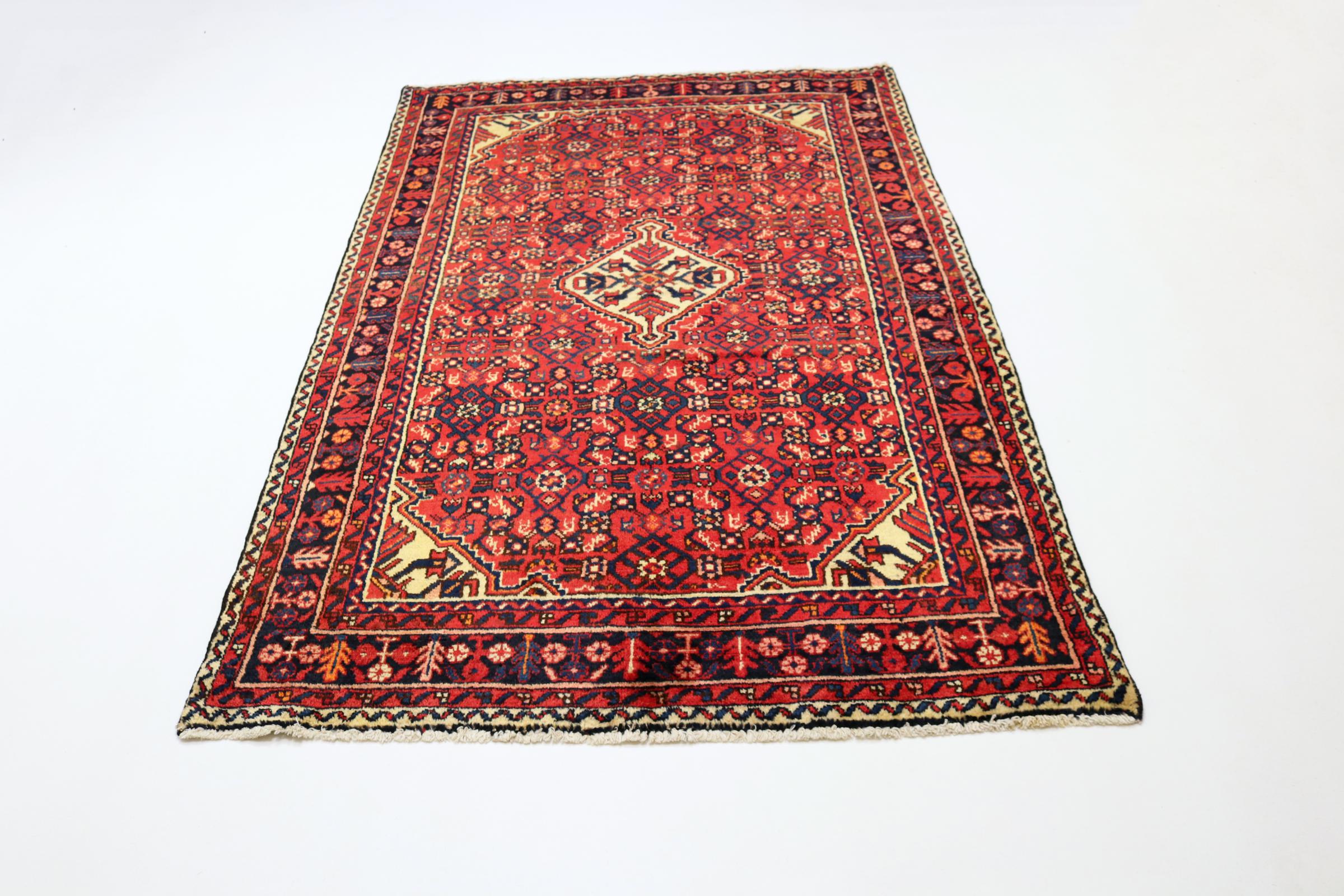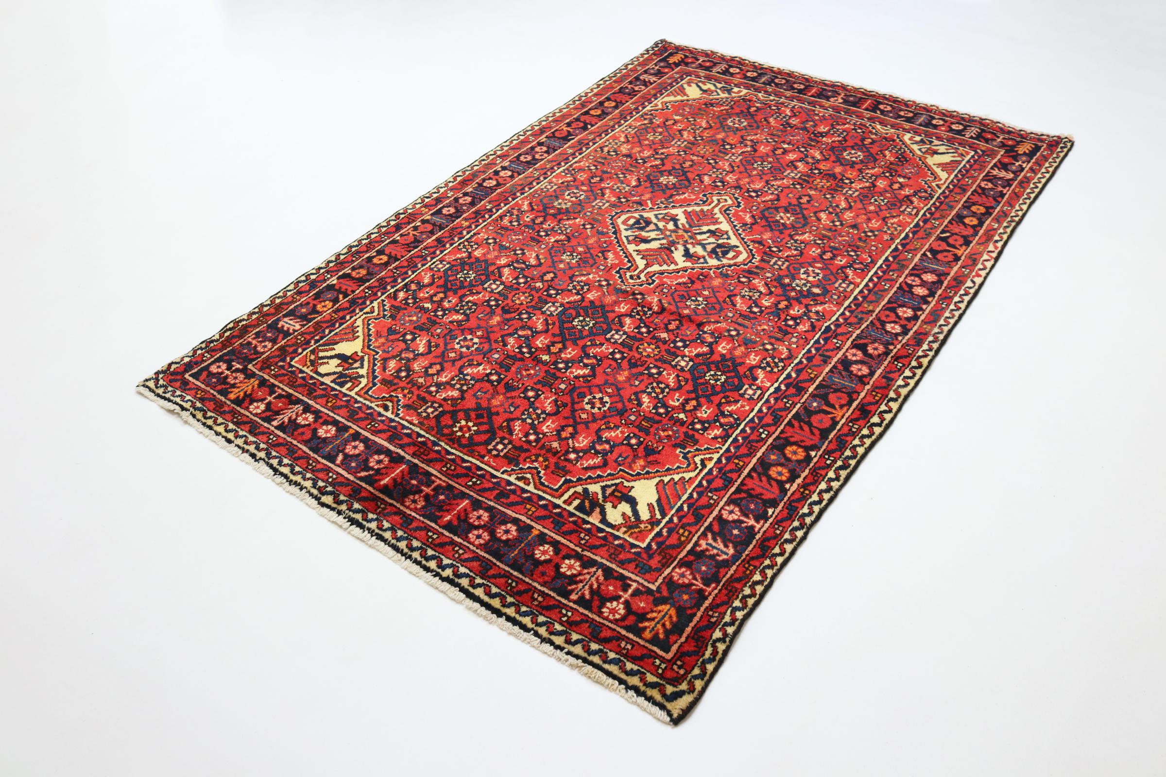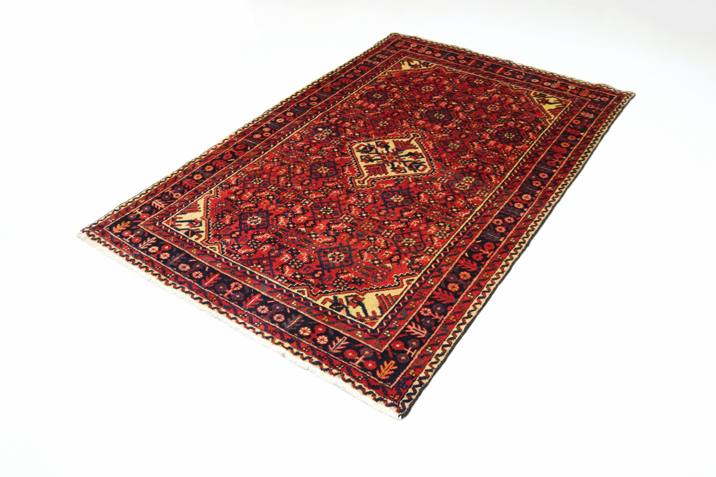 Denne håndknyttede Hoseinabad tilbyder traditionel persisk tæppekunst. Det blev håndlavet i den lille by Hoseinabad nær Hamadan. Den høje kvalitet af tæpperne fra denne region forbløffer. Føl et stykke af Østen under dine fødder med denne smukke Hoseinabad tæppe.