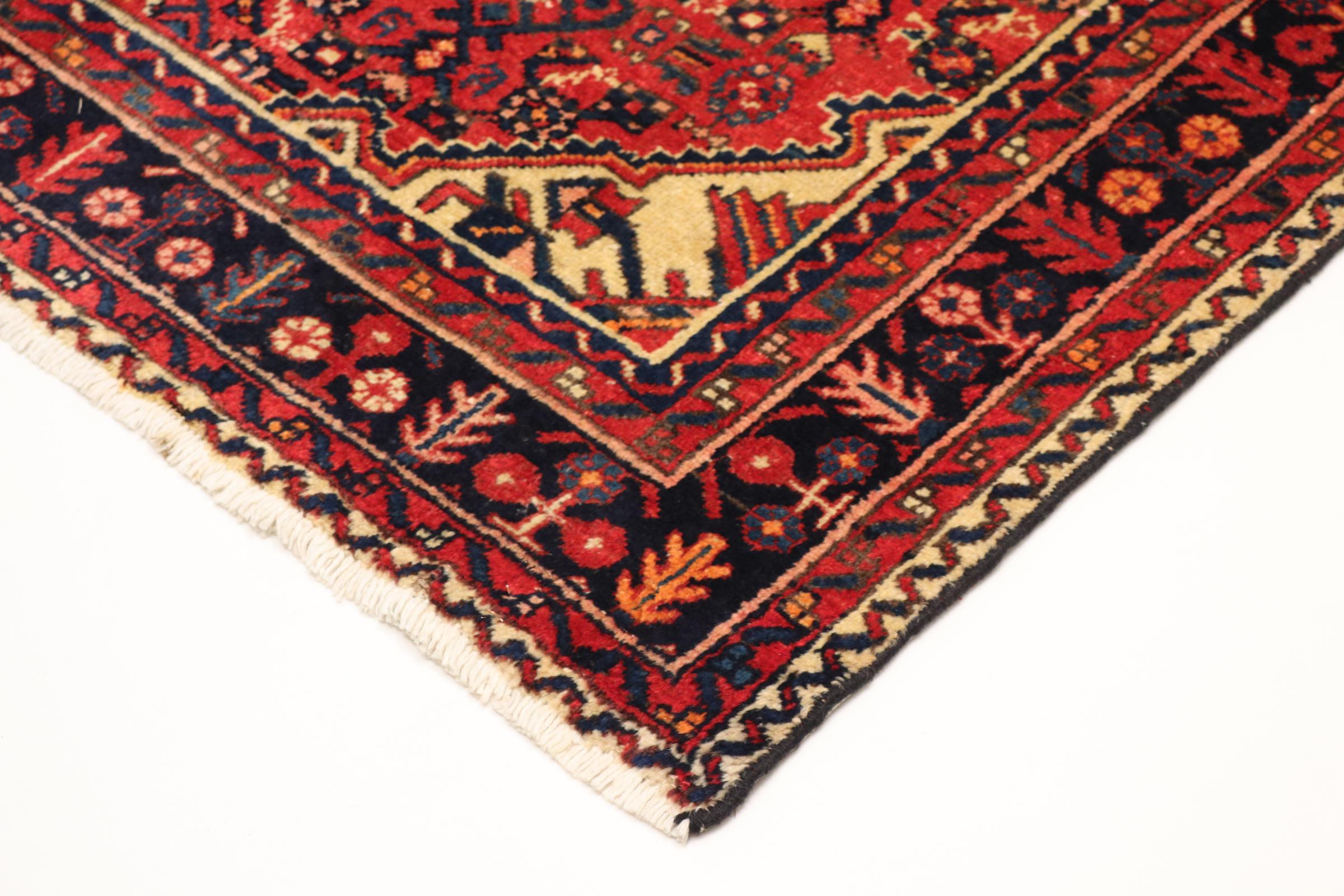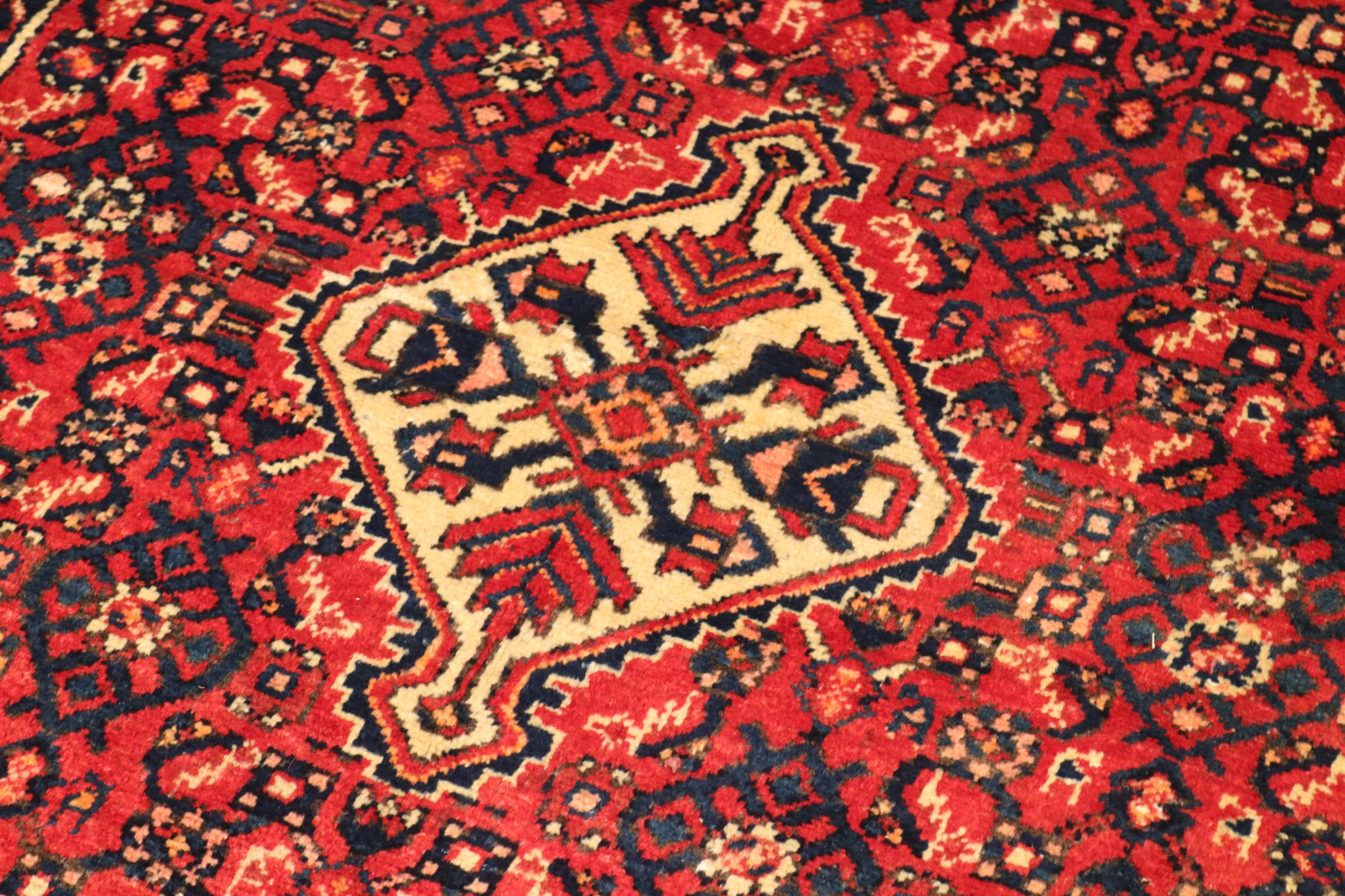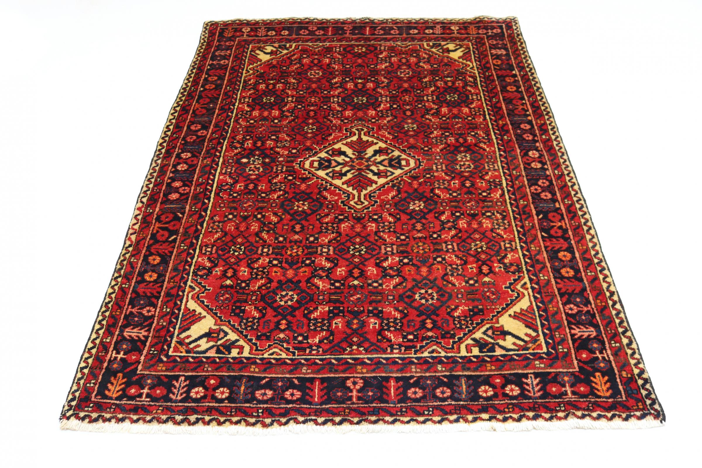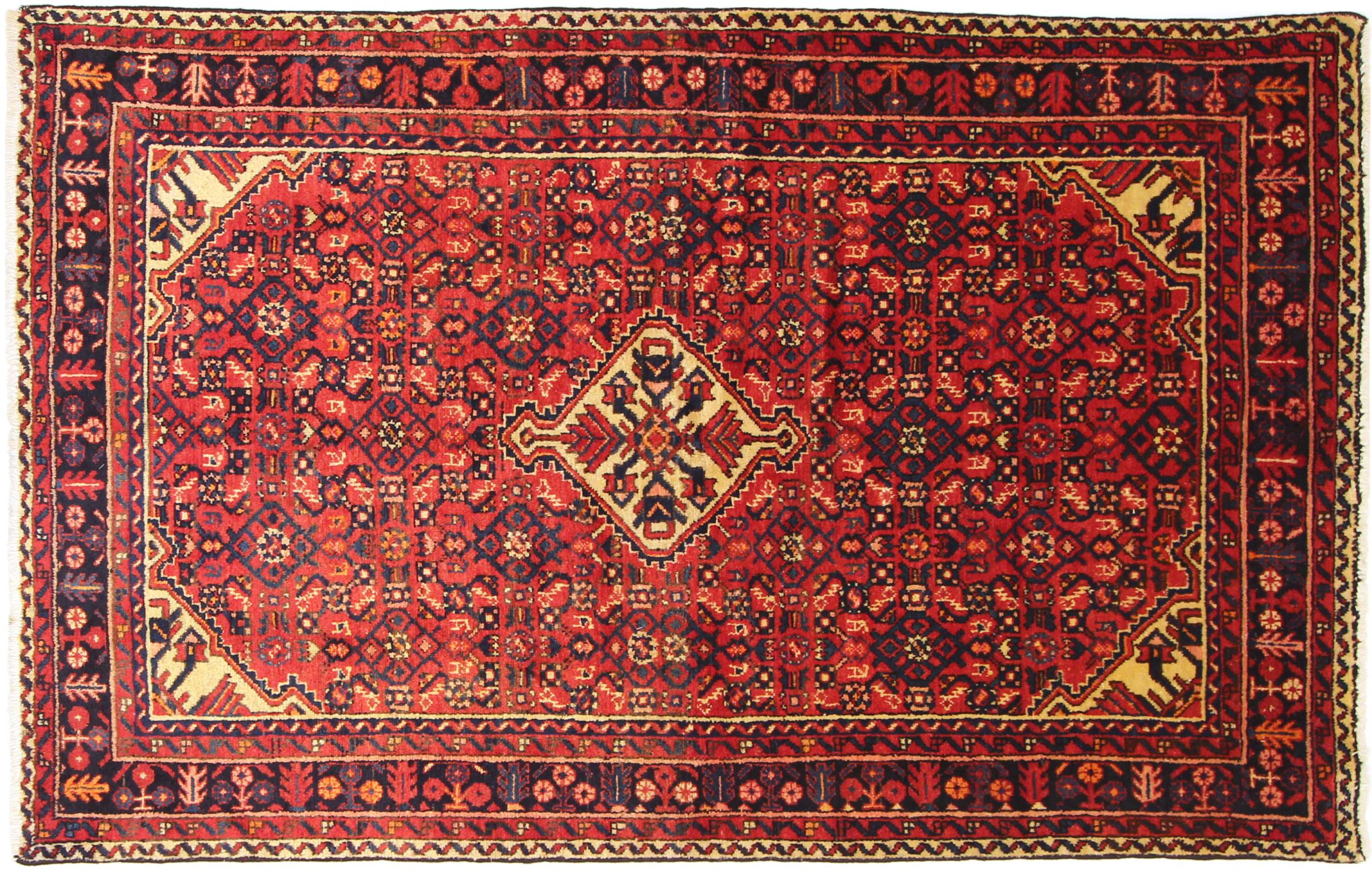 Denne håndknyttede Hoseinabad tilbyder traditionel persisk tæppekunst. Det blev håndlavet i den lille by Hoseinabad nær Hamadan. Den høje kvalitet af tæpperne fra denne region forbløffer. Føl et stykke af Østen under dine fødder med denne smukke Hoseinabad tæppe.