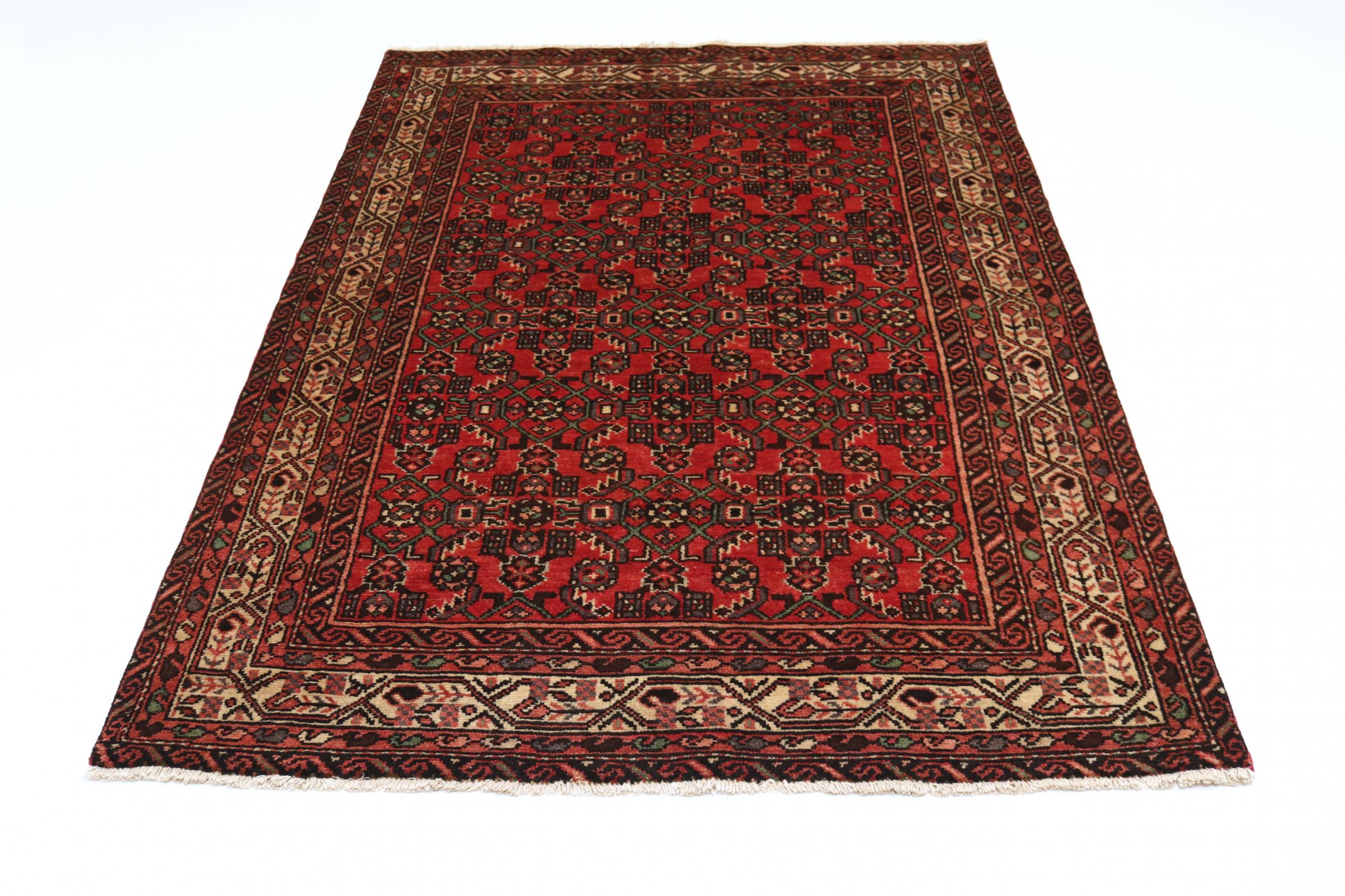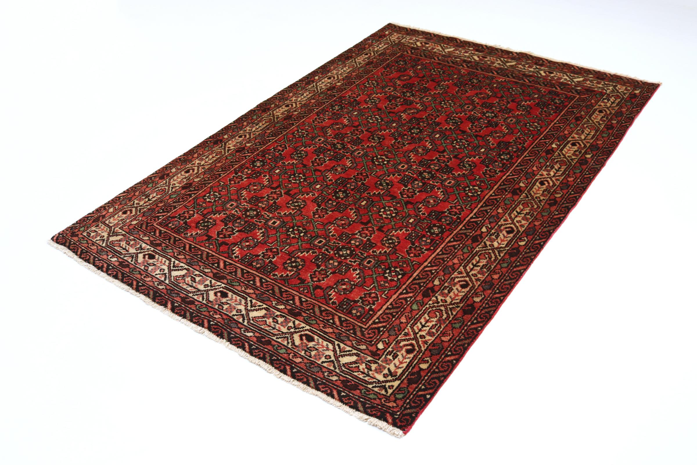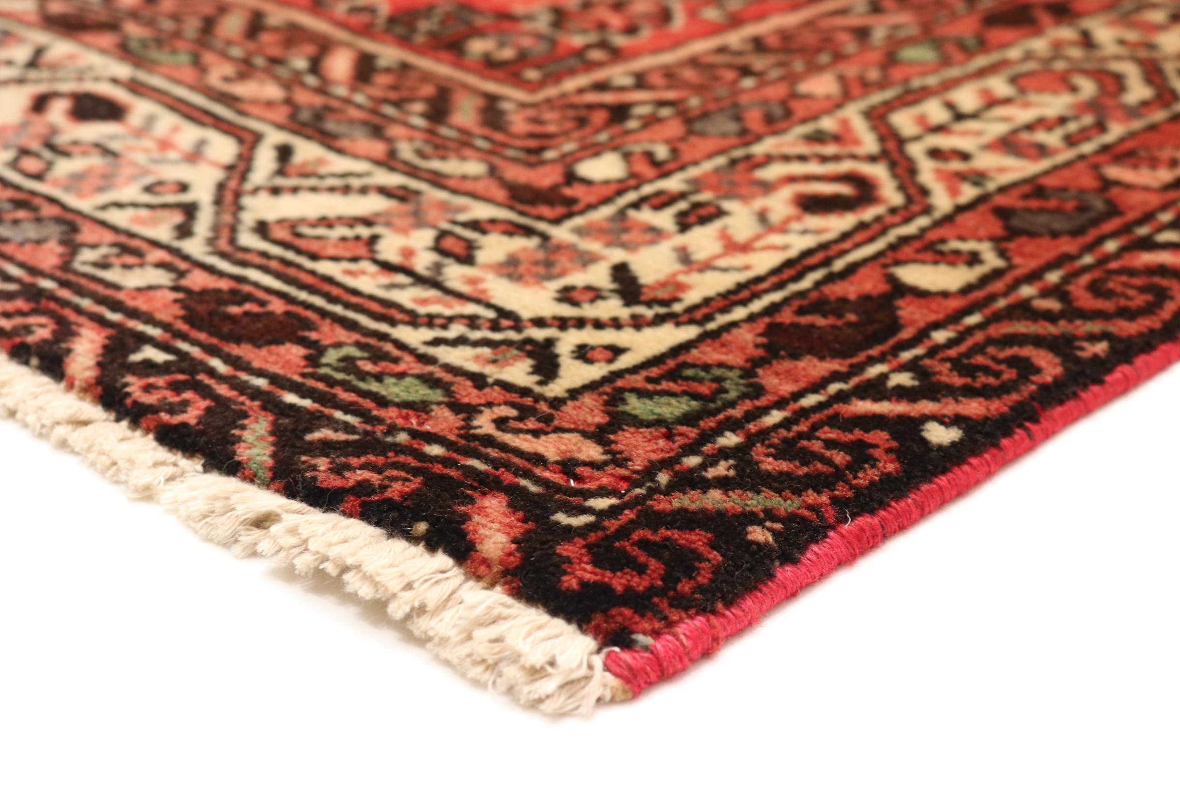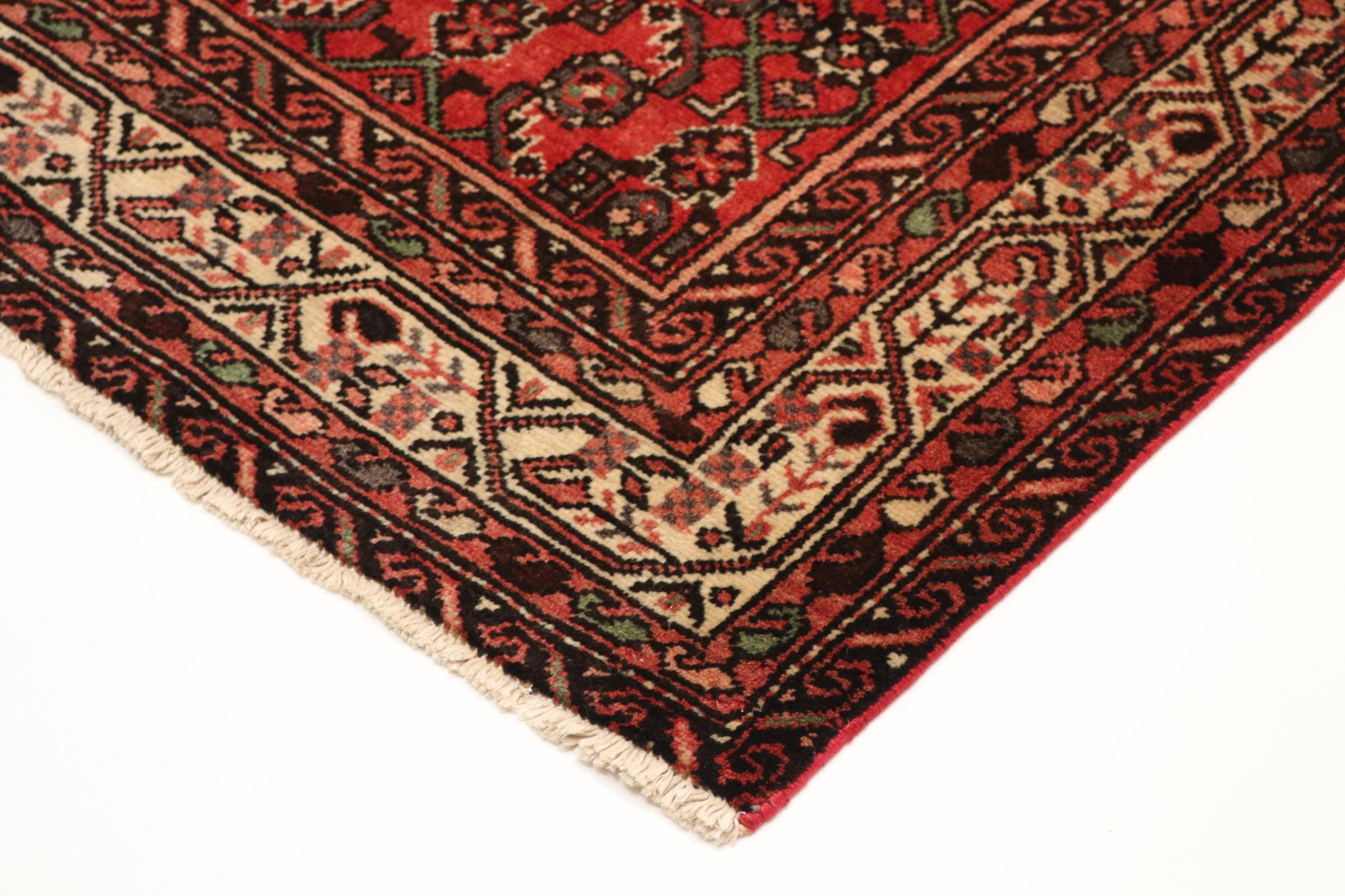 Denne håndknyttede Hoseinabad tilbyder traditionel persisk tæppekunst. Det blev håndlavet i den lille by Hoseinabad nær Hamadan. Den høje kvalitet af tæpperne fra denne region forbløffer. Føl et stykke af Østen under dine fødder med denne smukke Hoseinabad tæppe.