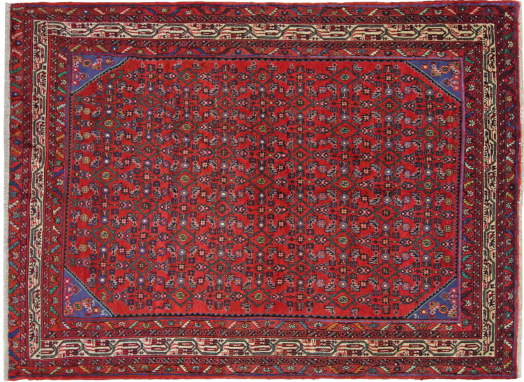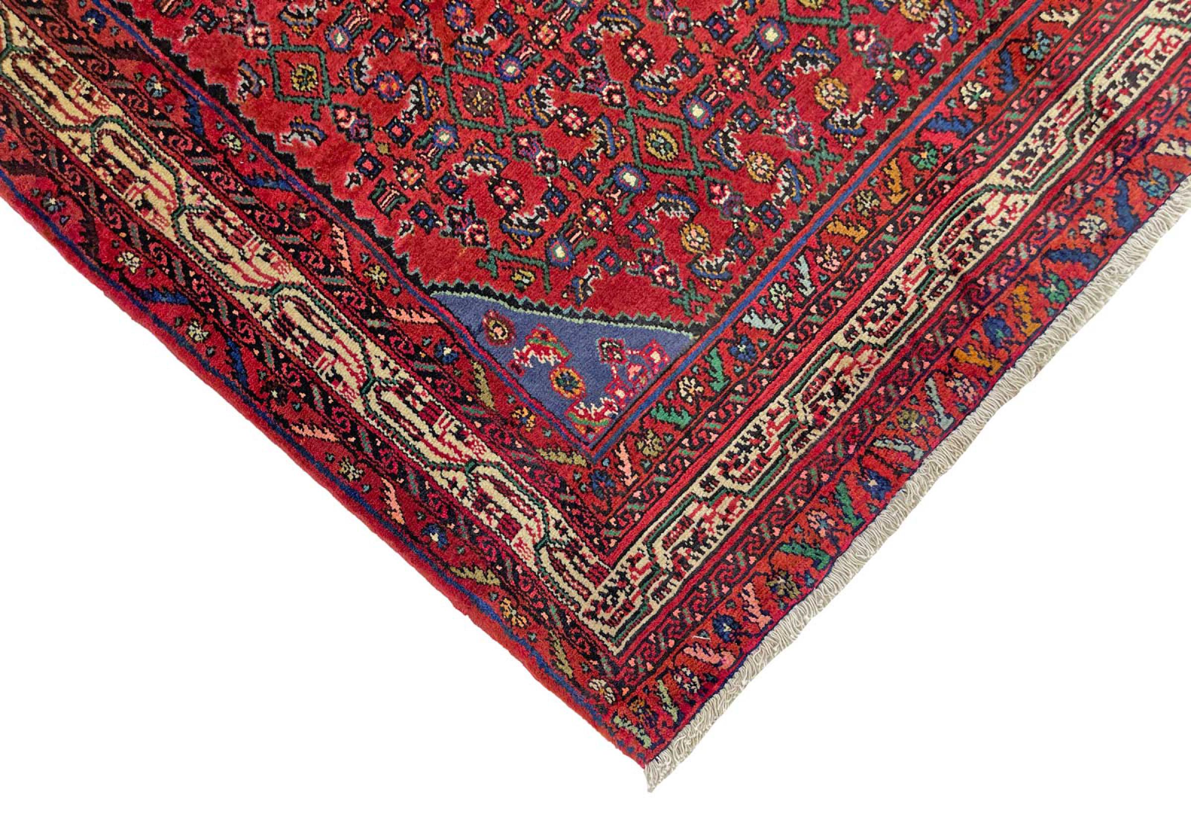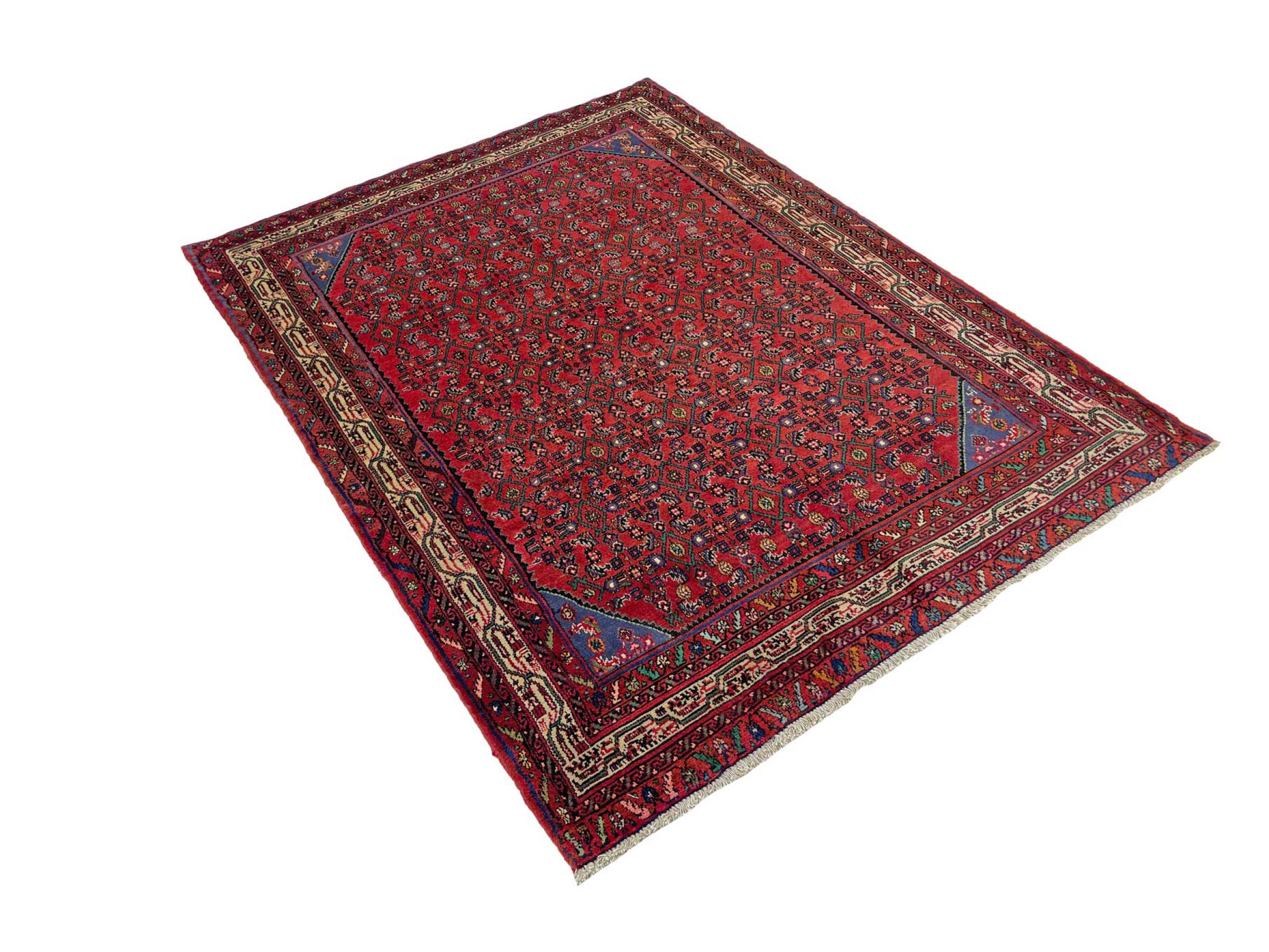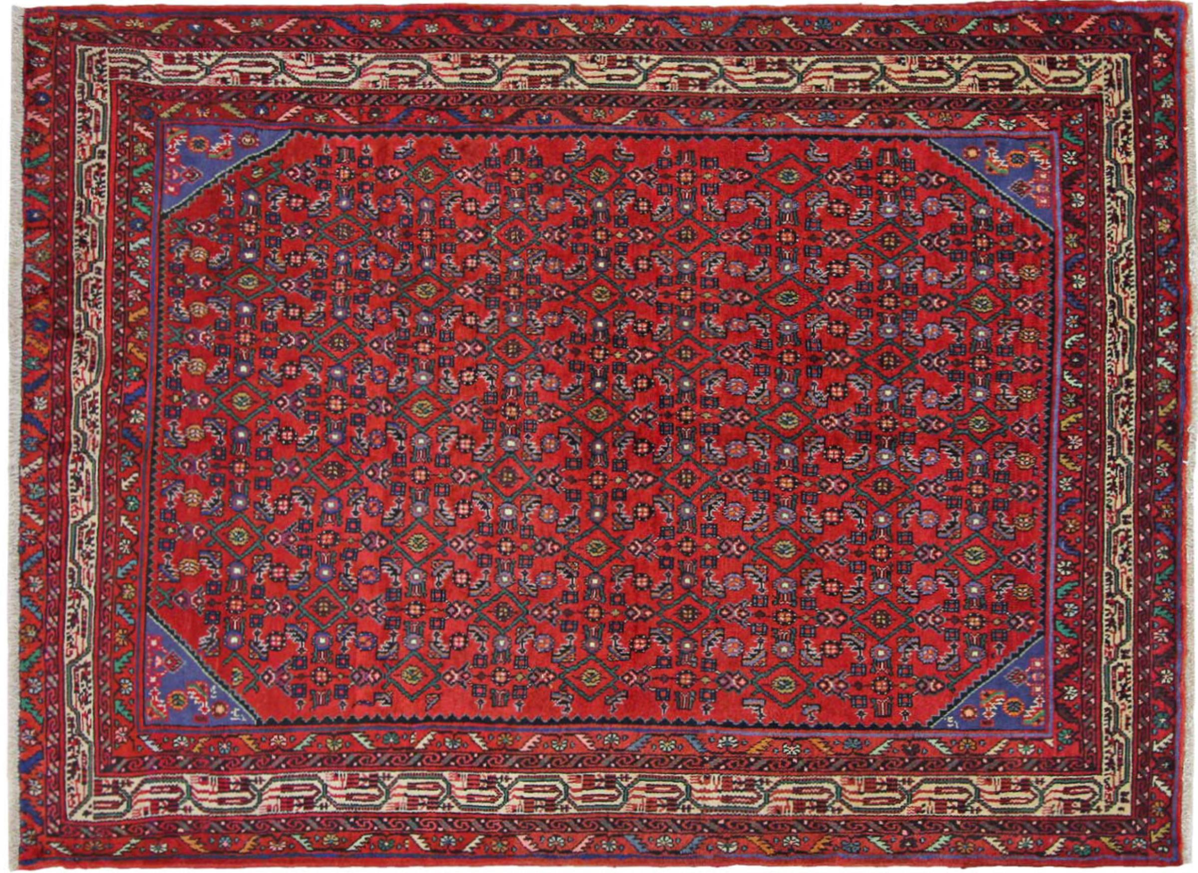 Denne håndknyttede Hoseinabad tilbyder traditionel persisk tæppekunst. Det blev håndlavet i den lille by Hoseinabad nær Hamadan. Den høje kvalitet af tæpperne fra denne region forbløffer. Føl et stykke af Østen under dine fødder med denne smukke Hoseinabad tæppe.