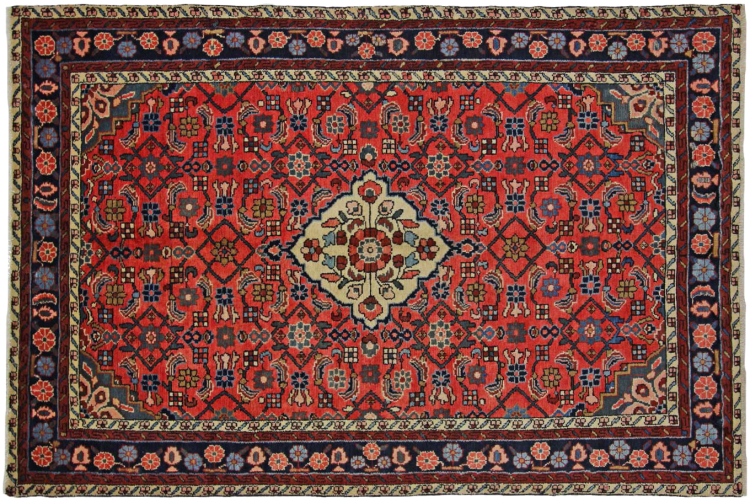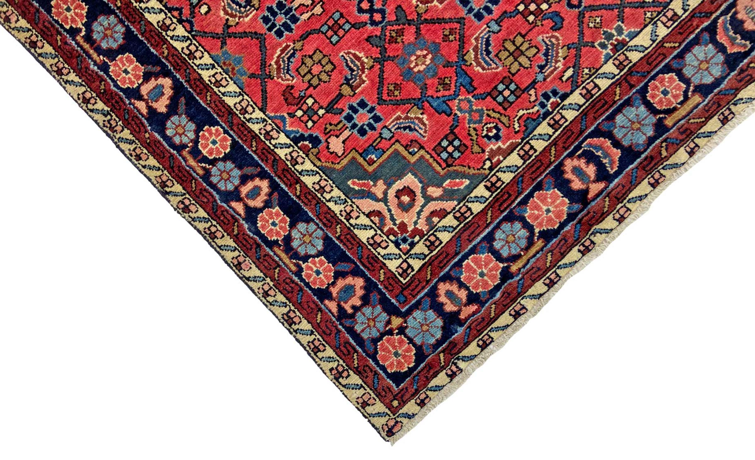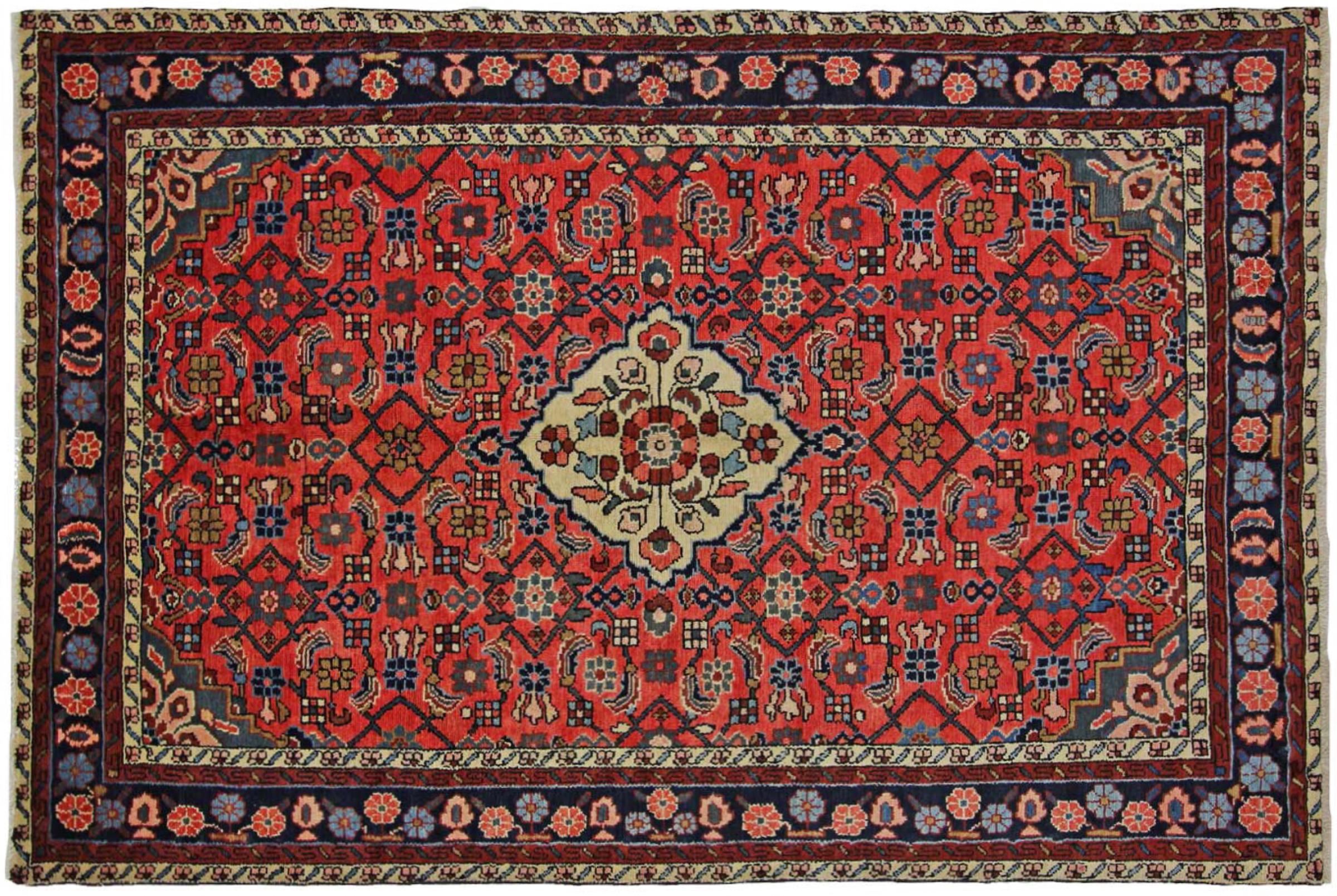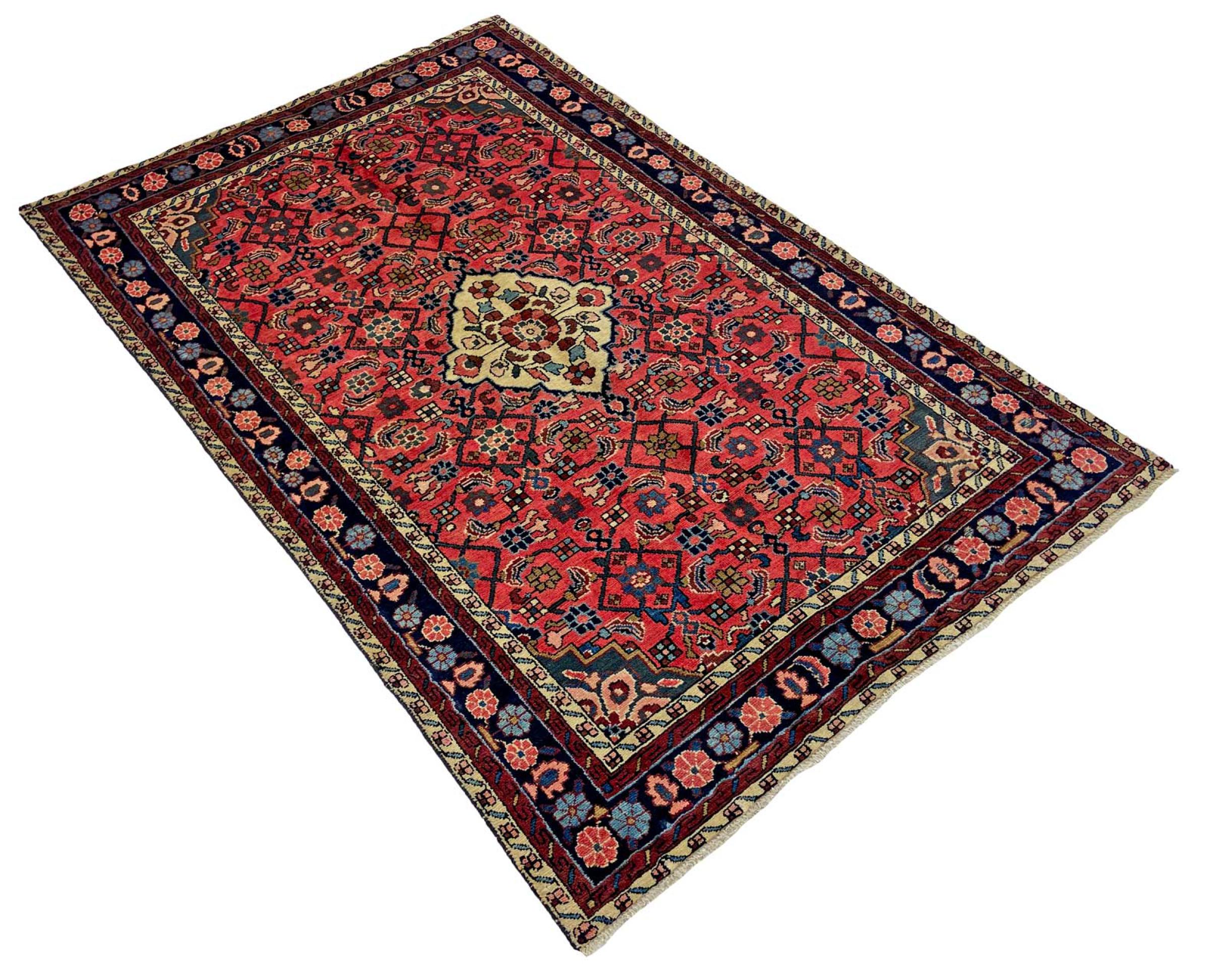 Denne håndknyttede Hoseinabad tilbyder traditionel persisk tæppekunst. Det blev håndlavet i den lille by Hoseinabad nær Hamadan. Den høje kvalitet af tæpperne fra denne region forbløffer. Føl et stykke af Østen under dine fødder med denne smukke Hoseinabad tæppe.
