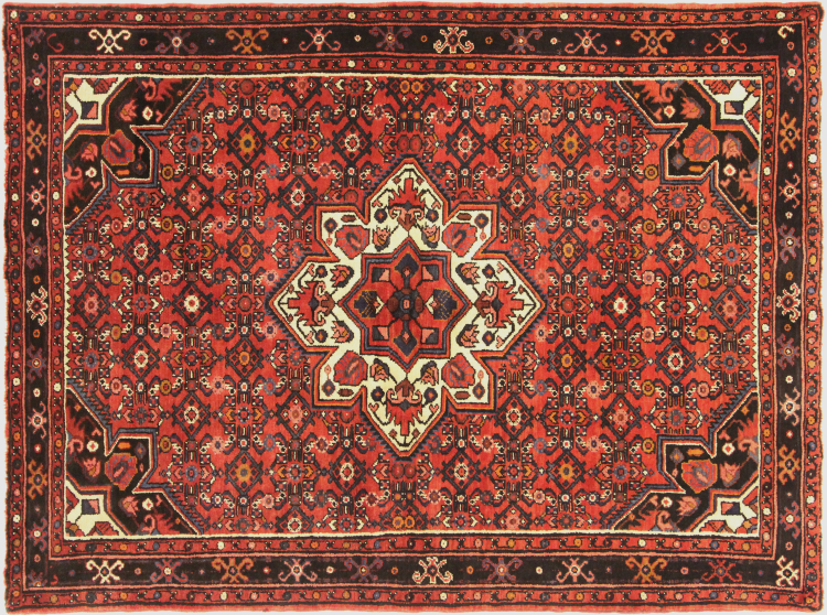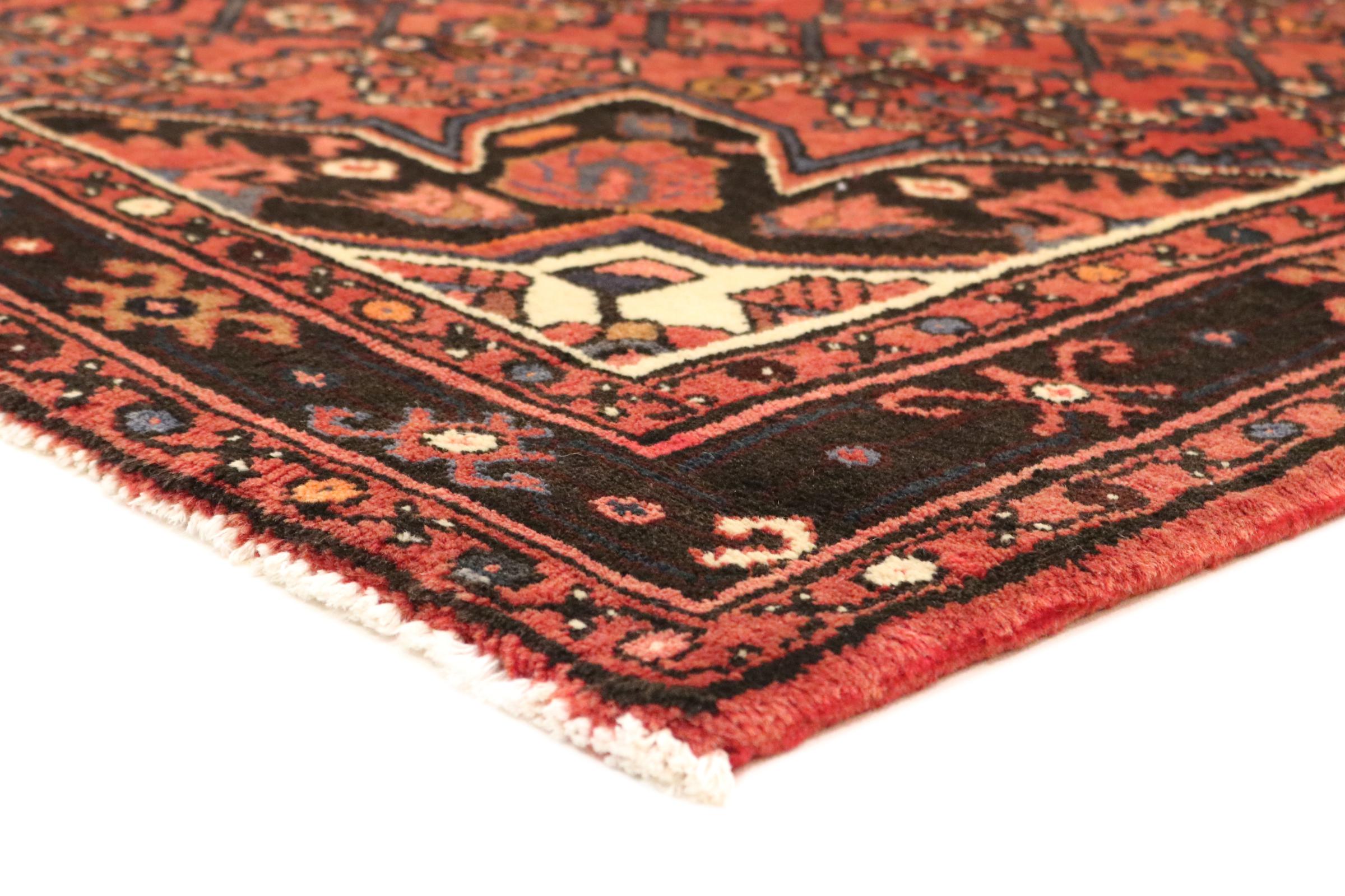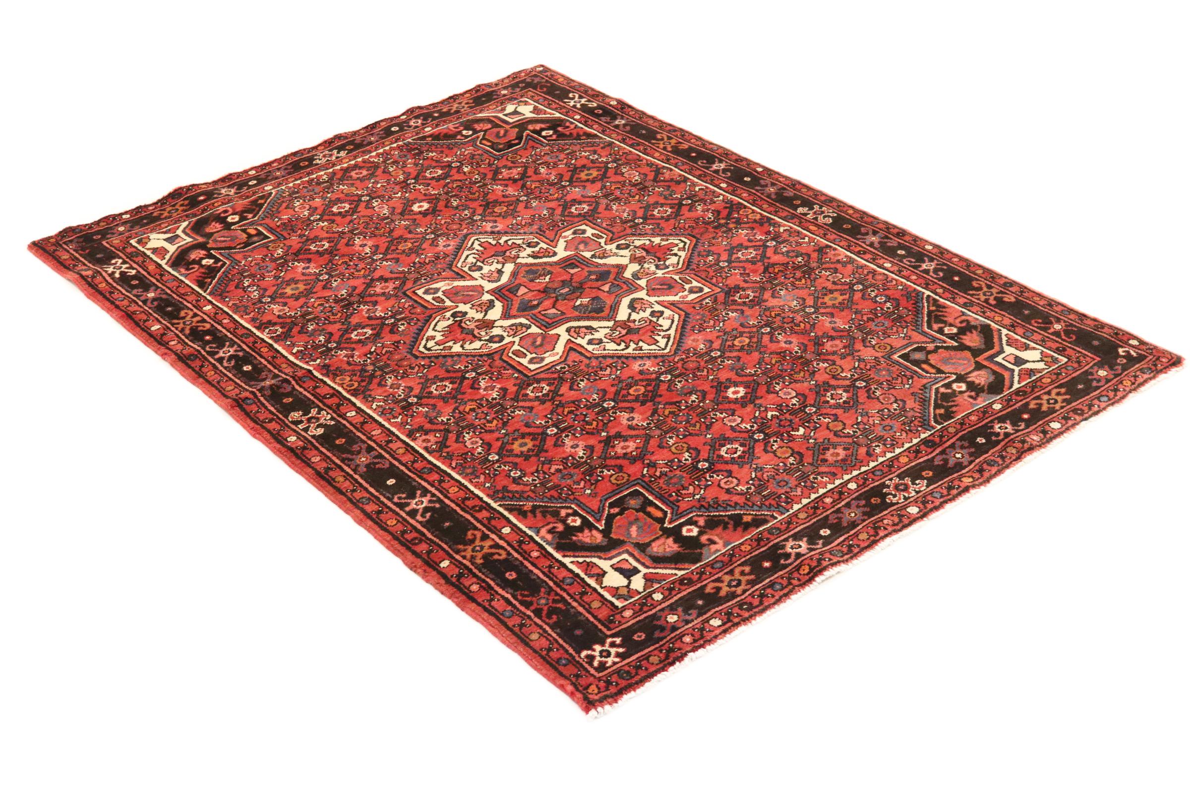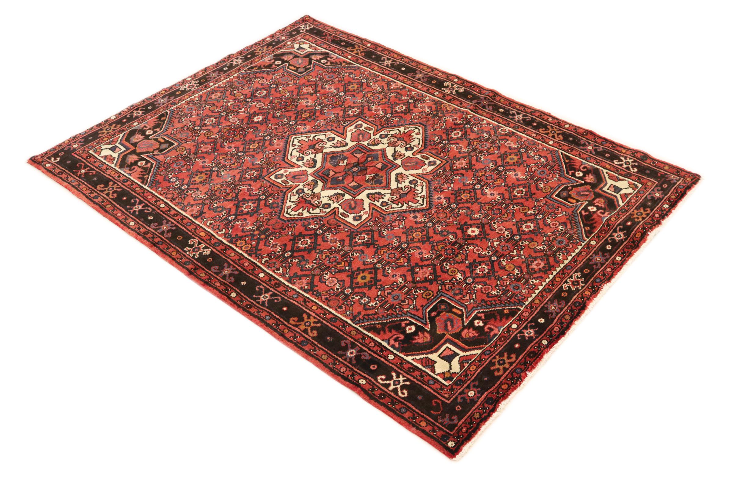 Denne håndknyttede Hoseinabad tilbyder traditionel persisk tæppekunst. Det blev håndlavet i den lille by Hoseinabad nær Hamadan. Den høje kvalitet af tæpperne fra denne region forbløffer. Føl et stykke af Østen under dine fødder med denne smukke Hoseinabad tæppe.