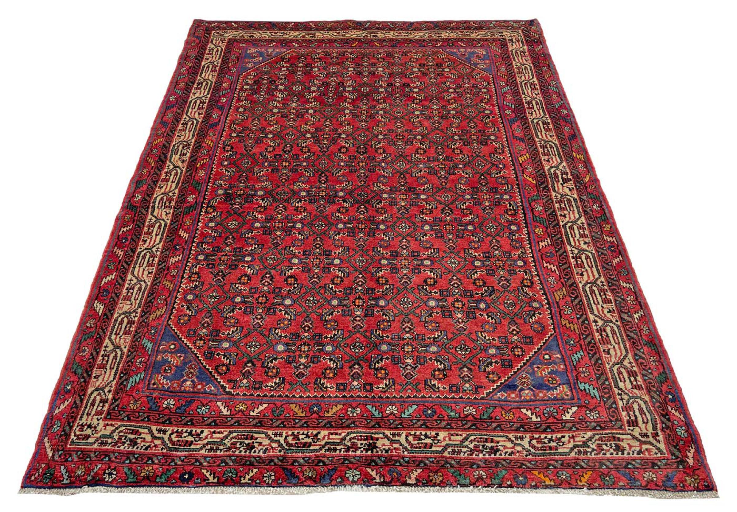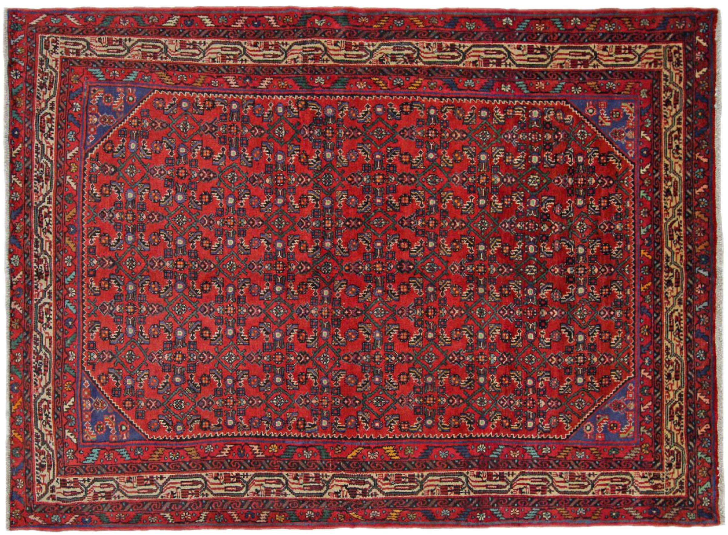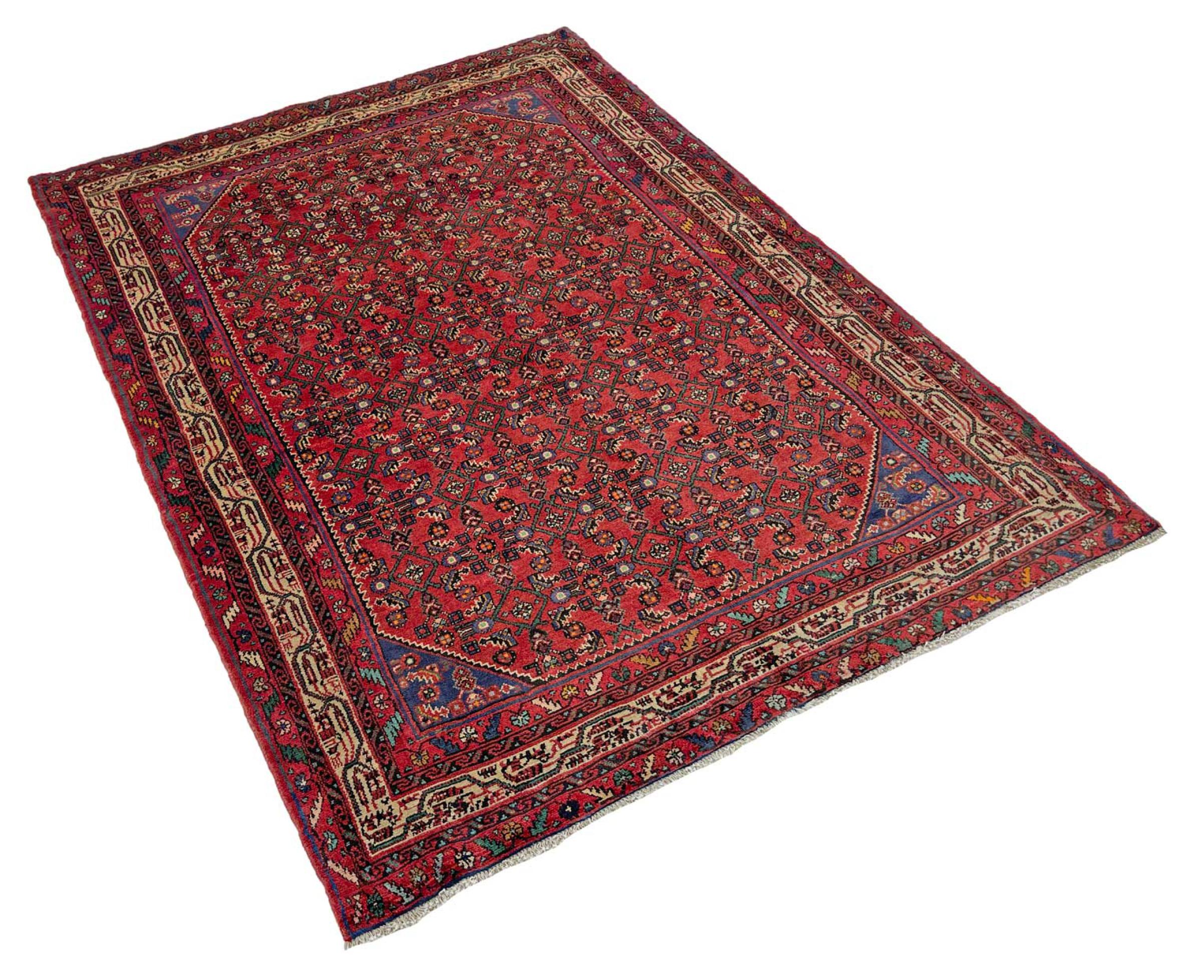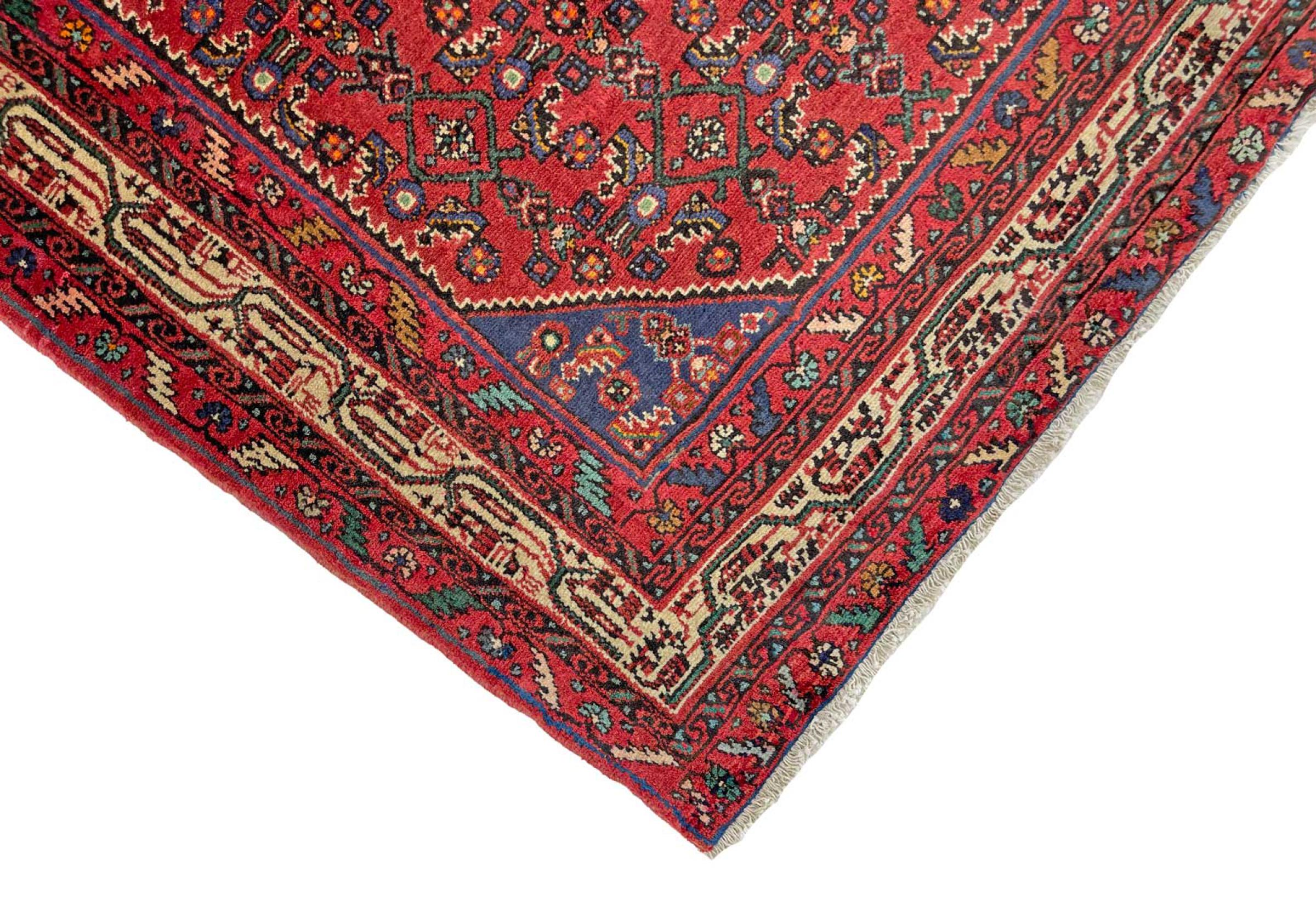 Denne håndknyttede Hoseinabad tilbyder traditionel persisk tæppekunst. Det blev håndlavet i den lille by Hoseinabad nær Hamadan. Den høje kvalitet af tæpperne fra denne region forbløffer. Føl et stykke af Østen under dine fødder med denne smukke Hoseinabad tæppe.