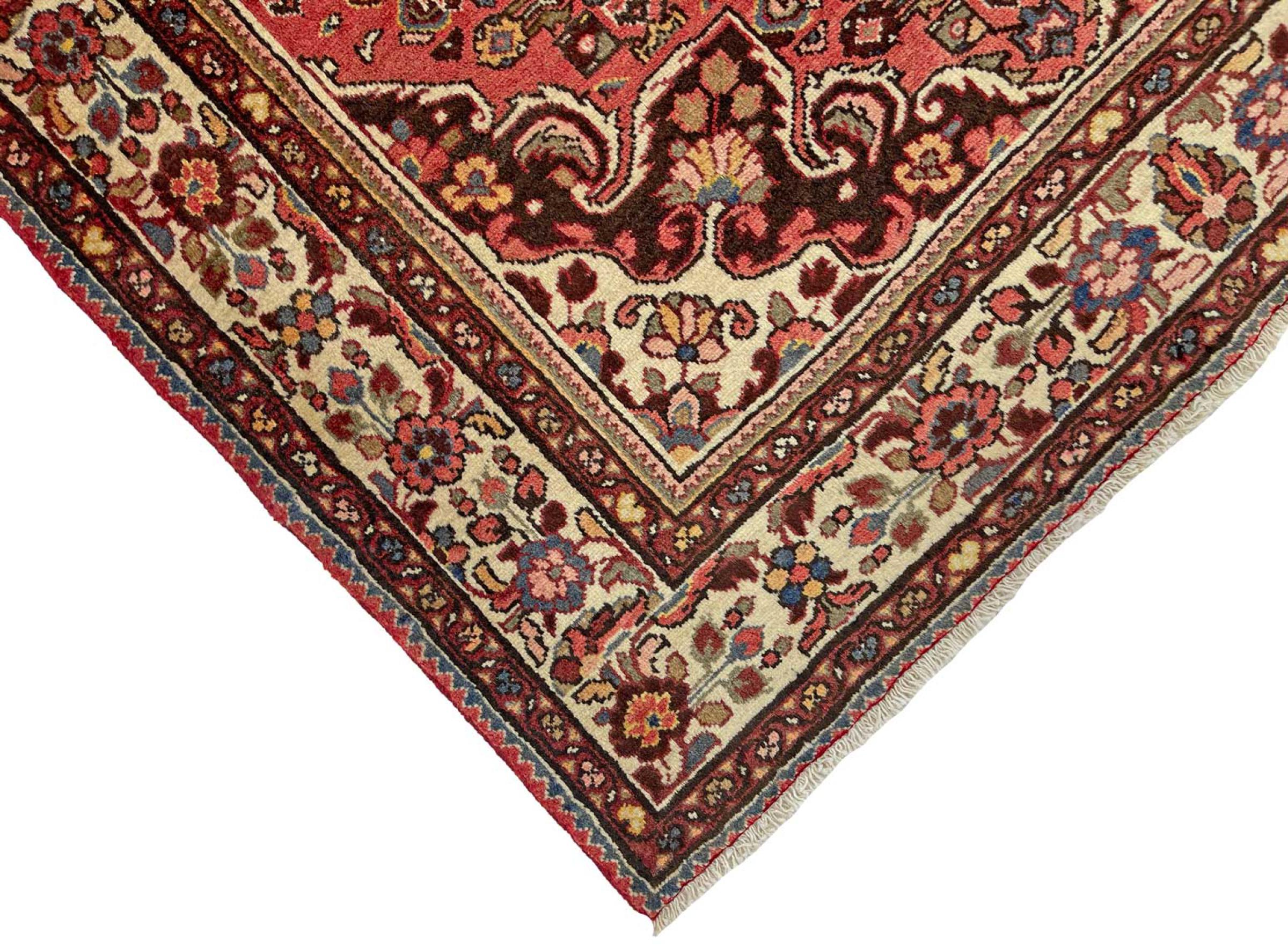 Denne håndknyttede Hoseinabad tilbyder traditionel persisk tæppekunst. Det blev håndlavet i den lille by Hoseinabad nær Hamadan. Den høje kvalitet af tæpperne fra denne region forbløffer. Føl et stykke af Østen under dine fødder med denne smukke Hoseinabad tæppe.