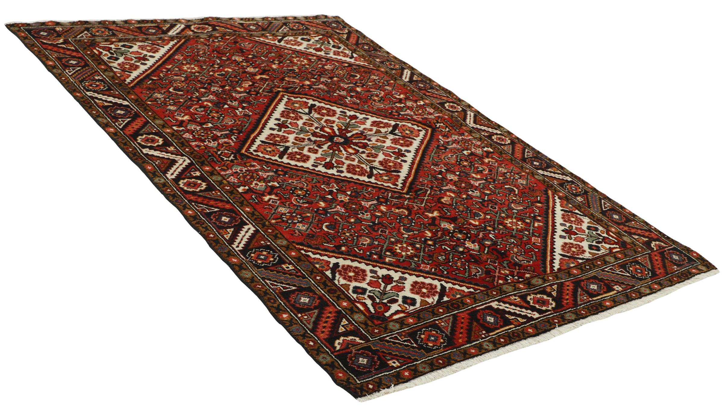 Denne håndknyttede Hoseinabad tilbyder traditionel persisk tæppekunst. Det blev håndlavet i den lille by Hoseinabad nær Hamadan. Den høje kvalitet af tæpperne fra denne region forbløffer. Føl et stykke af Østen under dine fødder med denne smukke Hoseinabad tæppe.