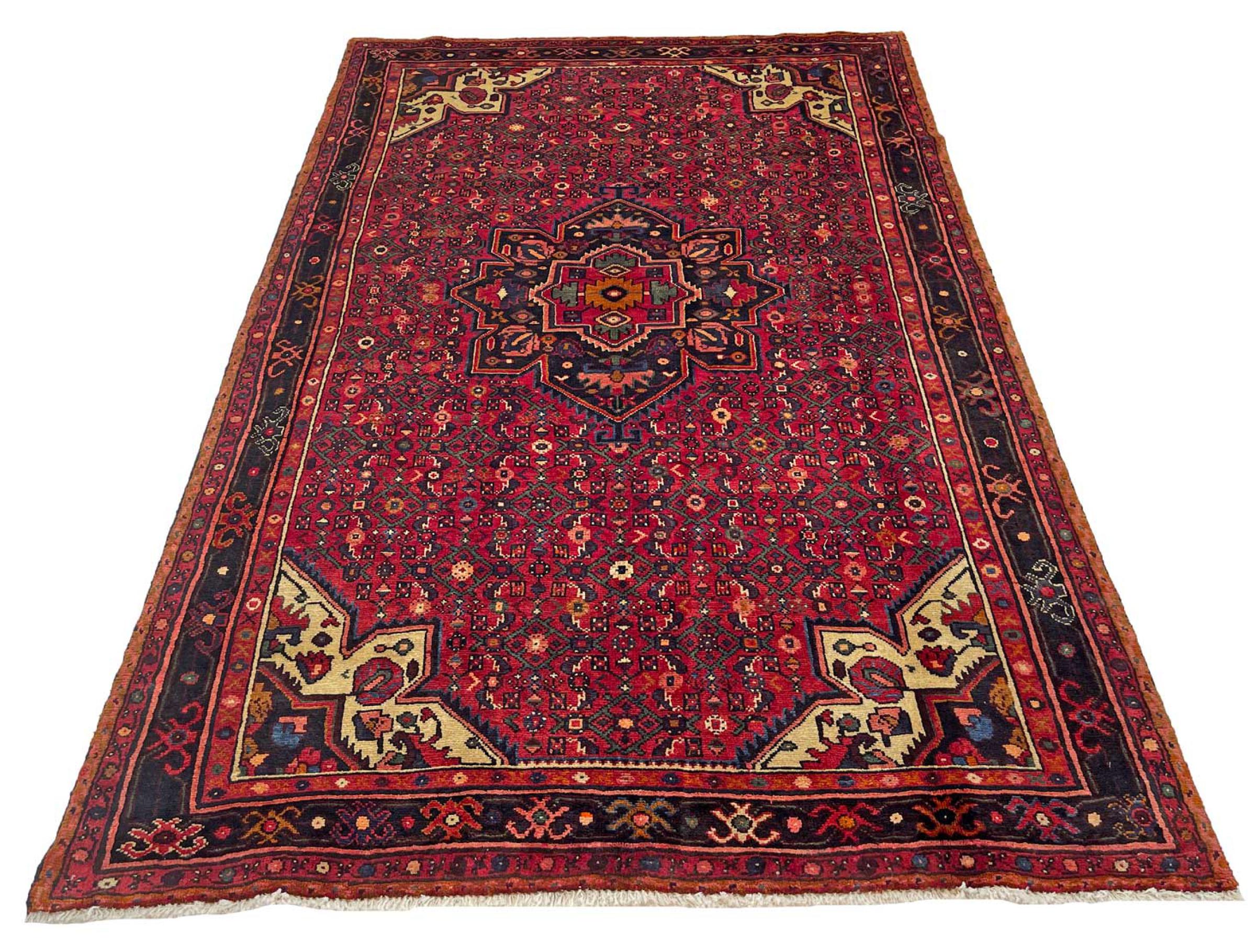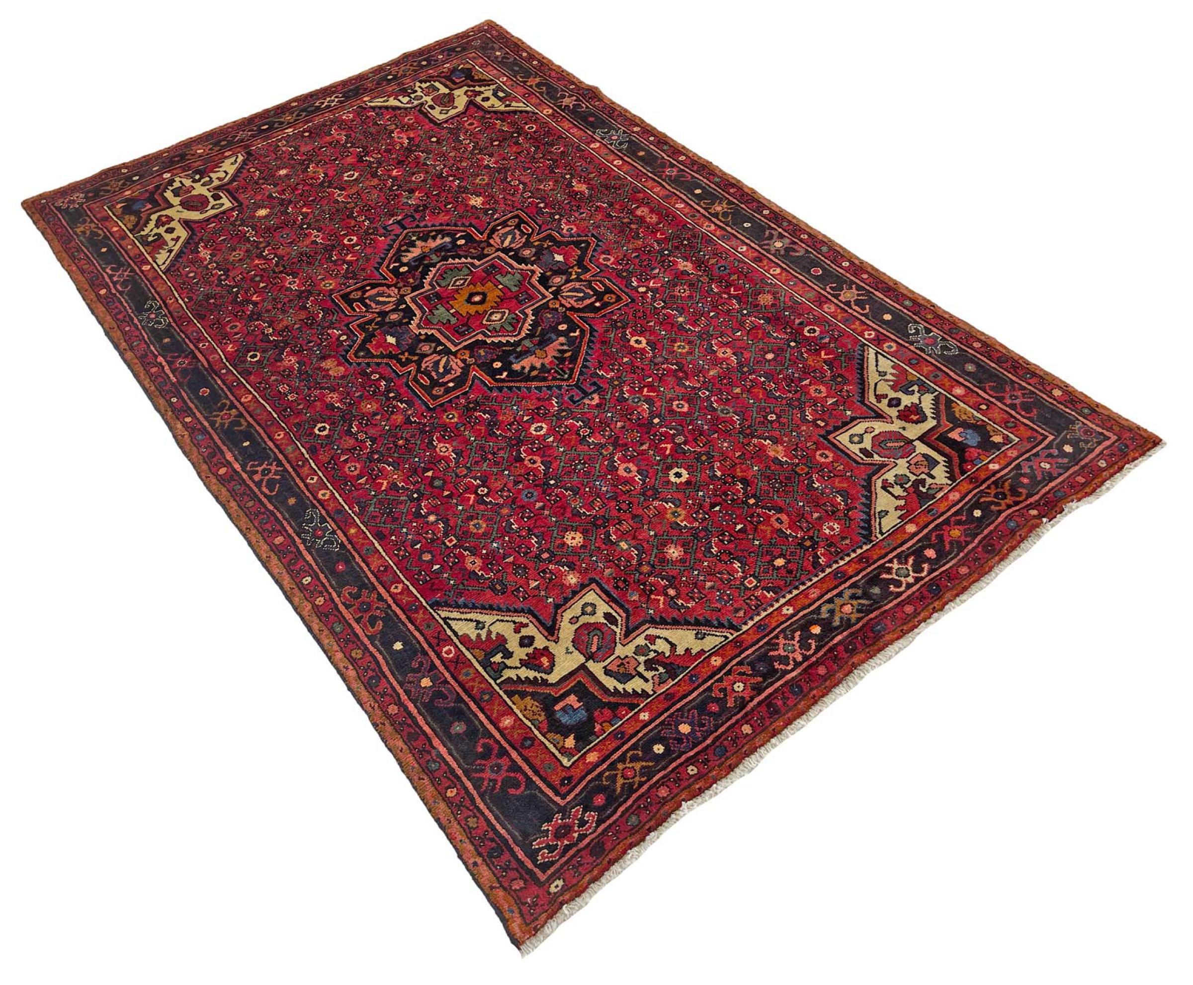 Denne håndknyttede Hoseinabad tilbyder traditionel persisk tæppekunst. Det blev håndlavet i den lille by Hoseinabad nær Hamadan. Den høje kvalitet af tæpperne fra denne region forbløffer. Føl et stykke af Østen under dine fødder med denne smukke Hoseinabad tæppe.
