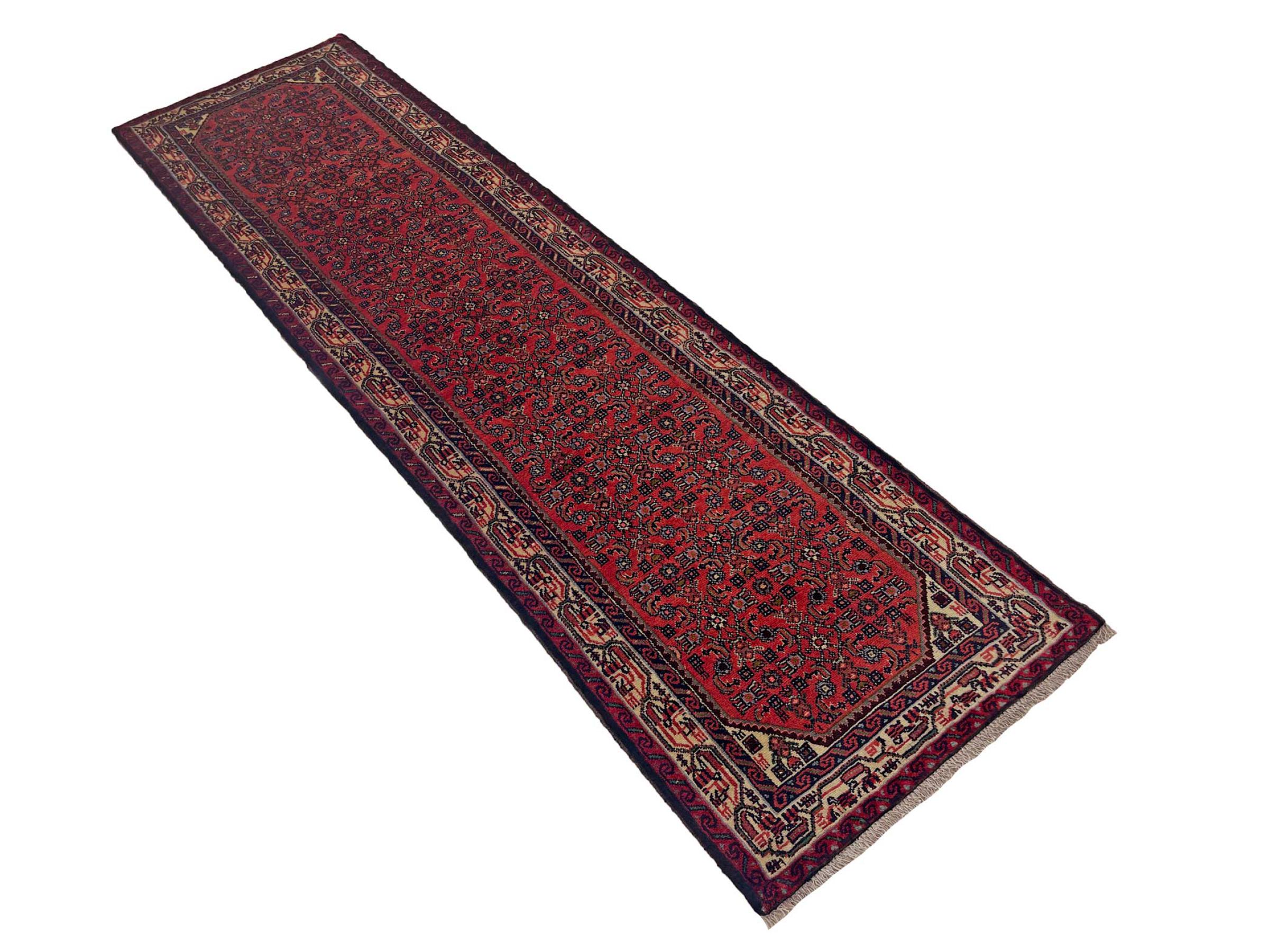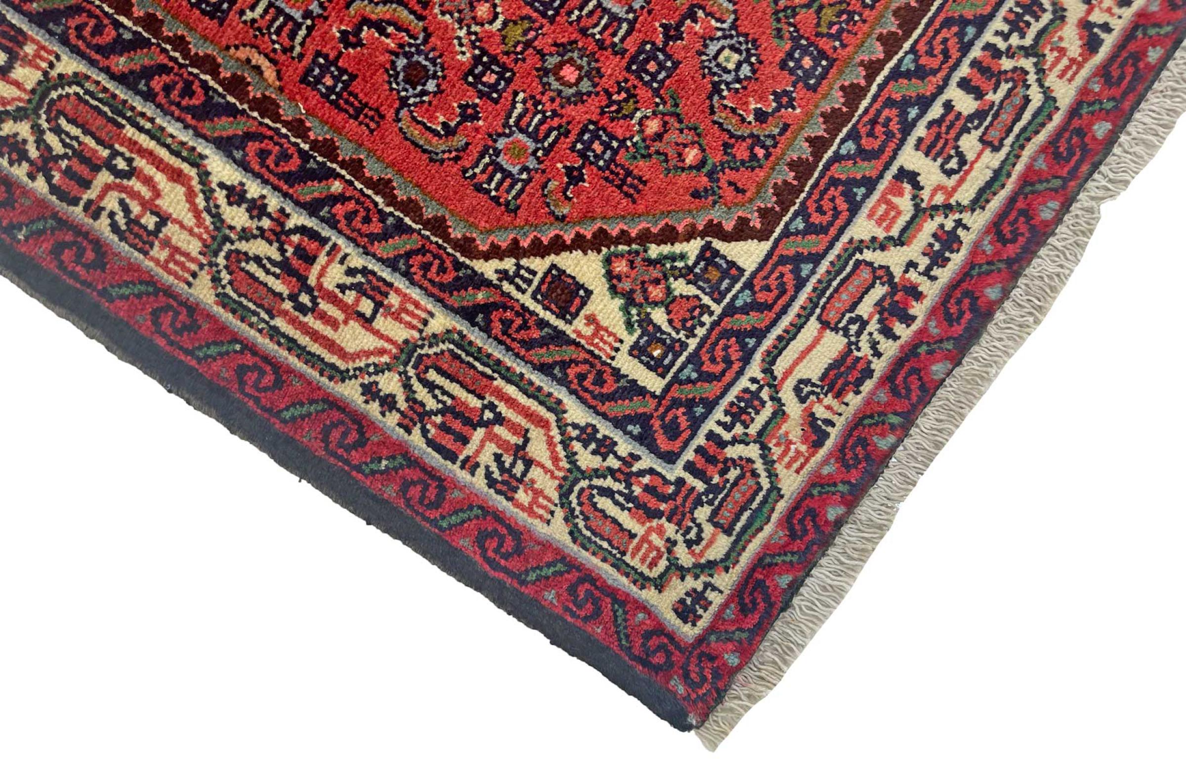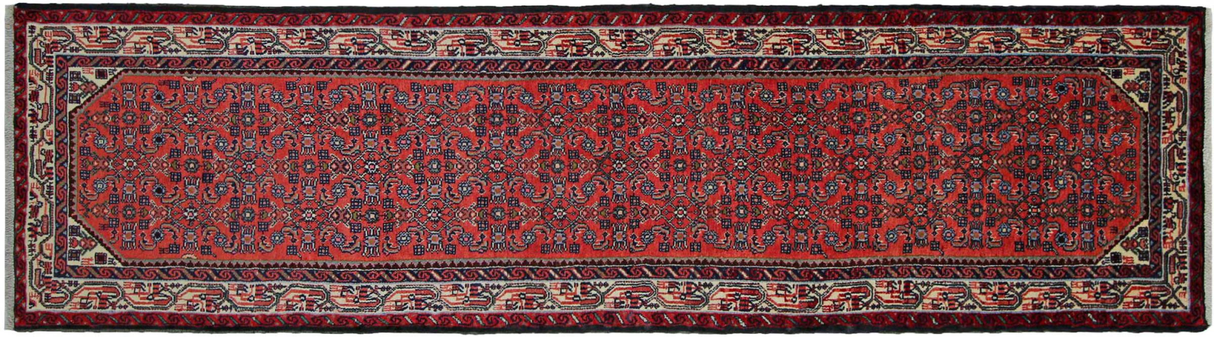Denne håndknyttede Hoseinabad tilbyder traditionel persisk tæppekunst. Det blev håndlavet i den lille by Hoseinabad nær Hamadan. Den høje kvalitet af tæpperne fra denne region forbløffer. Føl et stykke af Østen under dine fødder med denne smukke Hoseinabad tæppe.