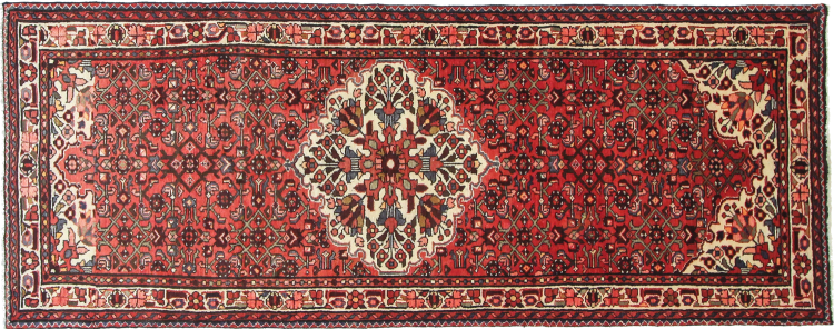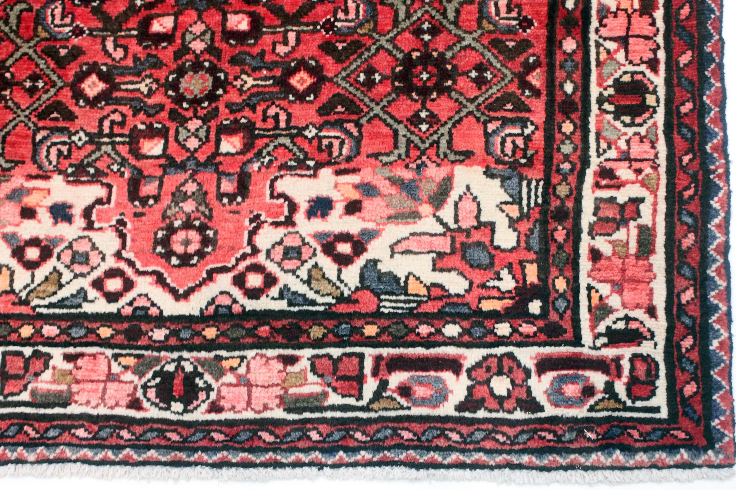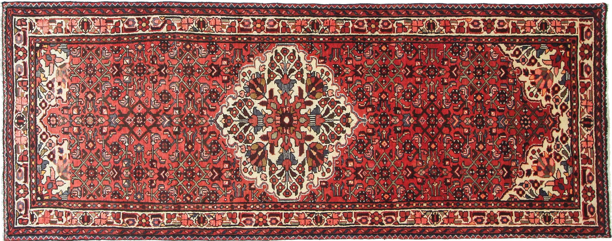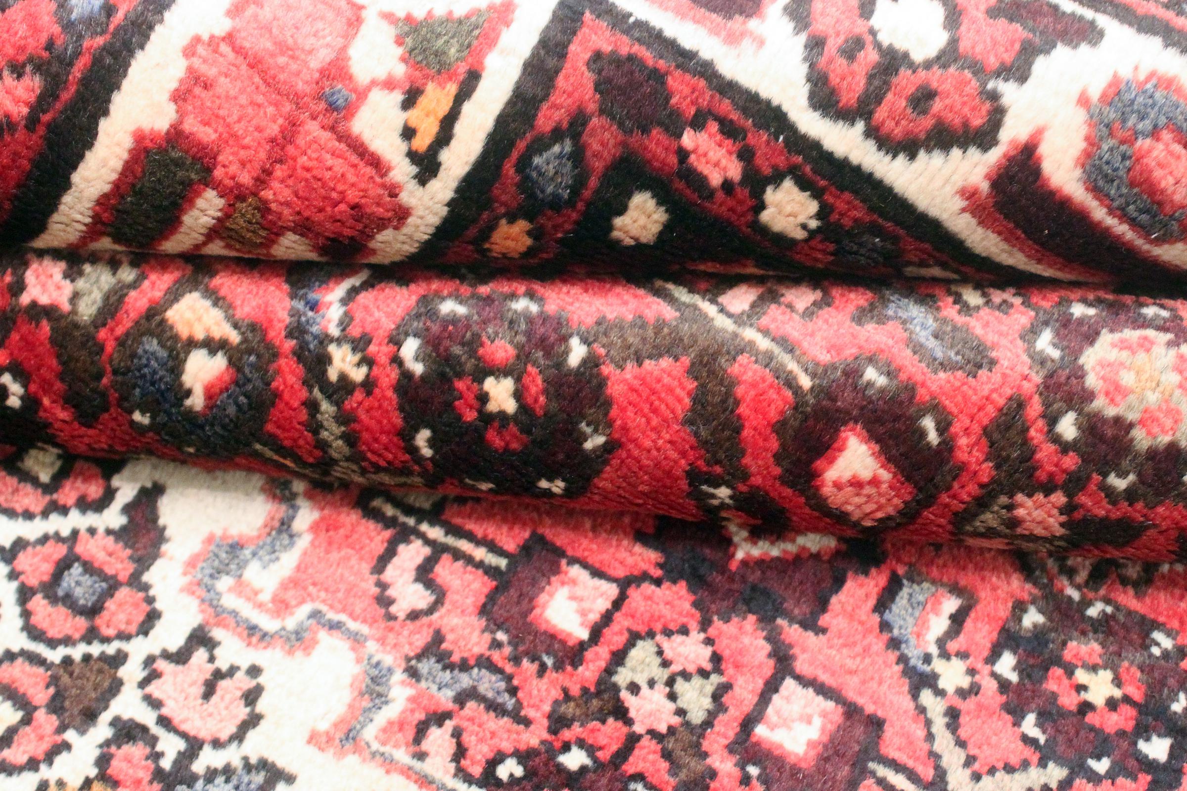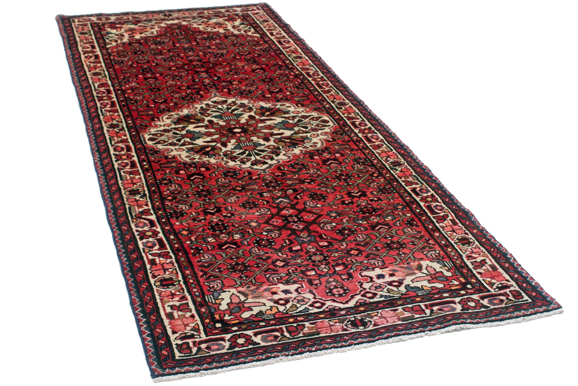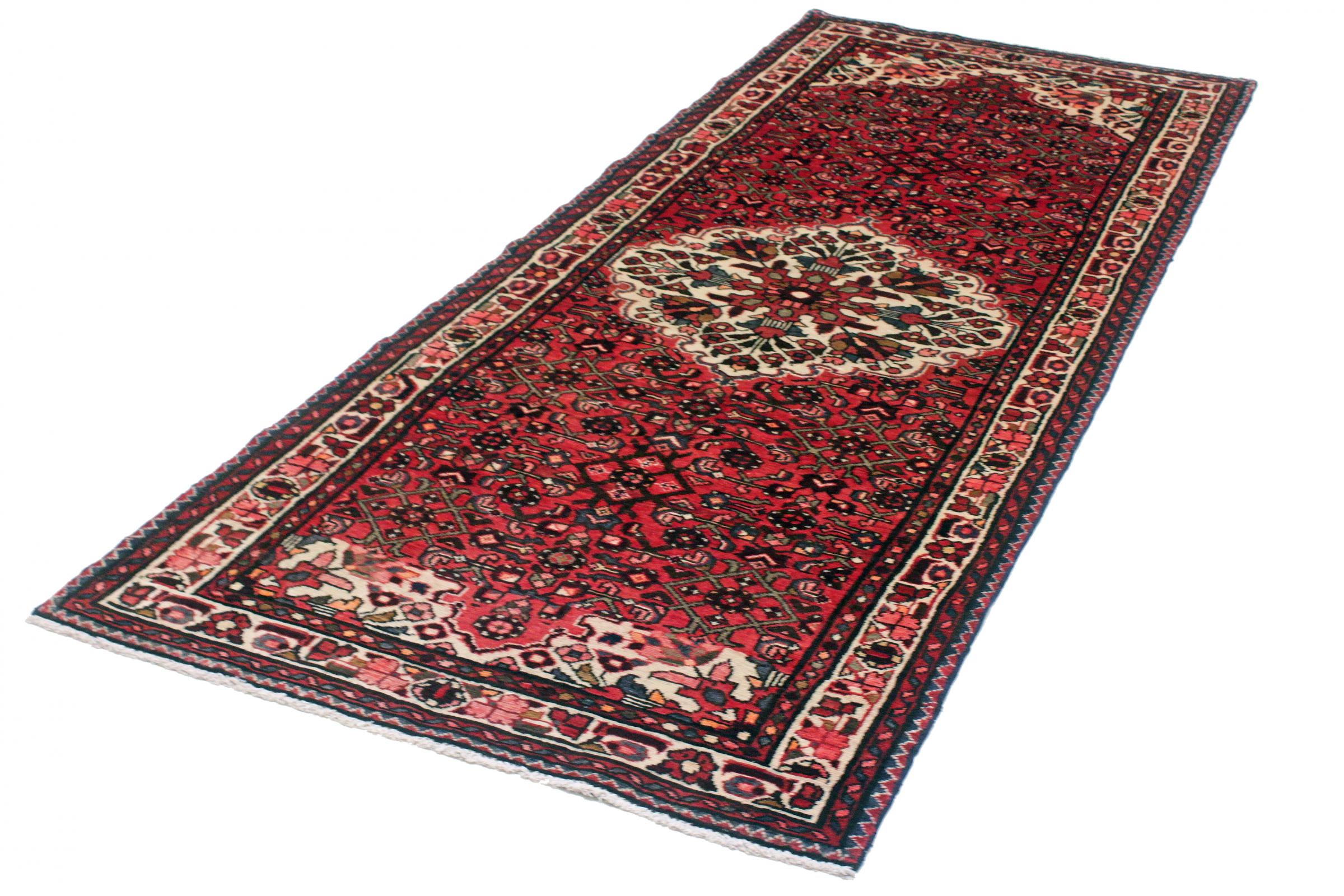 Denne håndknyttede Hoseinabad tilbyder traditionel persisk tæppekunst. Det blev håndlavet i den lille by Hoseinabad nær Hamadan. Den høje kvalitet af tæpperne fra denne region forbløffer. Føl et stykke af Østen under dine fødder med denne smukke Hoseinabad tæppe.