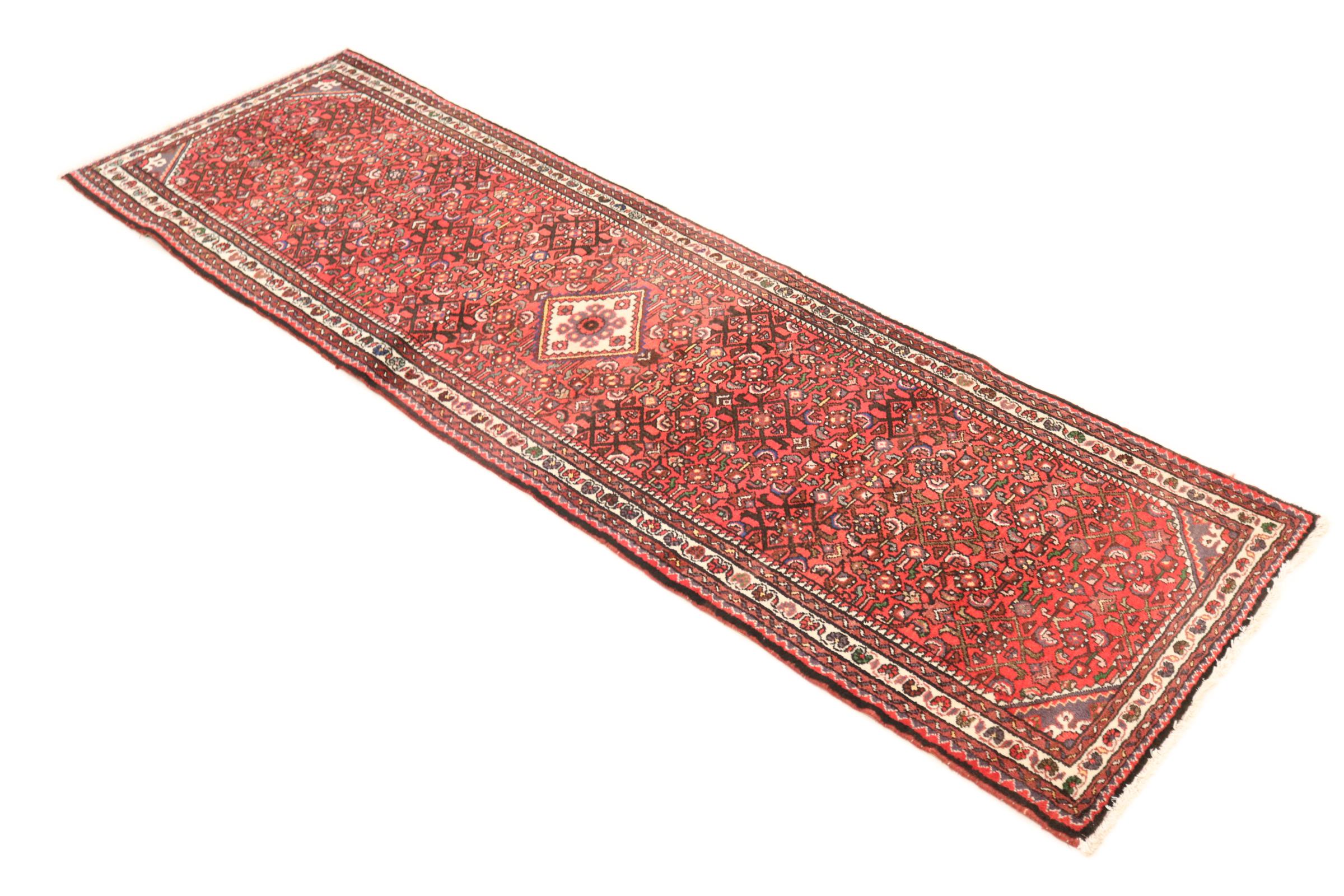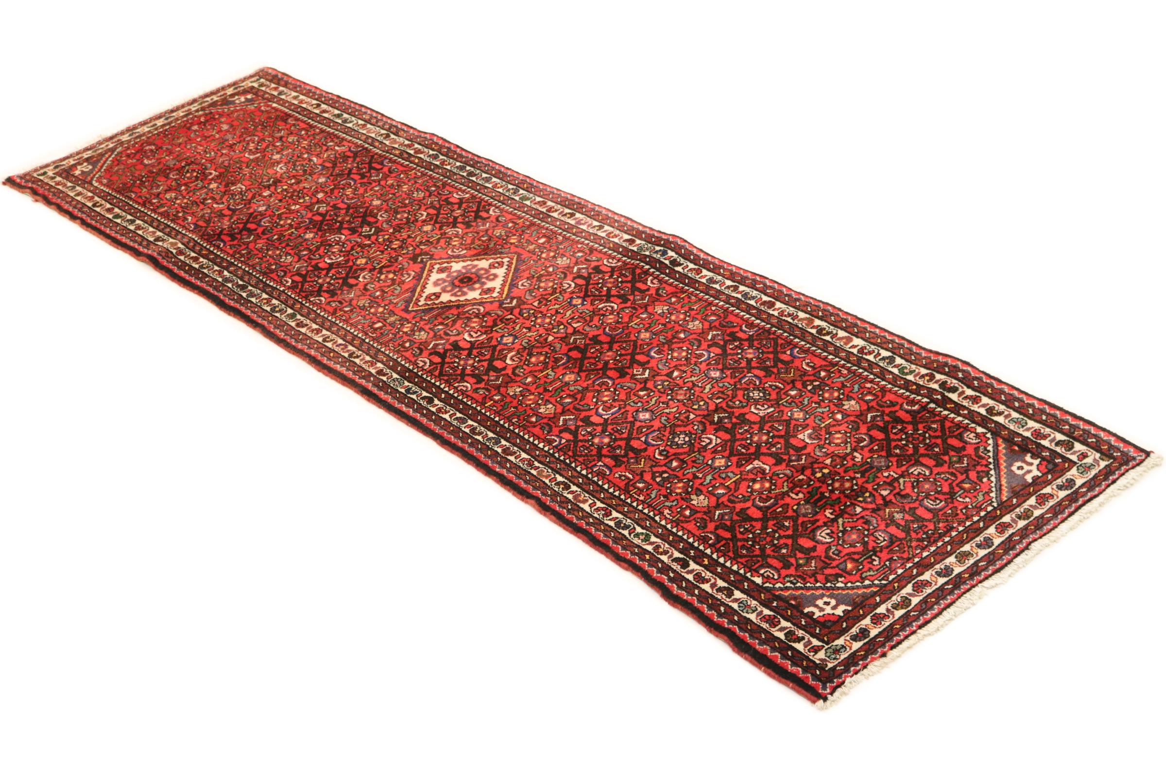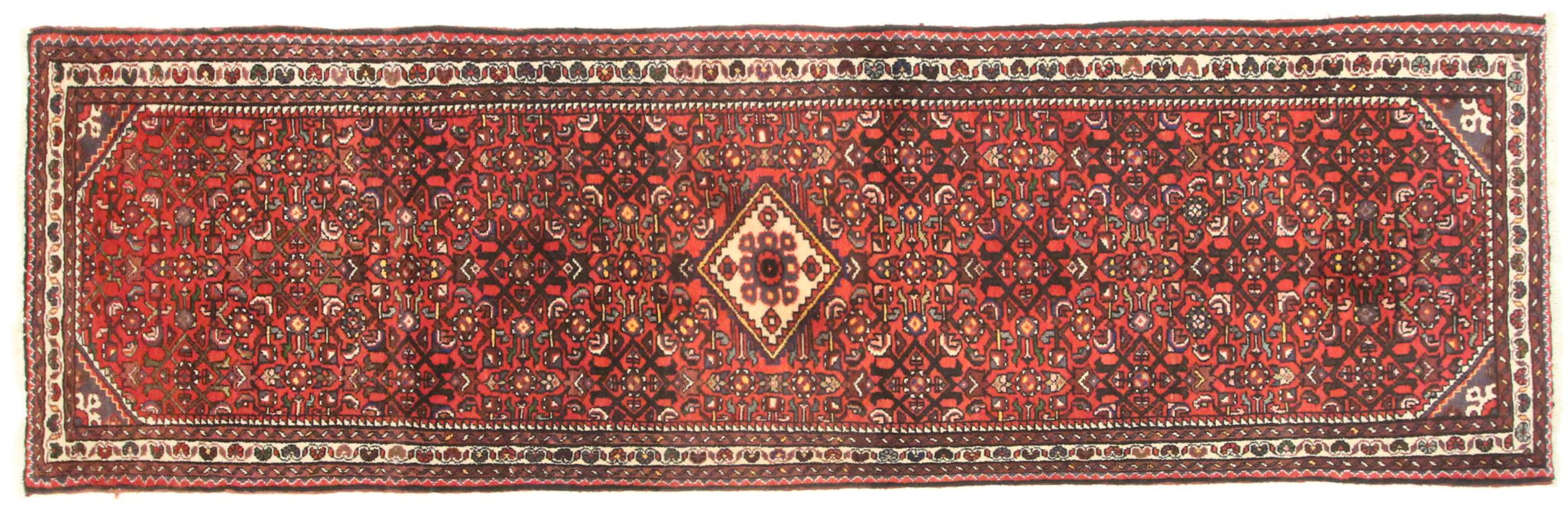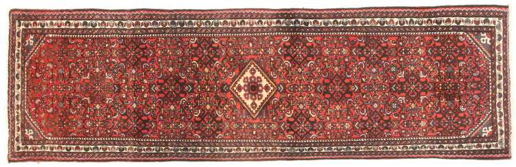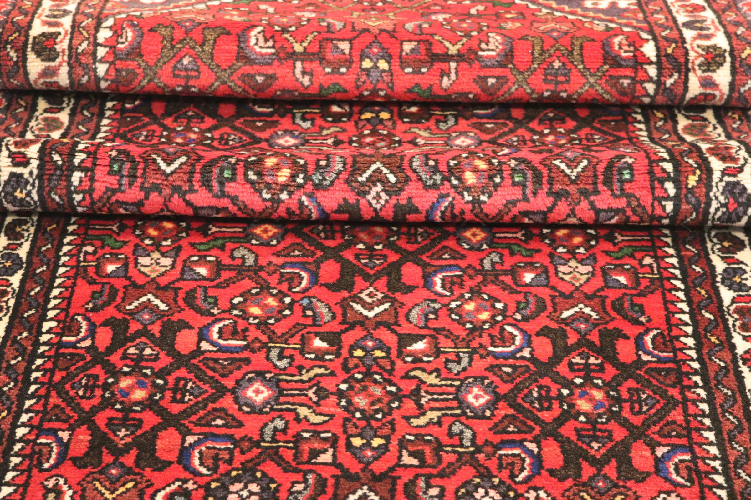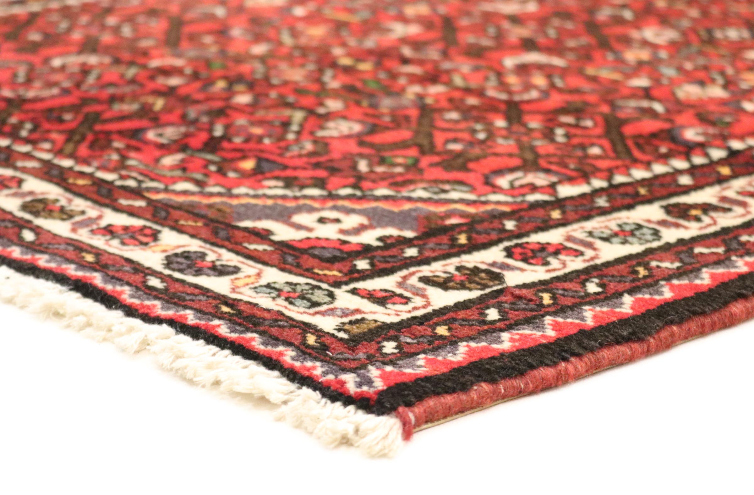 Denne håndknyttede Hoseinabad tilbyder traditionel persisk tæppekunst. Det blev håndlavet i den lille by Hoseinabad nær Hamadan. Den høje kvalitet af tæpperne fra denne region forbløffer. Føl et stykke af Østen under dine fødder med denne smukke Hoseinabad tæppe.