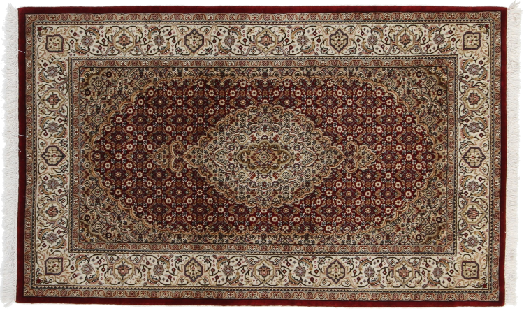 Tæppe-nr.: 3700200826958 Størrelse: 155x95 cm Tykkelse: ca. 12 mm Knuder: 360 000 - 400 000 / m² Forarbejdelse: Knyttet i hånden Luv: Uld Kæde: Bomuld Oprindelse: Indien Alder: Ny Vægt: ca. 6 kg Også kendt som Indo Täbriz Antal på lager: Unik - Kun 1 tilbage på lager
