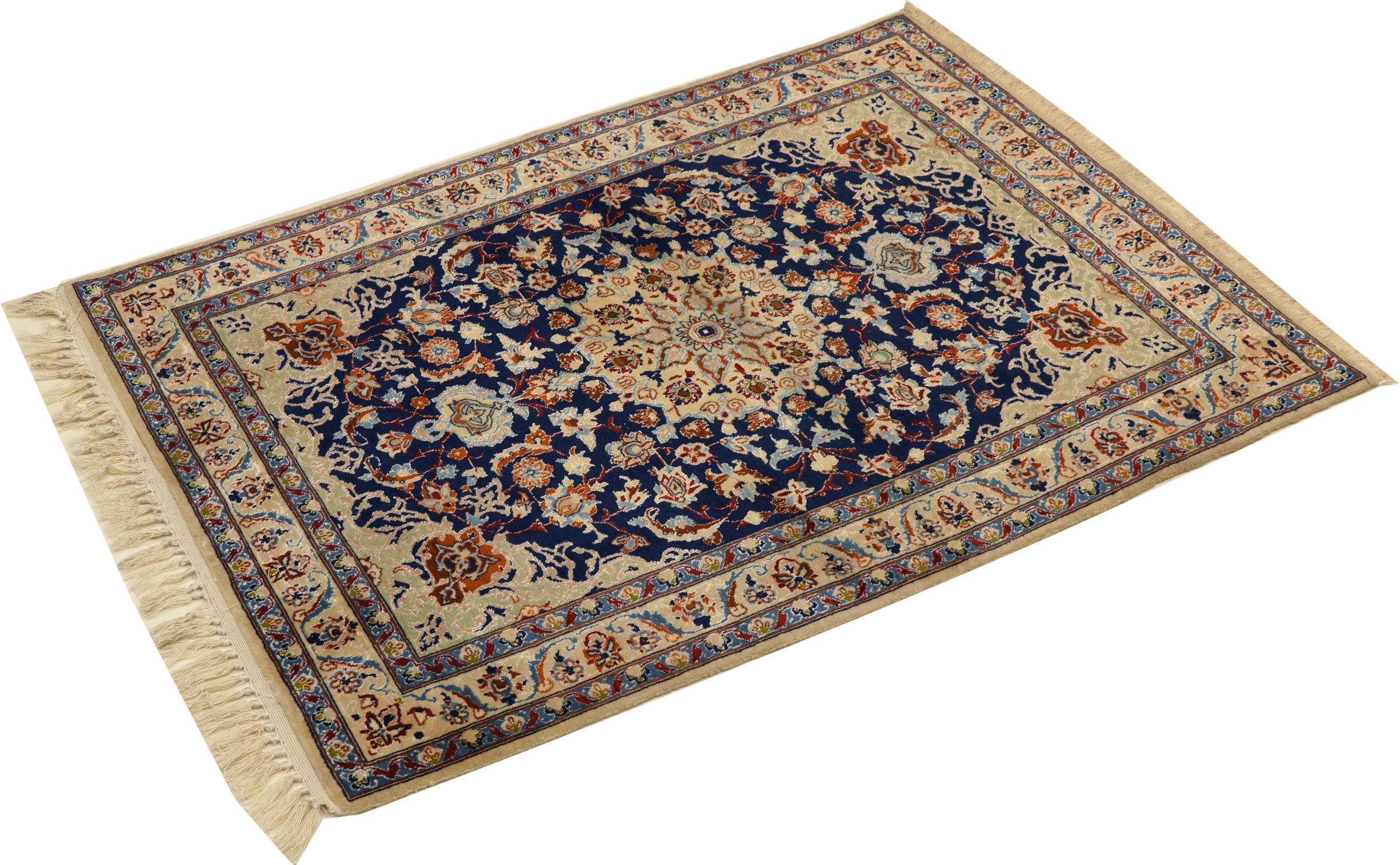 Dette Isfahan tæppe er højeste kunst. Forarbejdningen er vidunderligt og derudover dekoreret med de smukkeste mønstre. Denne persisk tæppe, hånknyttet af det fineste garn, kommer fra Isfahan, den smukkeste by i Iran. Det kunne ikke være bedre.