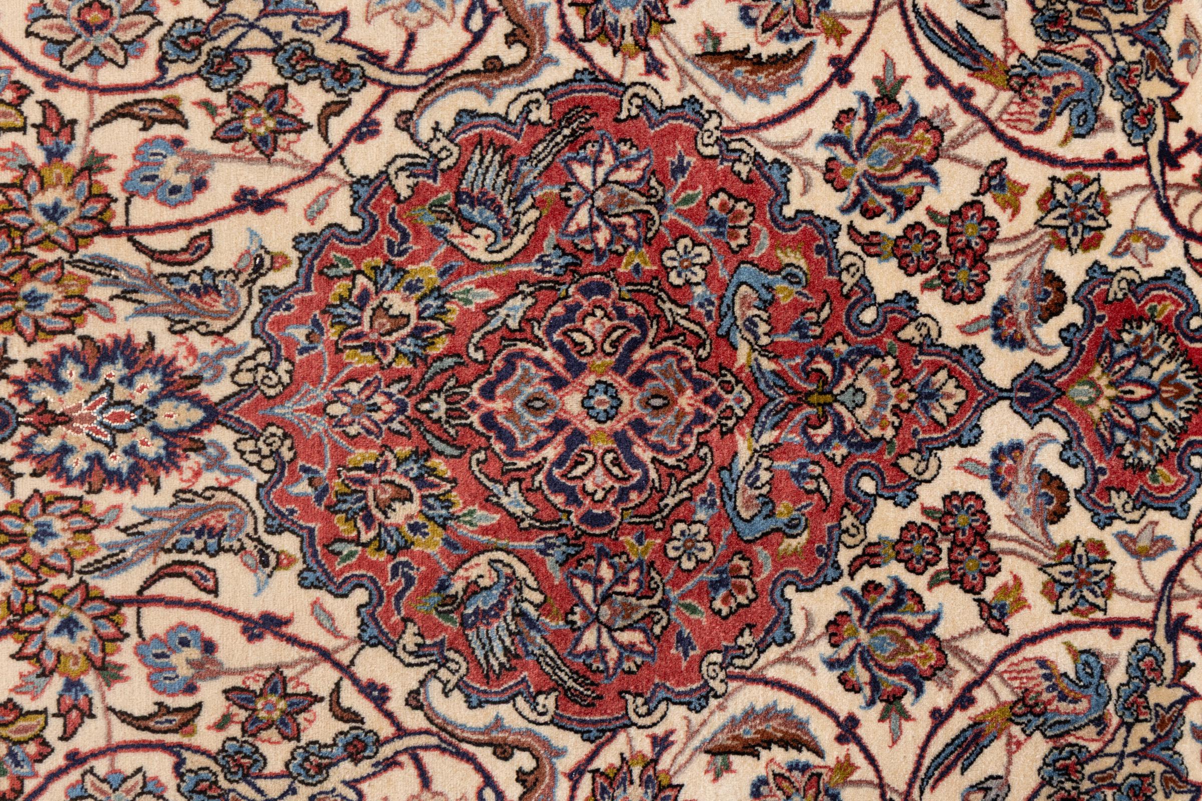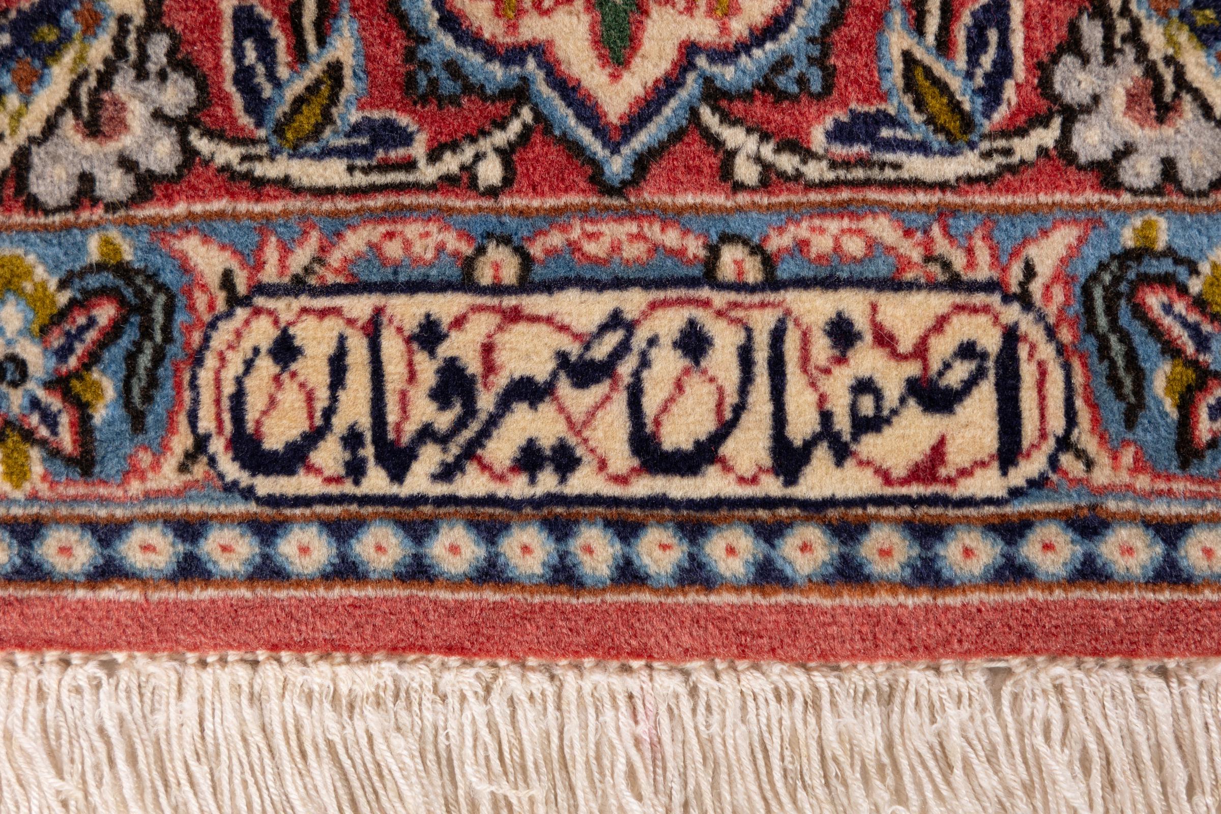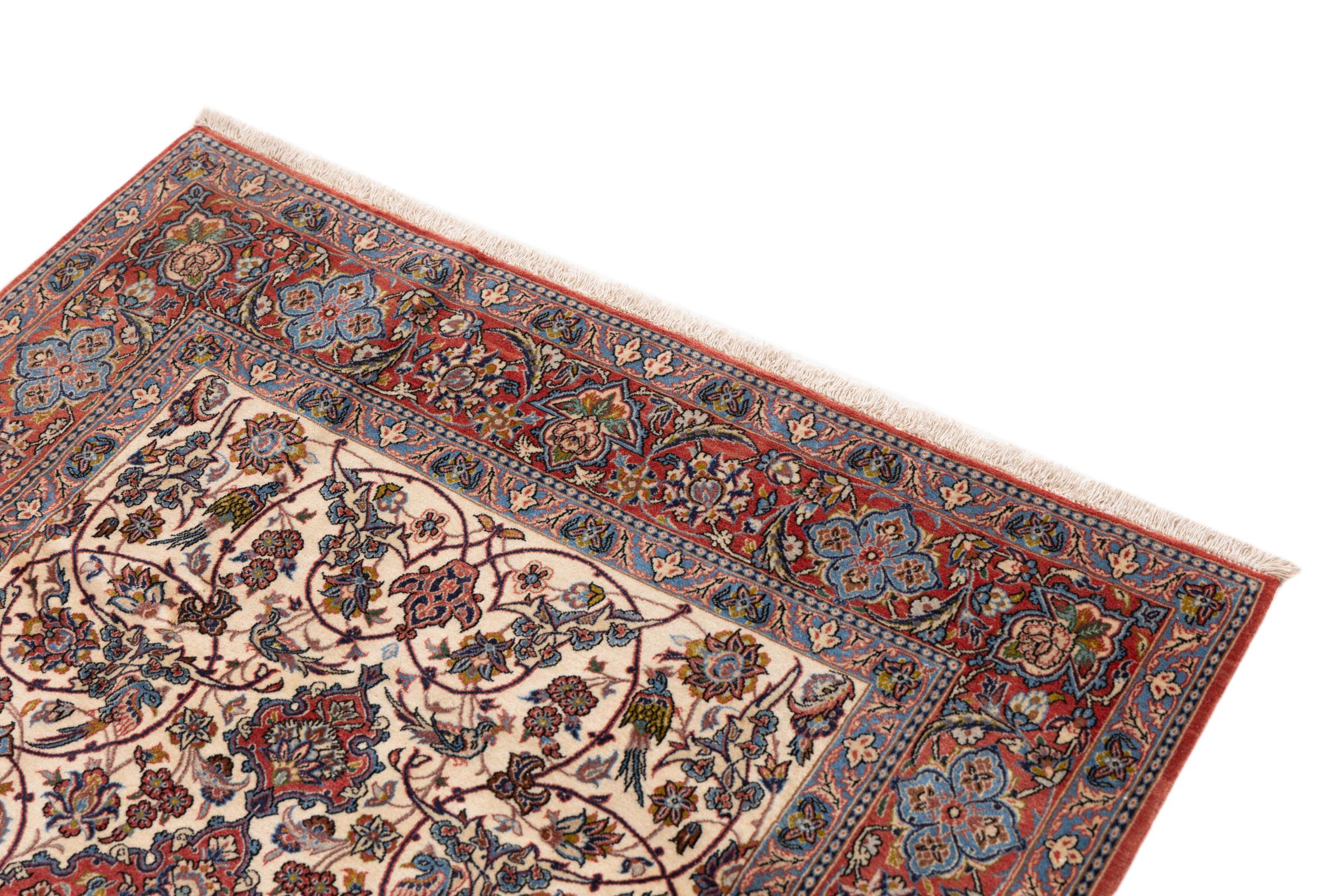 Dette Isfahan tæppe er højeste kunst. Forarbejdningen er vidunderligt og derudover dekoreret med de smukkeste mønstre. Denne persisk tæppe, hånknyttet af det fineste garn, kommer fra Isfahan, den smukkeste by i Iran. Det kunne ikke være bedre.