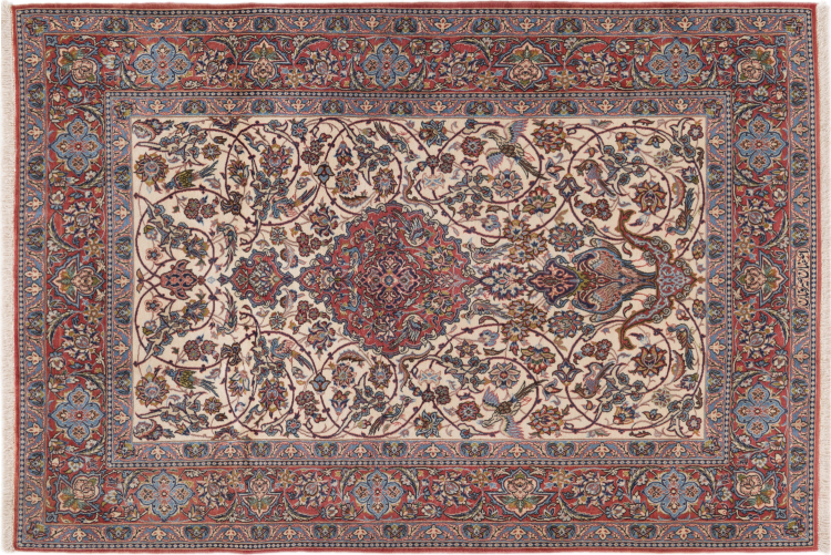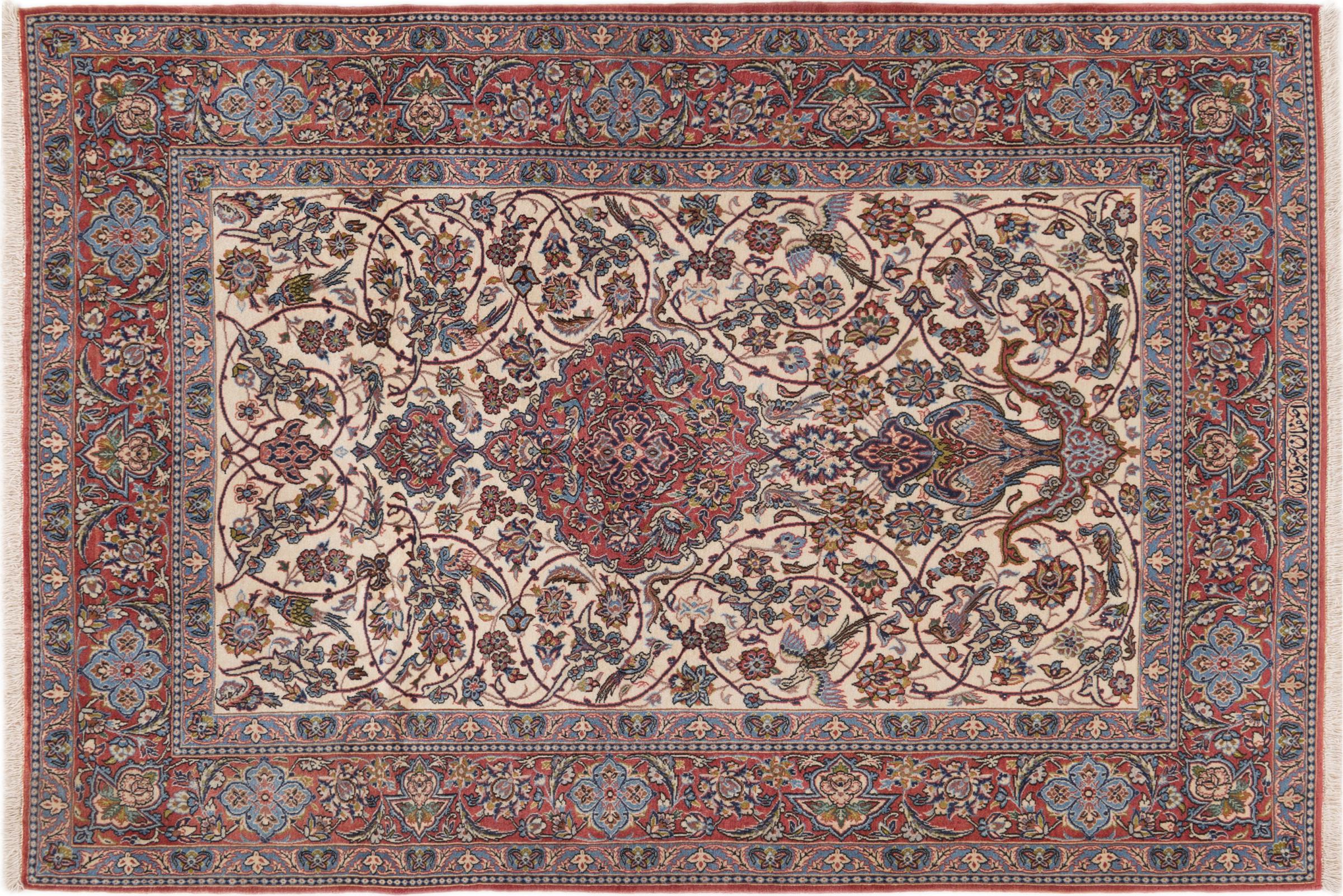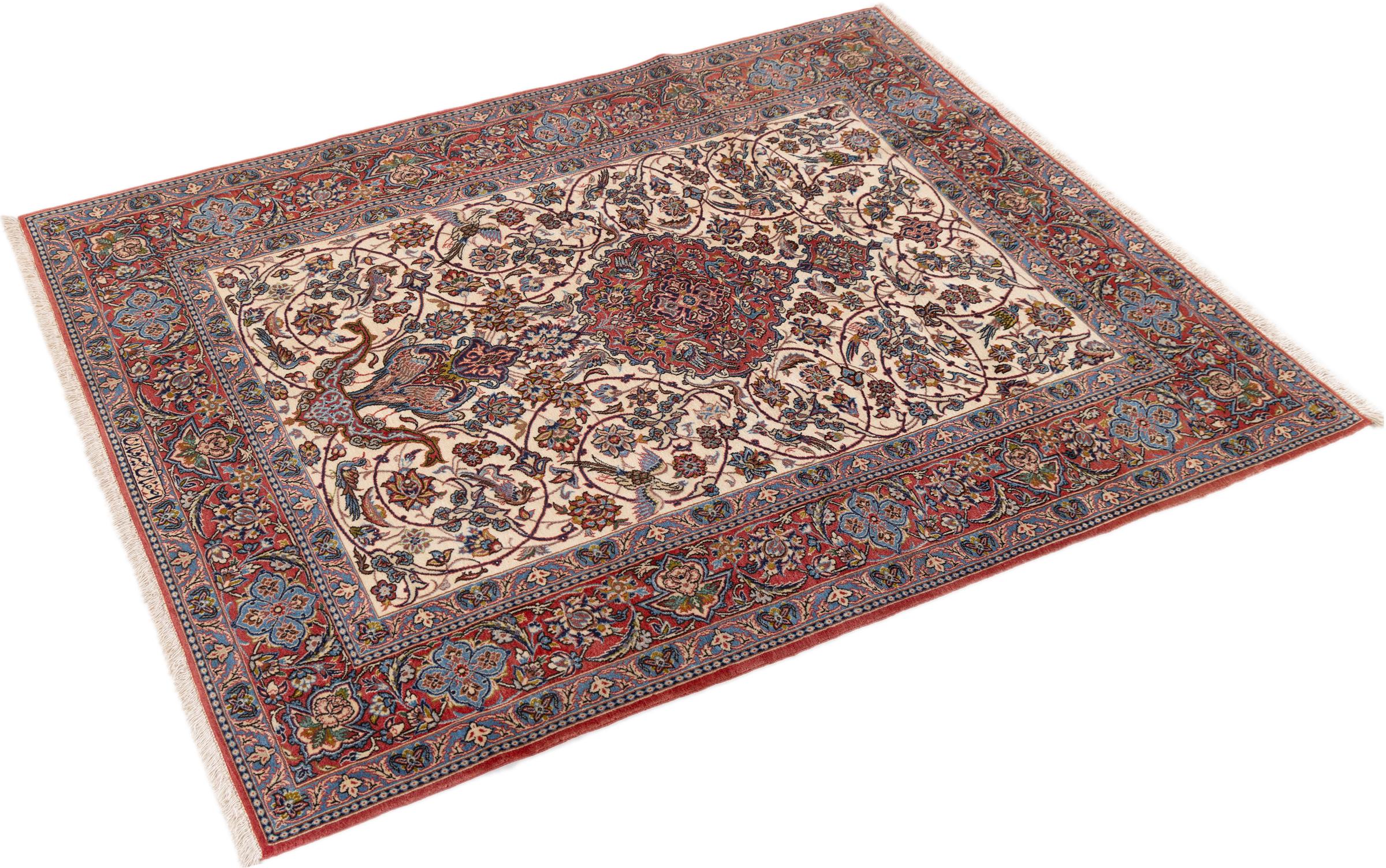 Dette Isfahan tæppe er højeste kunst. Forarbejdningen er vidunderligt og derudover dekoreret med de smukkeste mønstre. Denne persisk tæppe, hånknyttet af det fineste garn, kommer fra Isfahan, den smukkeste by i Iran. Det kunne ikke være bedre.