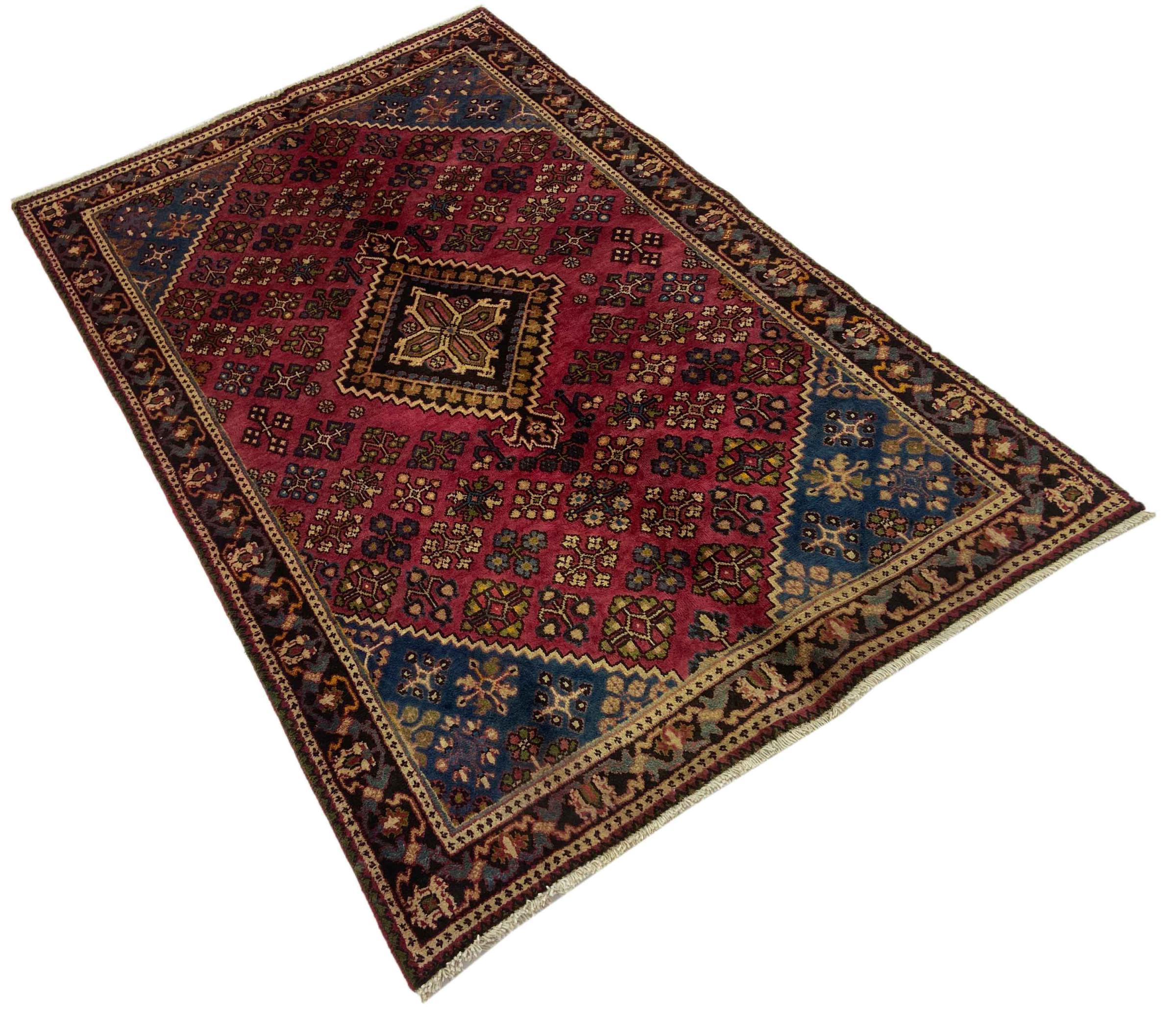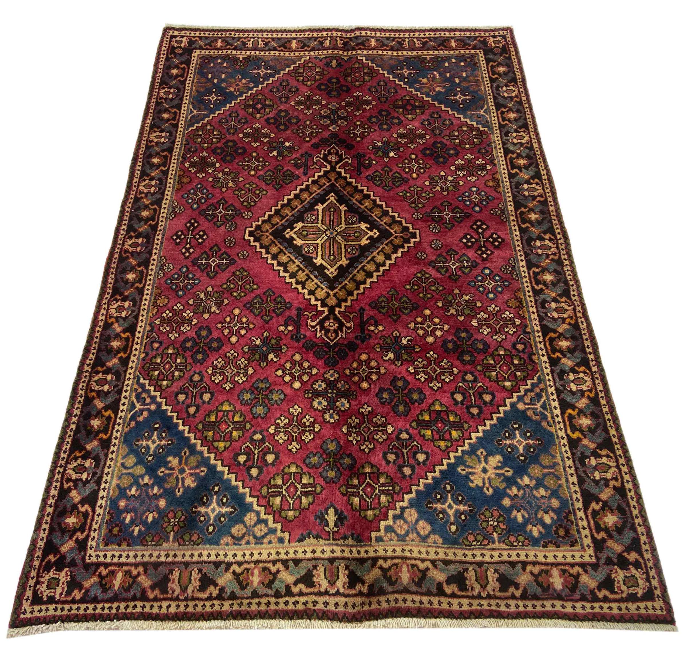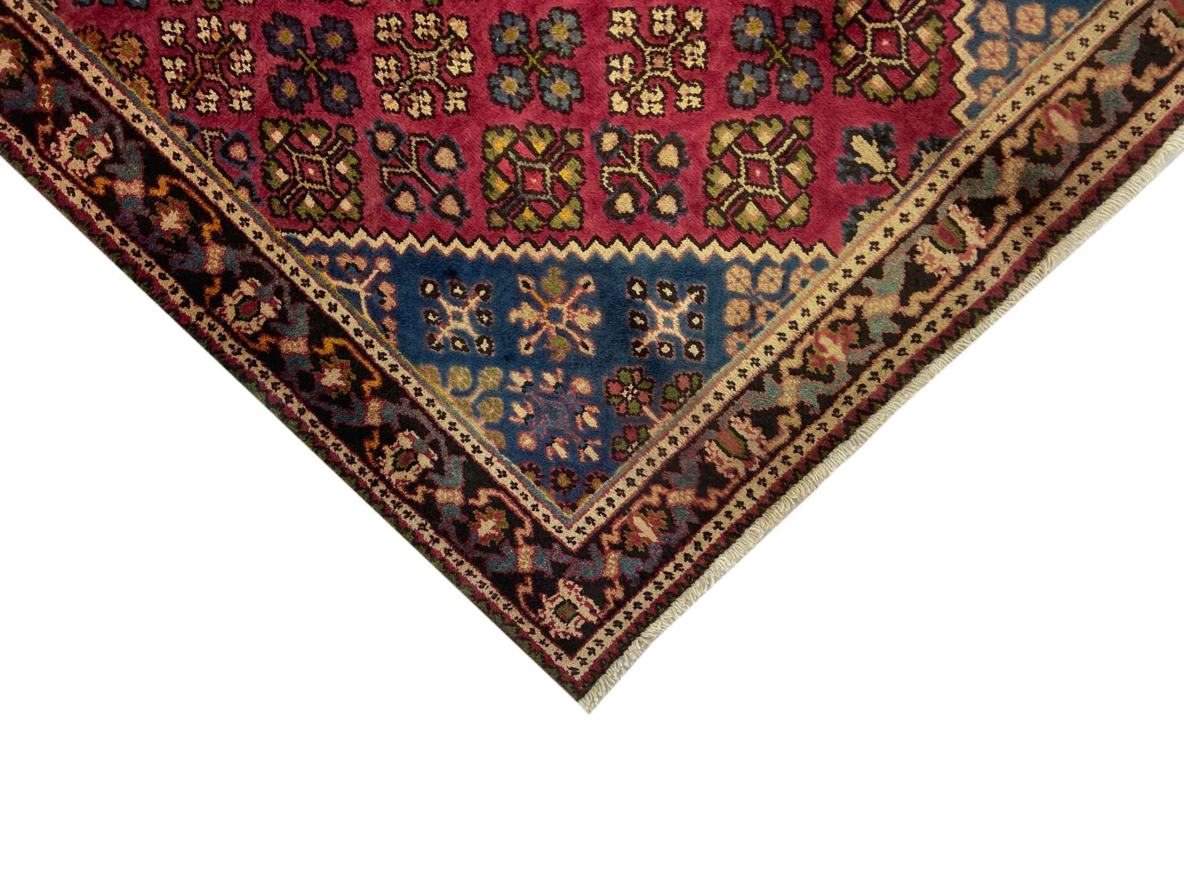 Denne persiske Joshaghan-tæppe stammer fra Hamadan-regionen i Iran og er en ægte landsbytæppe. Derfor kommer det i typiske mørke farvetoner og med de så populære geometriske mønstre og ornamentik.