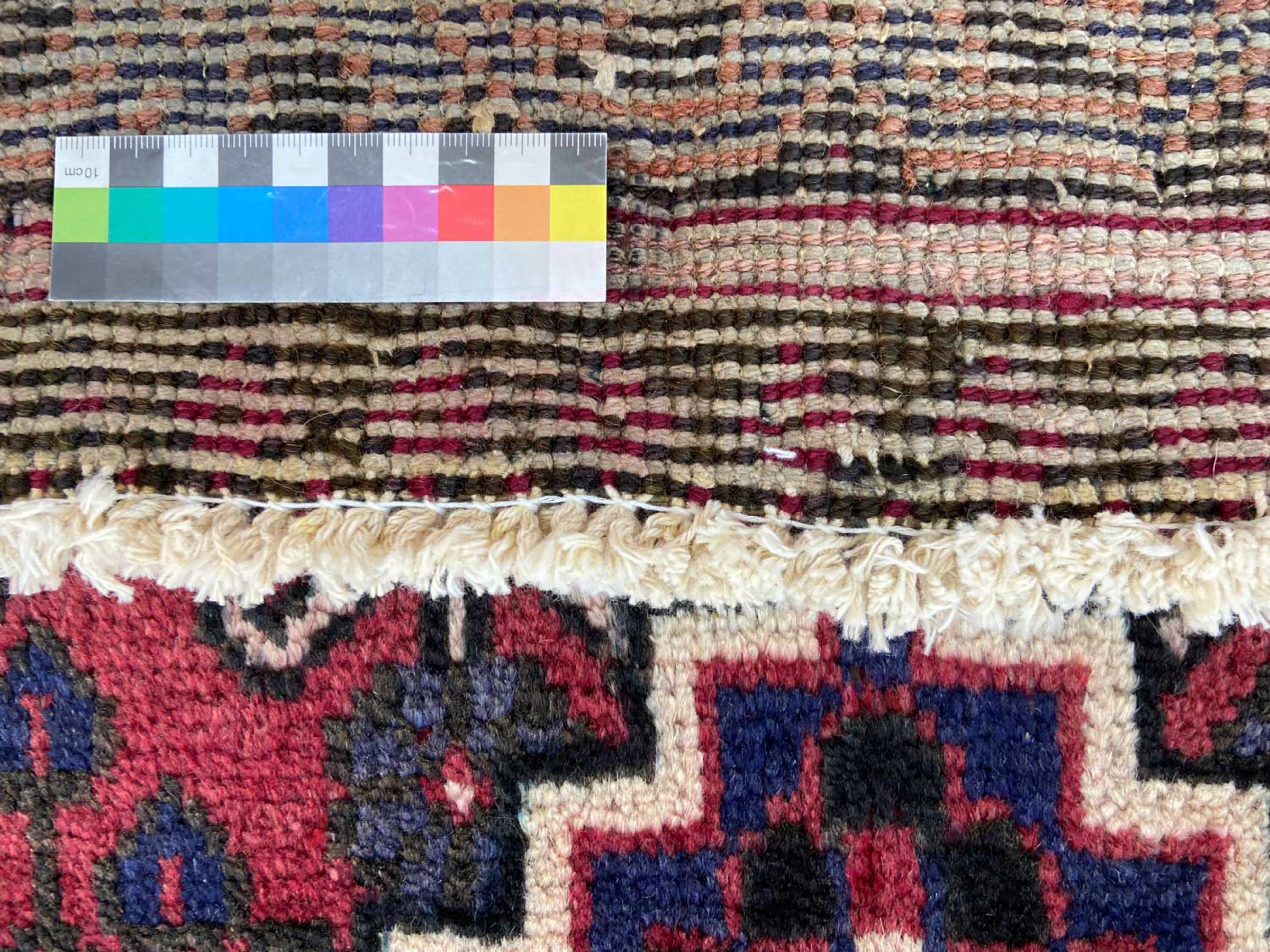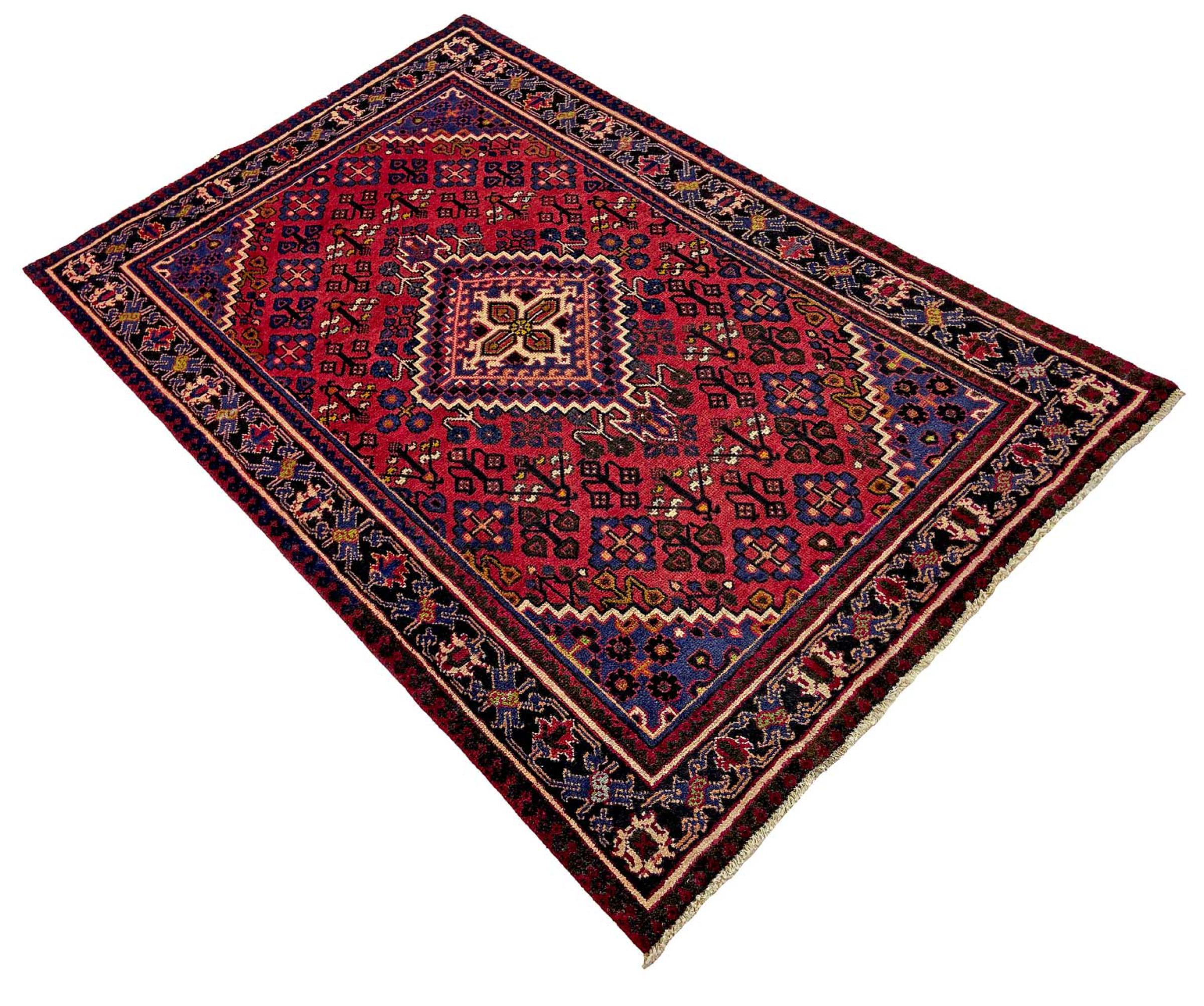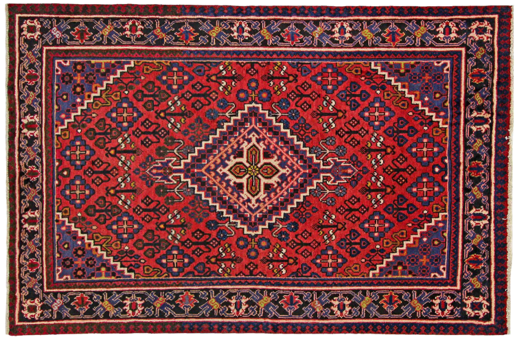 Denne persiske Joshaghan-tæppe stammer fra Hamadan-regionen i Iran og er en ægte landsbytæppe. Derfor kommer det i typiske mørke farvetoner og med de så populære geometriske mønstre og ornamentik.